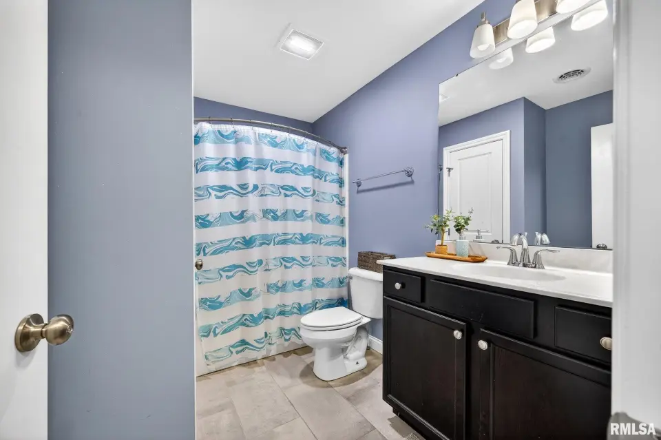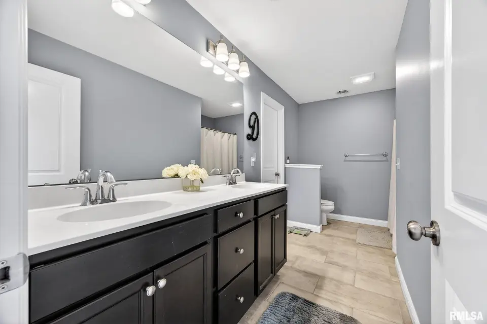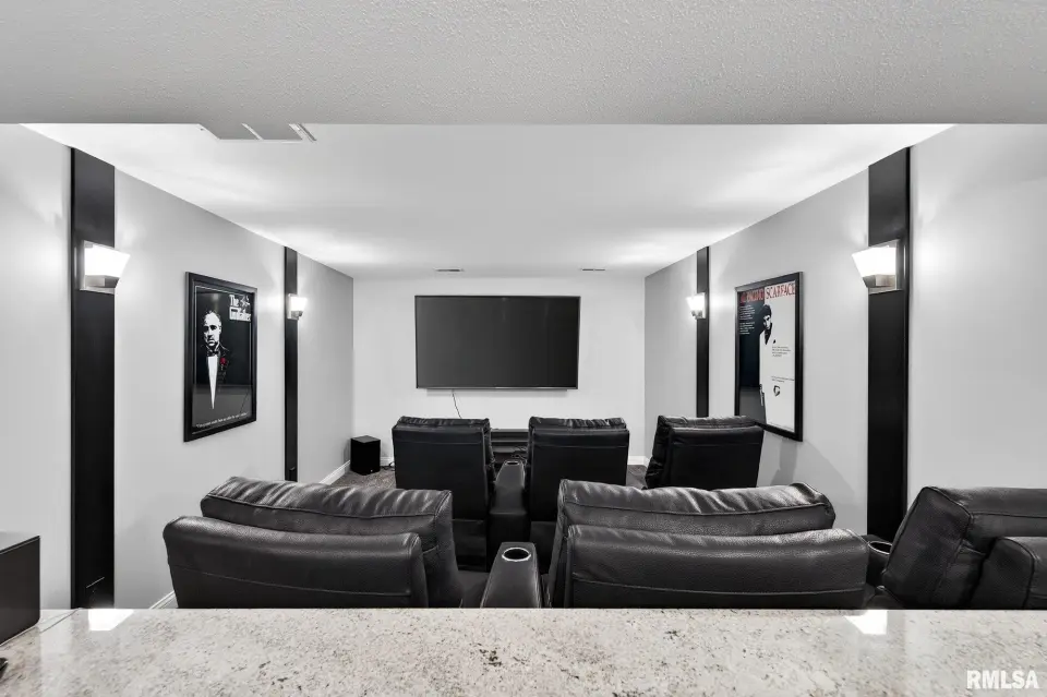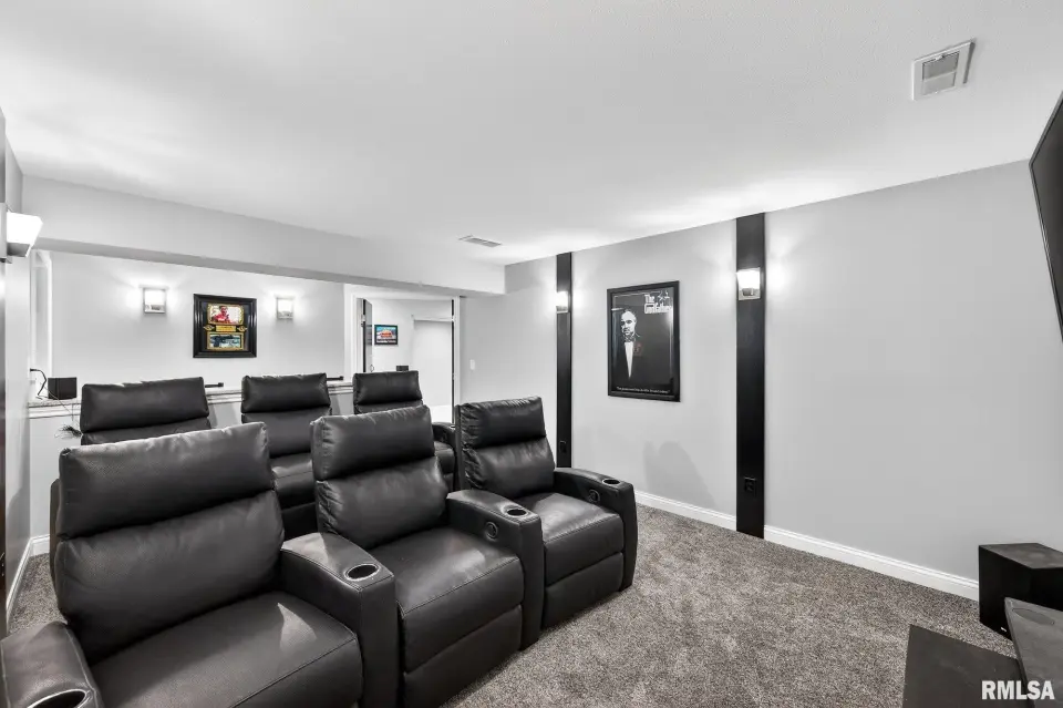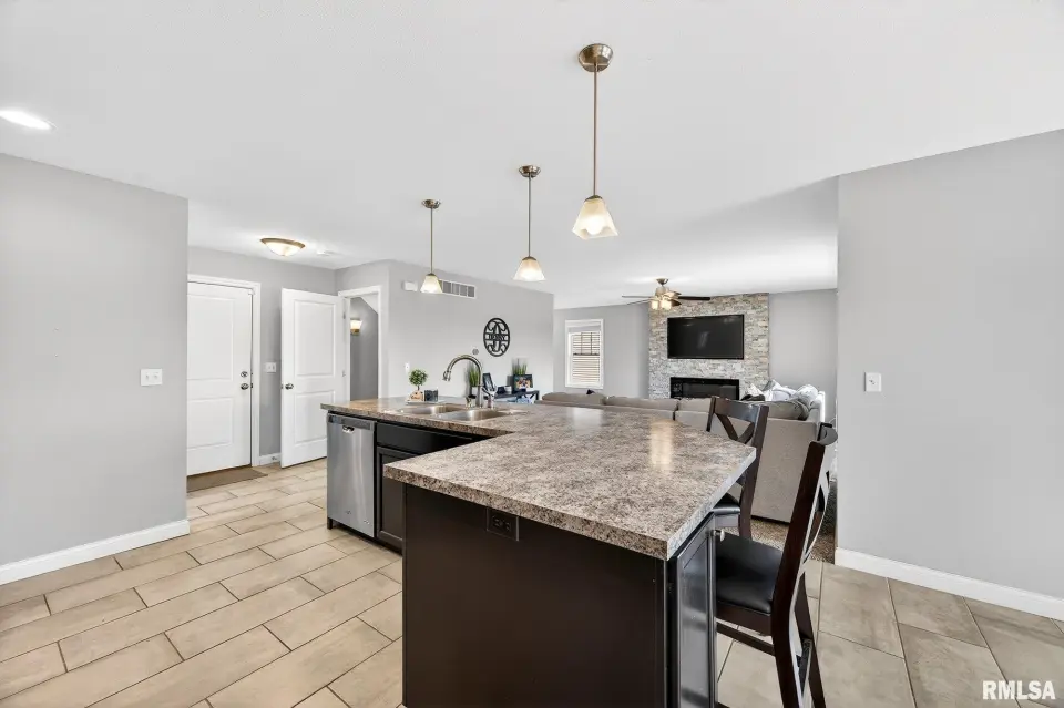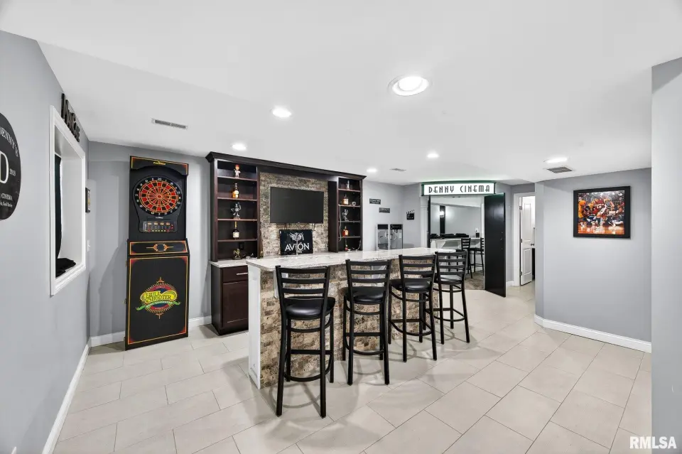 The exterior features an attractive combination of brick & vinyl for strong curb appeal. Step inside to a welcoming foyer that leads into the great room, highlighted by a beautiful stone fireplace. The kitchen offers stainless steel appliances, a generous island with breakfast bar seating that flows seamlessly into the informal dining area, creating an ideal layout for everyday living & entertaining. There is also a half bathroom on the main level. Upstairs, you will find all four bedrooms, including a spacious primary suite with a private full bath & dual walk-in closets. Three additional bedrooms, a laundry room with washer & dryer included, and another full bathroom complete the upper level. Get ready to be WOWED! The professionally finished basement adds even more living space & includes a rec area with a bar with granite tops & beautiful stonework, a media room that has been fully insulated for sound, that includes a snack bar with granite tops. There is also plenty of room for storage & another half bathroom in the basement. Enjoy outdoor living with an expansive deck just off the informal dining area overlooking the backyard. Additional features include an attached 3 car garage, custom blinds, a high-efficiency furnace, a high-efficiency water heater, & a radon mitigation system.