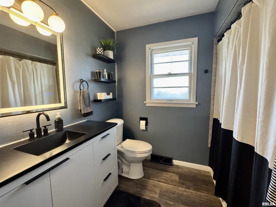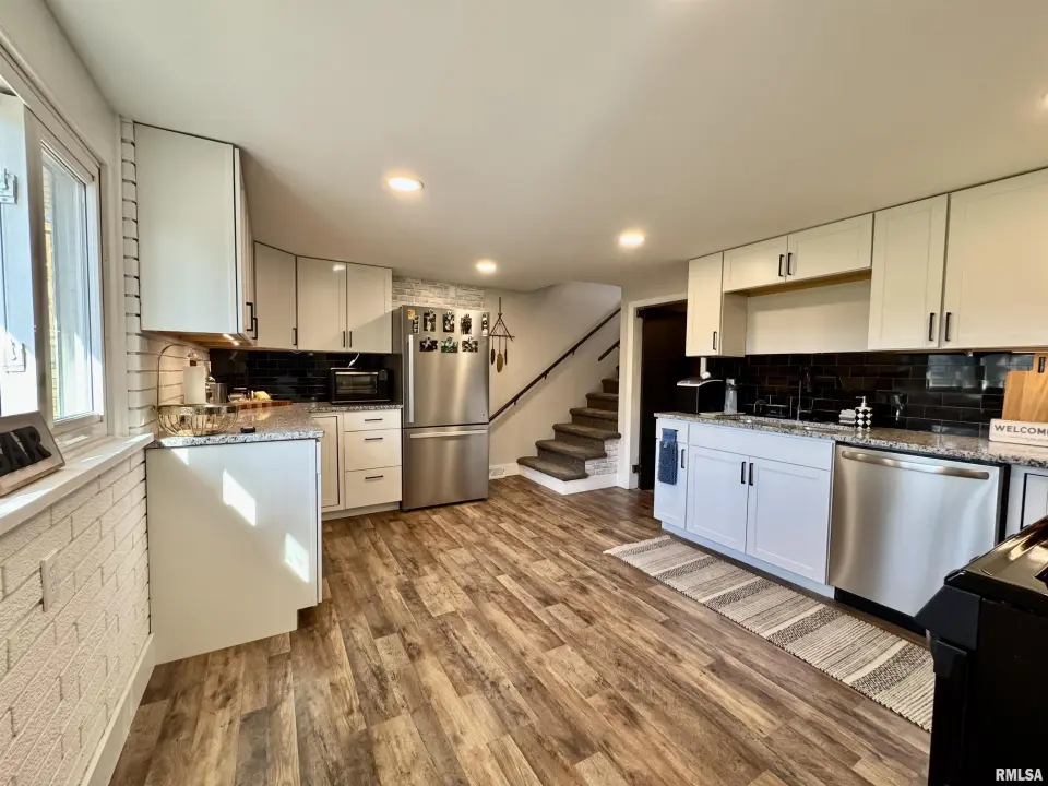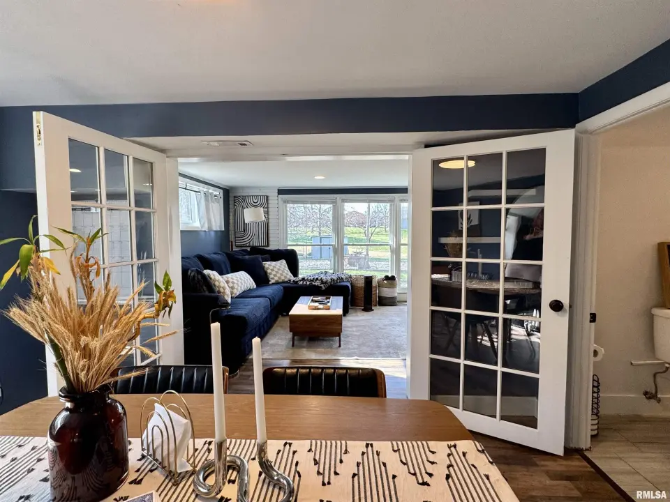 The 3 bedroom/2 bath home is move in ready with its vinyl replacement windows, vinyl plank flooring and updated kitchen and bathrooms. The kitchen of this home is on the lower level and has a walk-out to the patio and expansive back yard with fire pit area. Beautiful stone and built in shelving surrounds the stunning wood-burning fire place in the family room which also has French doors to the formal dining room. On the main level is a 20X12 living room, 3 bedrooms and a full bath. The garage is oversized and easily fits two vehicles with room for a work bench. Even with all of the updates, this home still boasts the unique qualities of the mid-century modern style. Outdoor entertaining is easy with the fire pit area, patio and big yard. There is also an abundance of natural light in this home. Come check it out. The seller is willing to negotiate on the furnishings in the house as well.