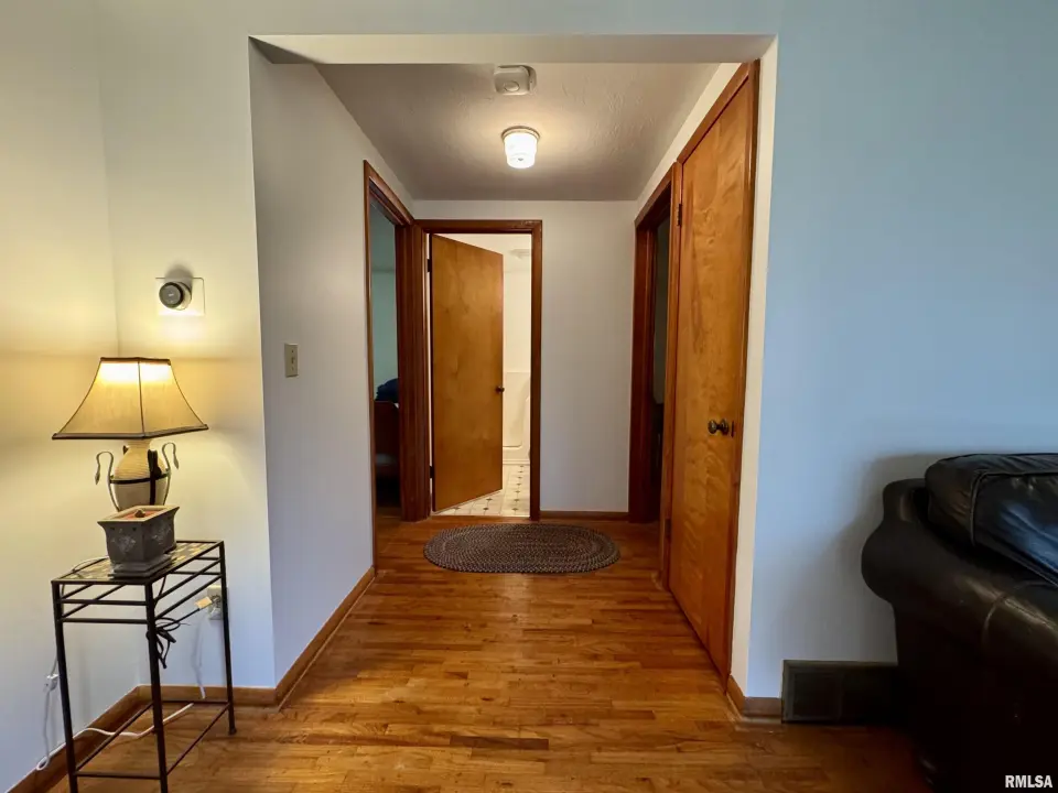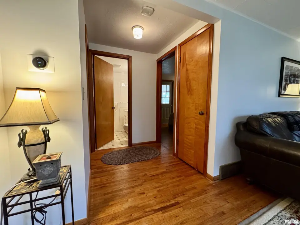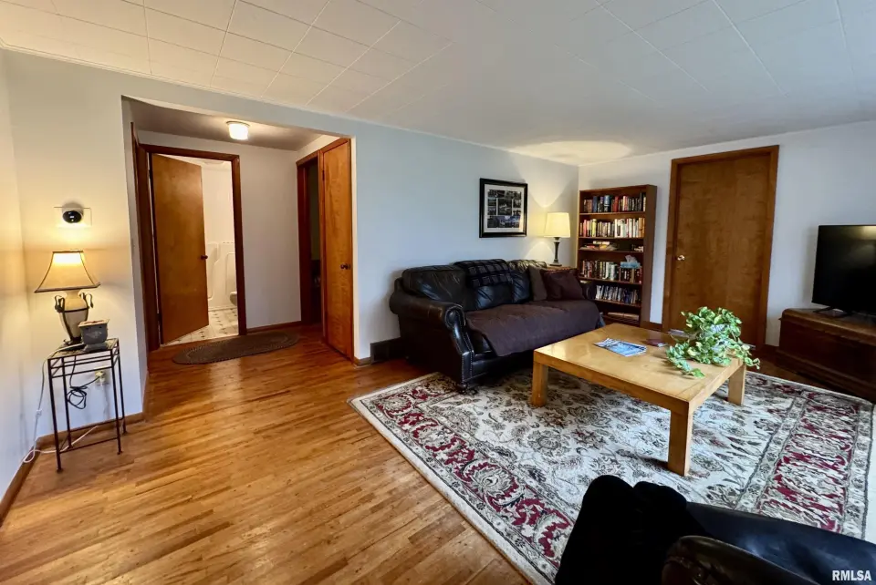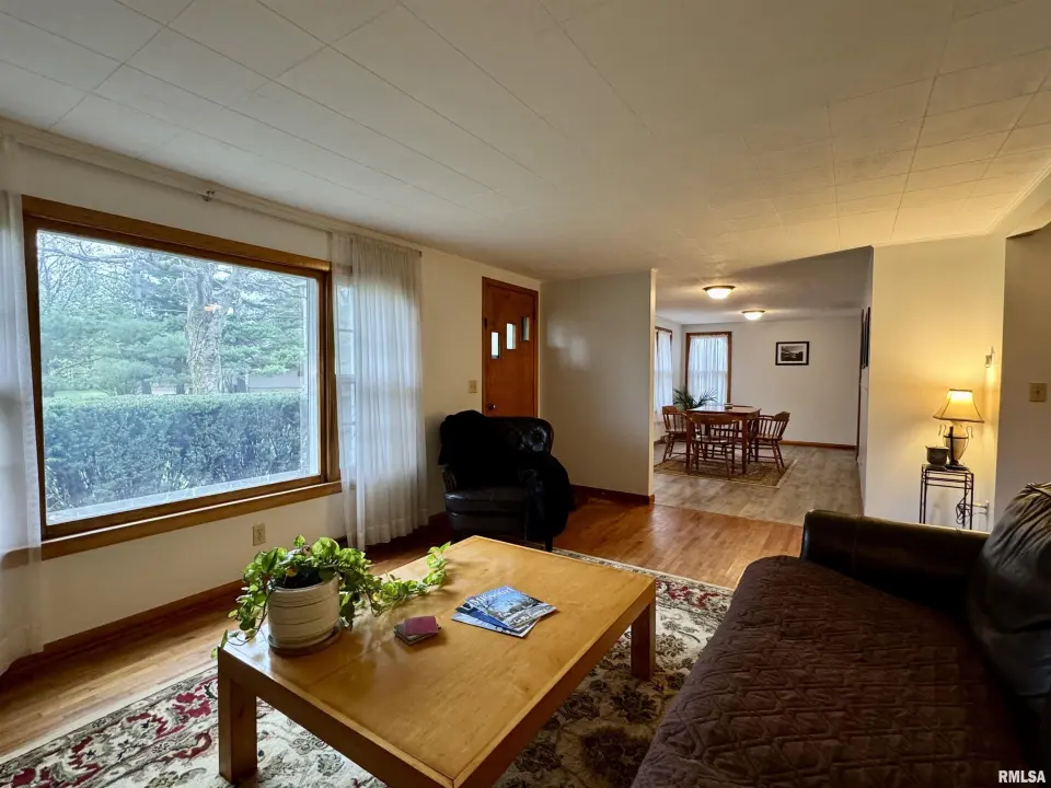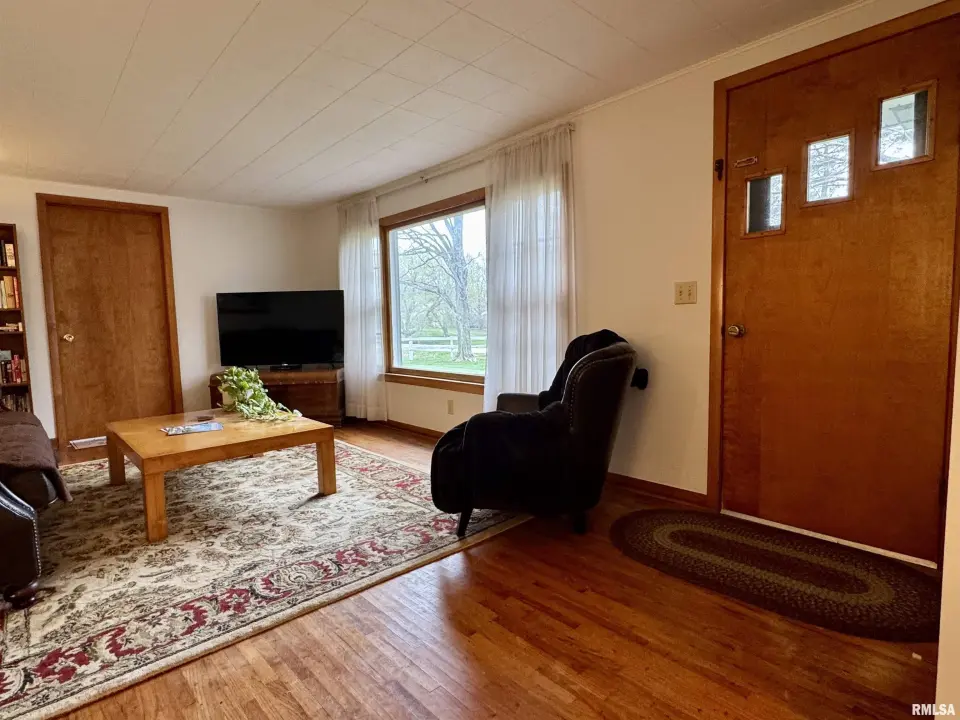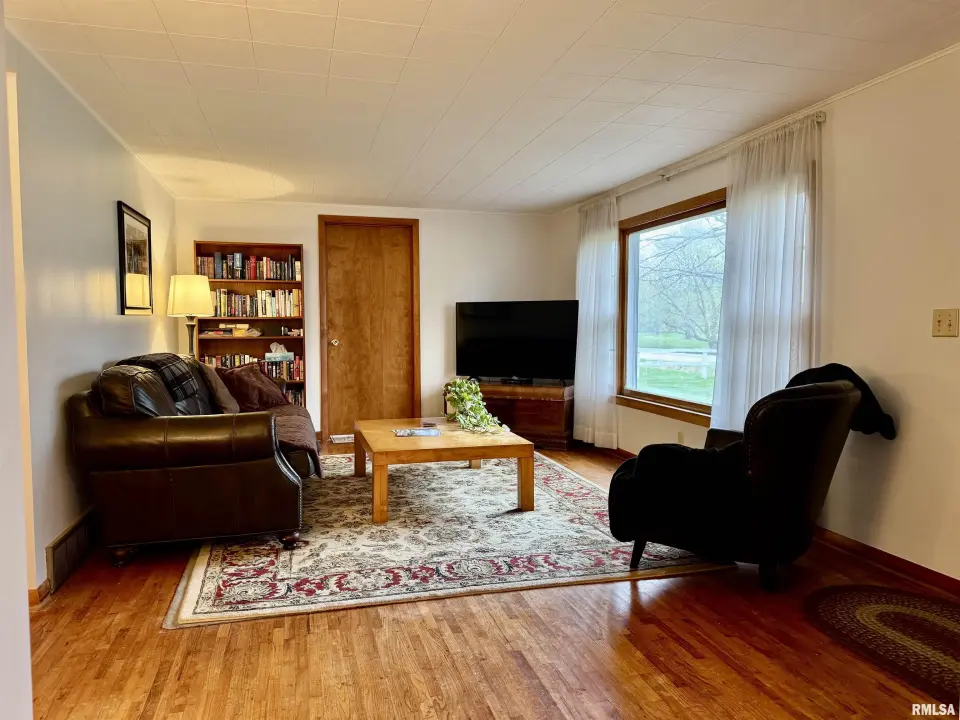 Lots of updates have been made in the home including exposing the original hardwood flooring. The large living room has lots of natural light with the South facing window and flows into the formal dining space. The galley kitchen has white cabinetry and new flooring. The 17X14 primary bedroom has a walk-in closet and an attached bath with walk-in shower. The other two bedrooms have hardwood flooring and large closets. One has built-in shelving. The second full bath has a no step jetted tub. You'll spend most of your time in the wonderful 19X12 sunroom that has great views of the back yard. Storage is not a problem with the 25X30 over-sized two car garage. A wood workers dream! There is also a shed and storm shelter in the back yard as well as plenty of space for a garden. The 1.5 acre lot adjacent to the home is also available for sale. There are endless possibilities as it is zoned AG1. Call for your appointment today!