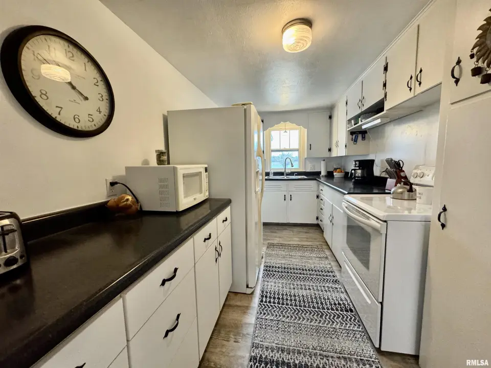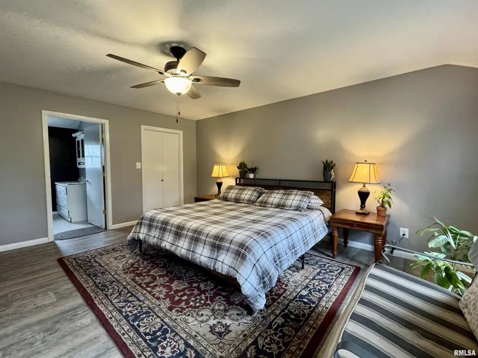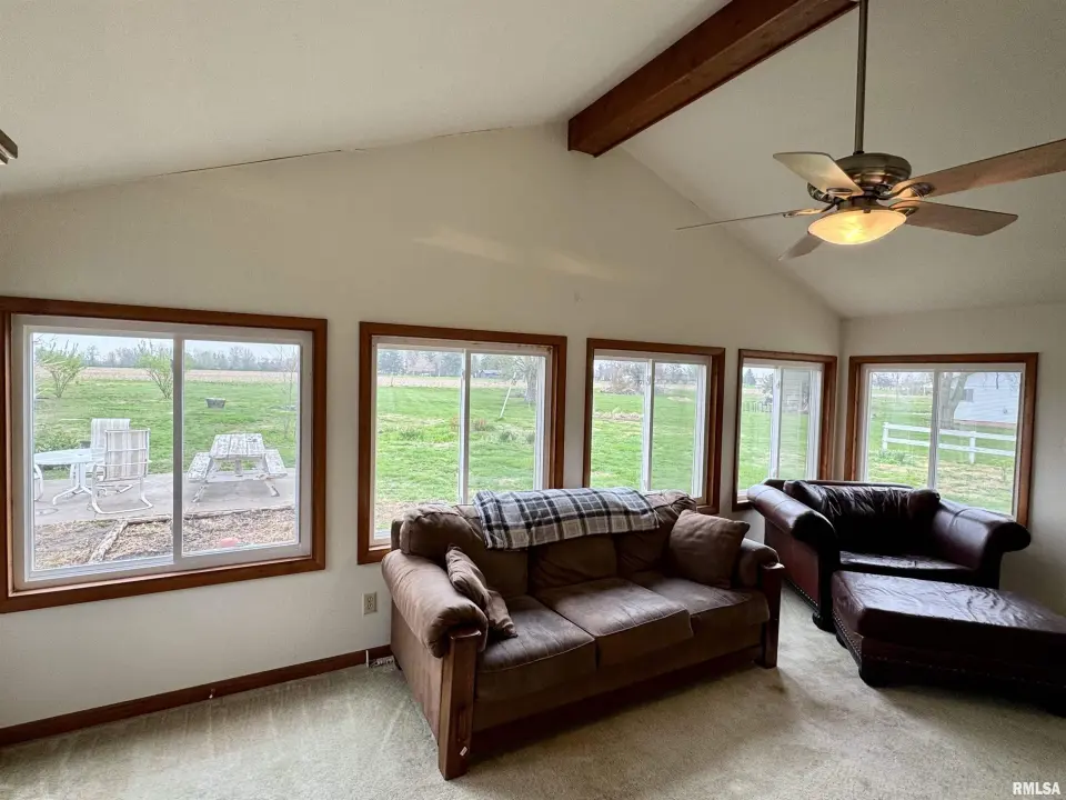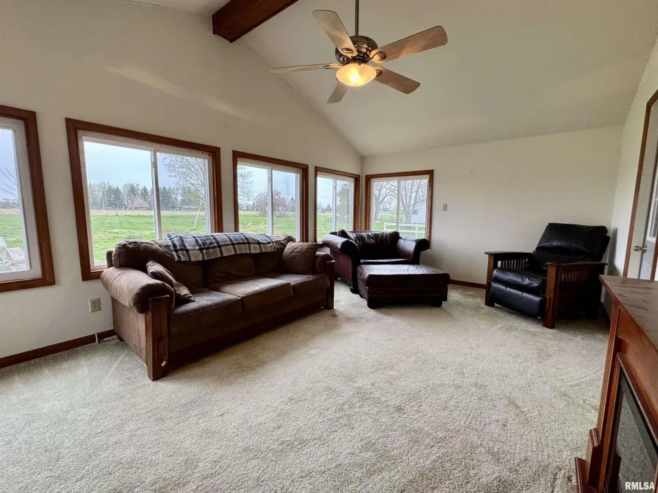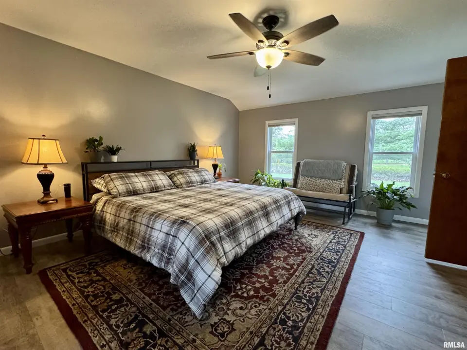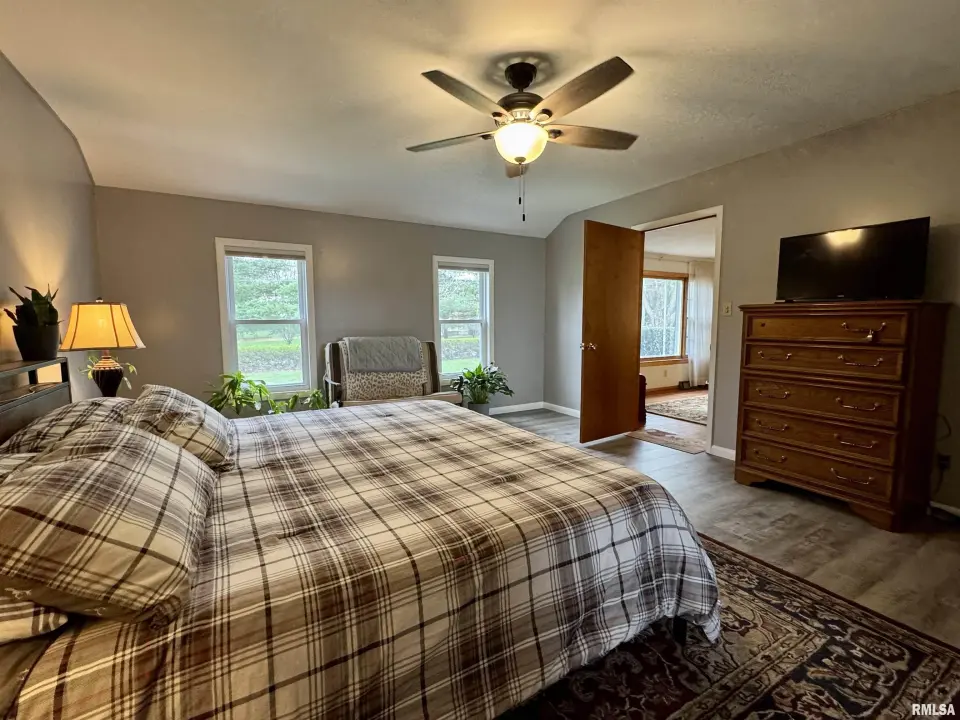 Lots of updates have been made in the home including exposing the original hardwood flooring. The large living room has lots of natural light with the South facing window and flows into the formal dining space. The galley kitchen has white cabinetry and new flooring. The 17X14 primary bedroom has a walk-in closet and an attached bath with walk-in shower. The other two bedrooms have hardwood flooring and large closets. One has built-in shelving. The second full bath has a no step jetted tub. You'll spend most of your time in the wonderful 19X12 sunroom that has great views of the back yard. Storage is not a problem with the 25X30 over-sized two car garage. A wood workers dream! There is also a shed and storm shelter in the back yard as well as plenty of space for a garden. The 1.5 acre lot adjacent to the home is also available for sale. There are endless possibilities as it is zoned AG1. Call for your appointment today!