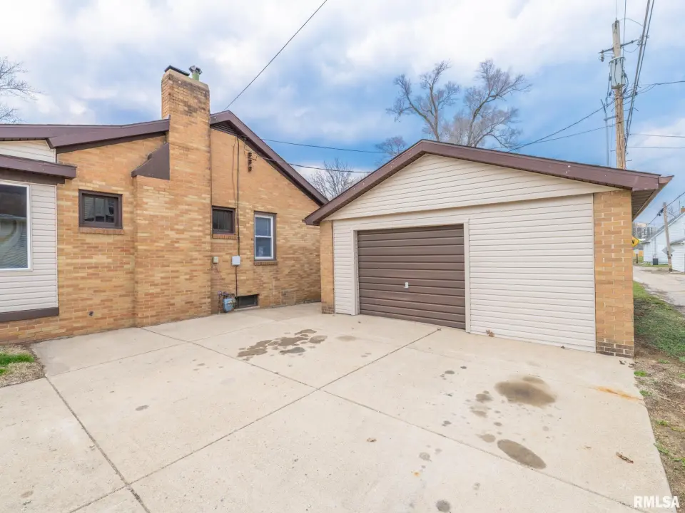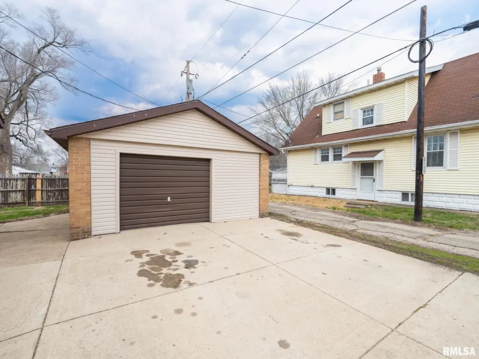 Oversized detached garage and a partially fenced back yard for kids and pets to play.