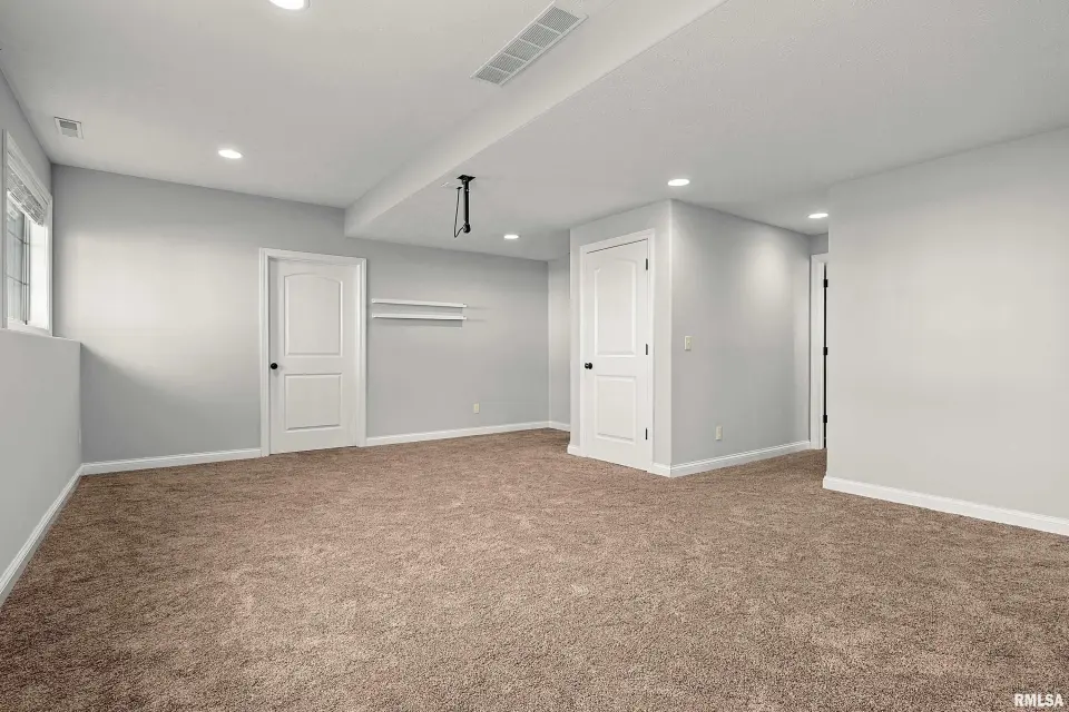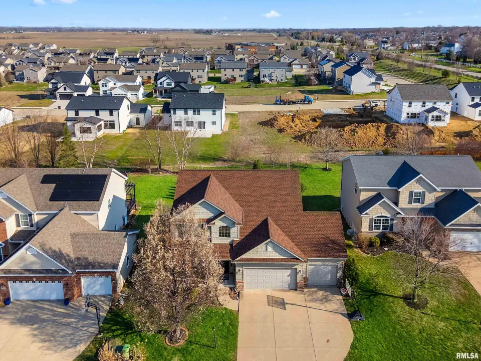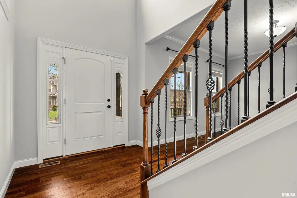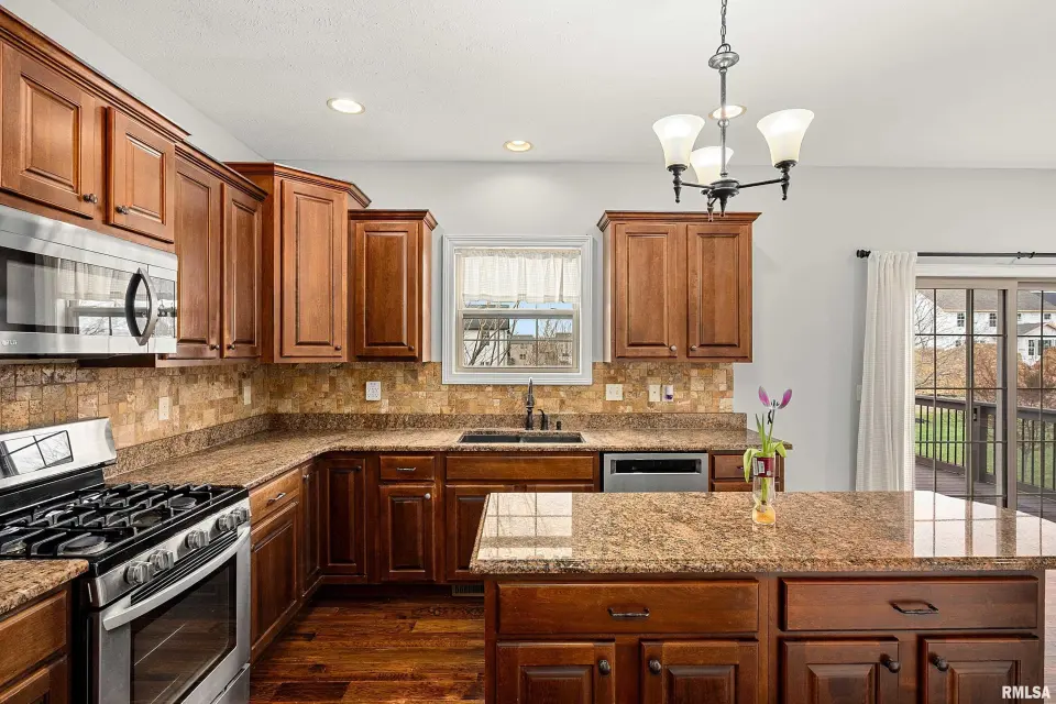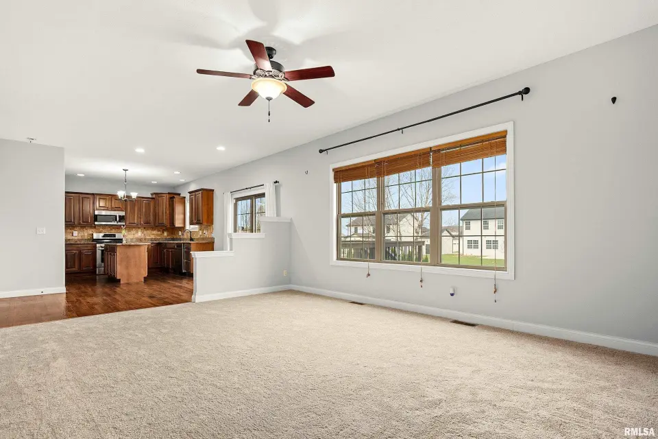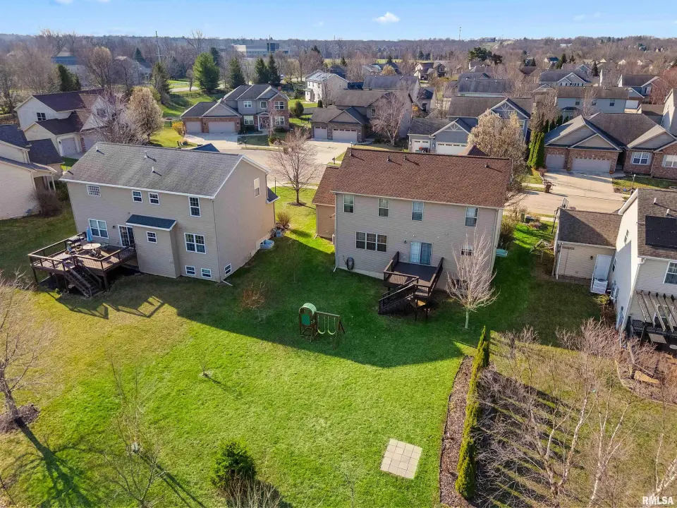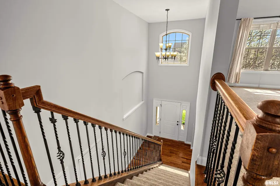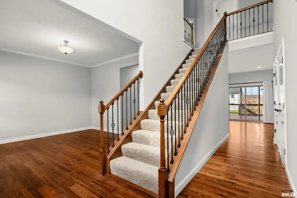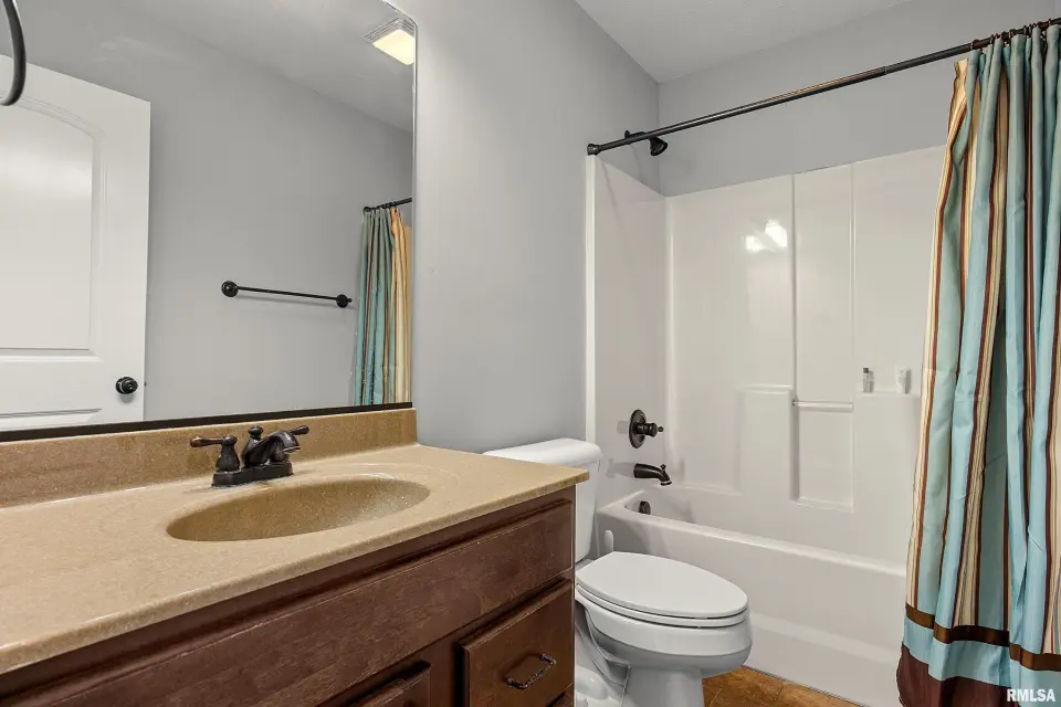 The main floor features abundant hardwood flooring & an open layout, including a versatile flex space perfect for a living or formal dining room. The great room is filled w/ natural light from windows & showcases a cozy fireplace, creating a warm & inviting atmosphere. The kitchen offers granite countertops, a center island, tile backsplash, wood cabinetry & stainless steel appliances, blending style & functionality. A main-floor laundry adds everyday convenience. Upstairs, each bedroom features a vaulted ceiling & a charming lighted display nook above the closet. The primary suite includes a jetted tub, separate standing shower & dual vanities. Three additional bedrooms provide ample space for family or guests, all w/ walk-in closets. The finished basement is ideal for entertaining, featuring daylight windows, a spacious recreation room, a 5th bedroom, full bath & additional storage space. Step outside to the main-floor deck, perfect for relaxing or hosting gatherings. Recent updates: Hybrid water heater in '23, New roof in '24, updated deck boards in '25, Fresh Paint for whole house & New Carpet in the Main and Upper Floor in '26. Includes a 14-month home warranty.