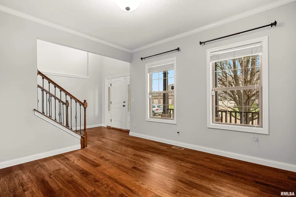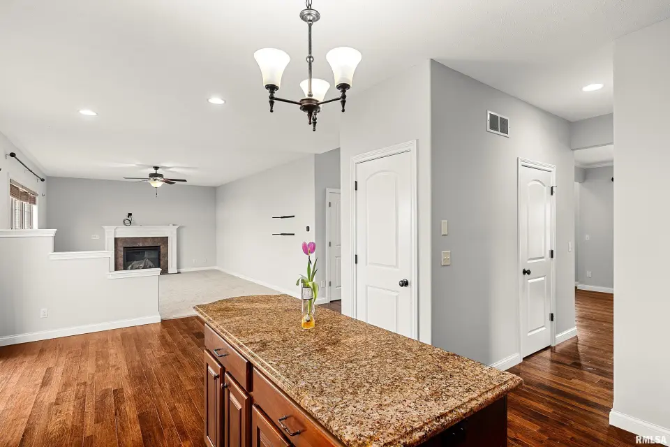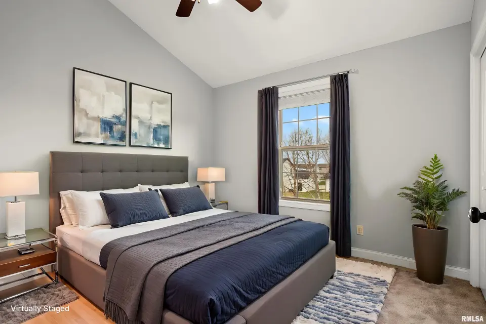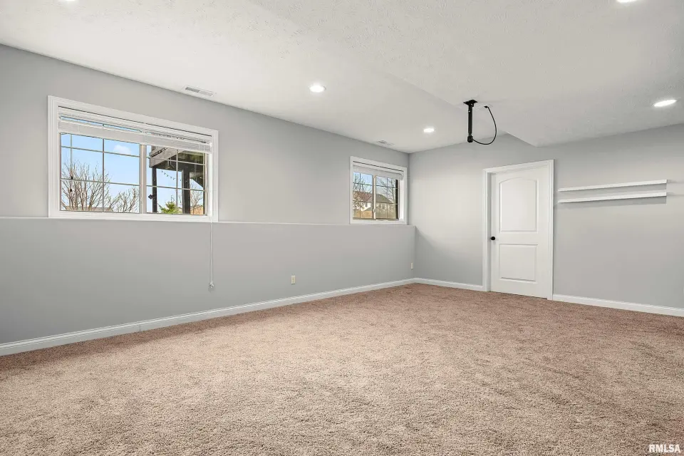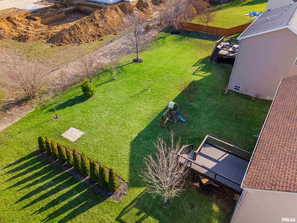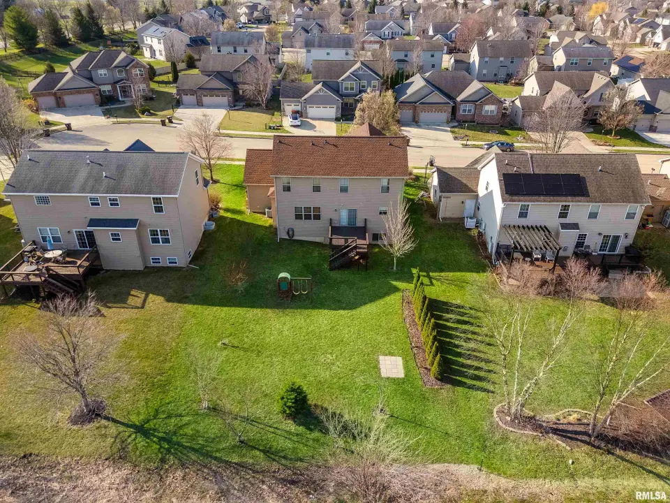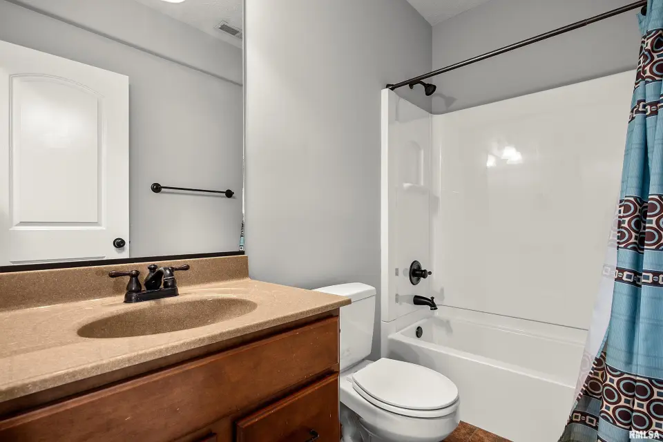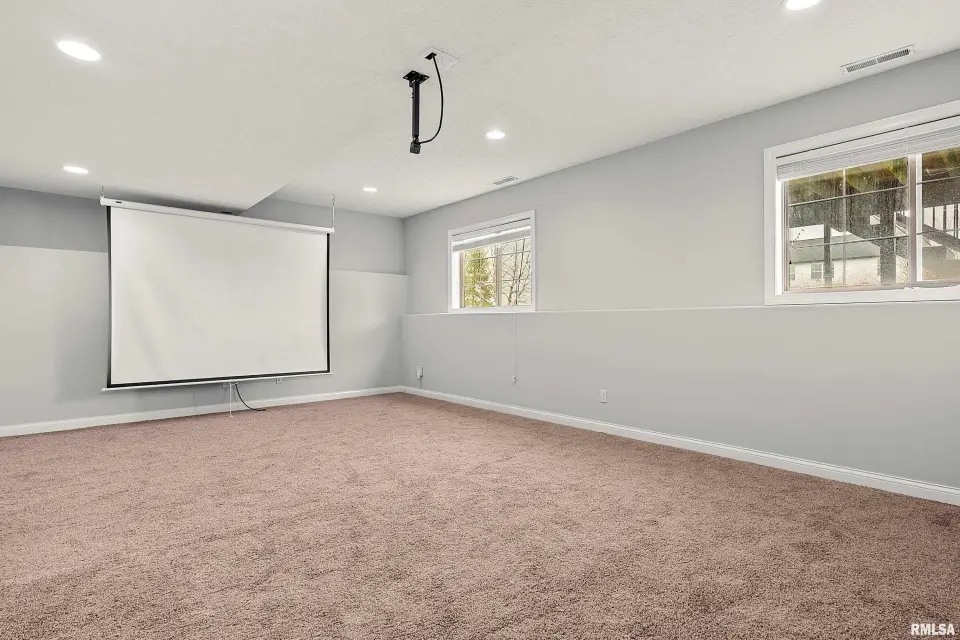 The main floor features abundant hardwood flooring & an open layout, including a versatile flex space perfect for a living or formal dining room. The great room is filled w/ natural light from windows & showcases a cozy fireplace, creating a warm & inviting atmosphere. The kitchen offers granite countertops, a center island, tile backsplash, wood cabinetry & stainless steel appliances, blending style & functionality. A main-floor laundry adds everyday convenience. Upstairs, each bedroom features a vaulted ceiling & a charming lighted display nook above the closet. The primary suite includes a jetted tub, separate standing shower & dual vanities. Three additional bedrooms provide ample space for family or guests, all w/ walk-in closets. The finished basement is ideal for entertaining, featuring daylight windows, a spacious recreation room, a 5th bedroom, full bath & additional storage space. Step outside to the main-floor deck, perfect for relaxing or hosting gatherings. Recent updates: Hybrid water heater in '23, New roof in '24, updated deck boards in '25, Fresh Paint for whole house & New Carpet in the Main and Upper Floor in '26. Includes a 14-month home warranty.