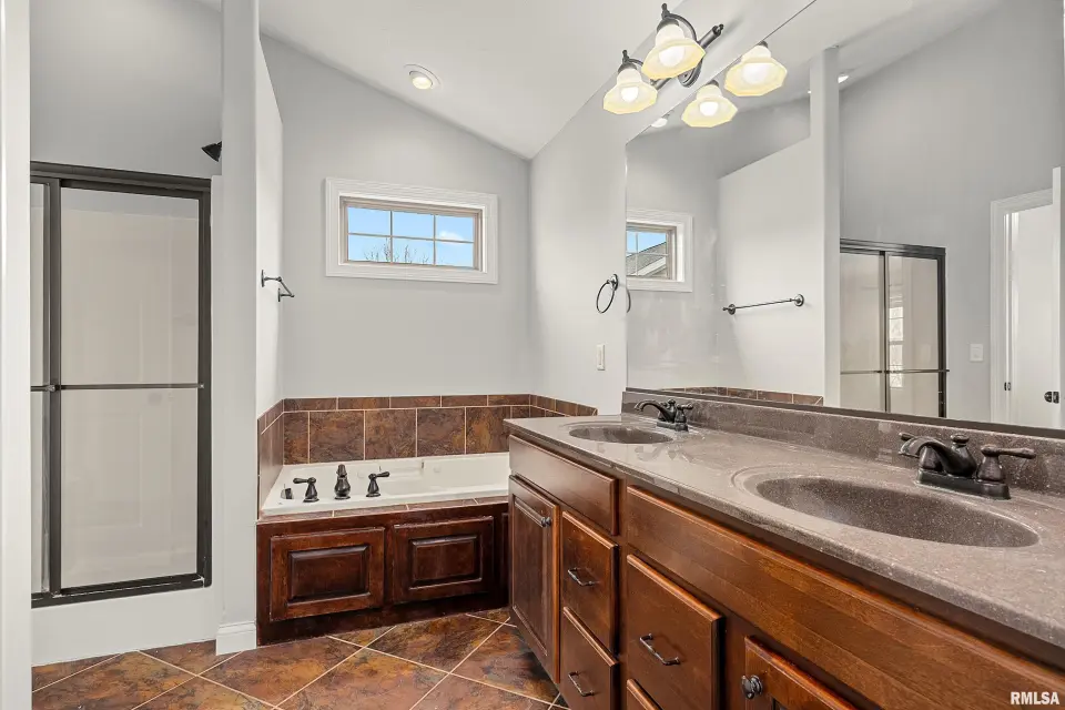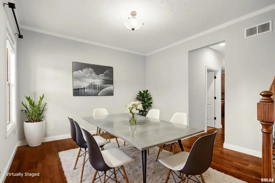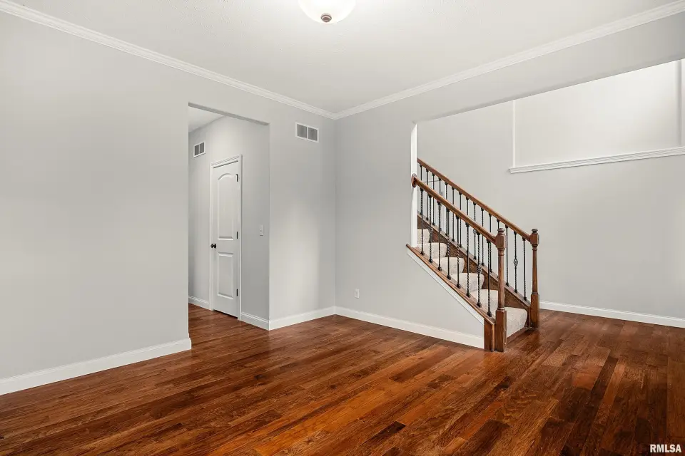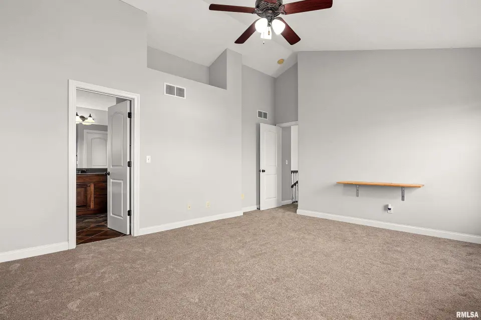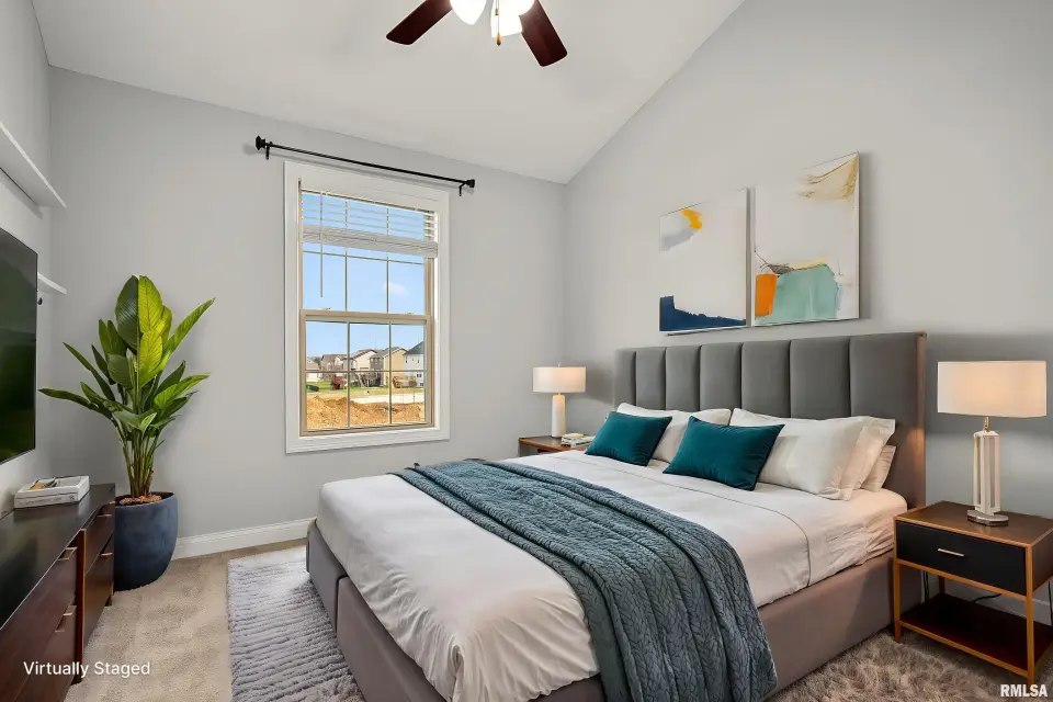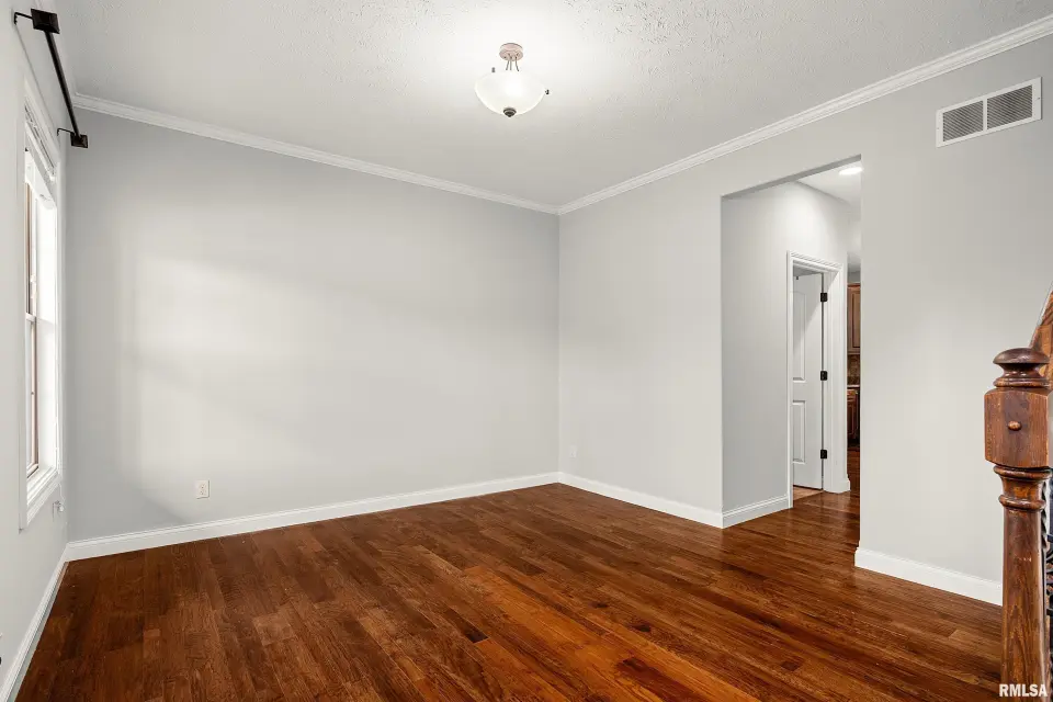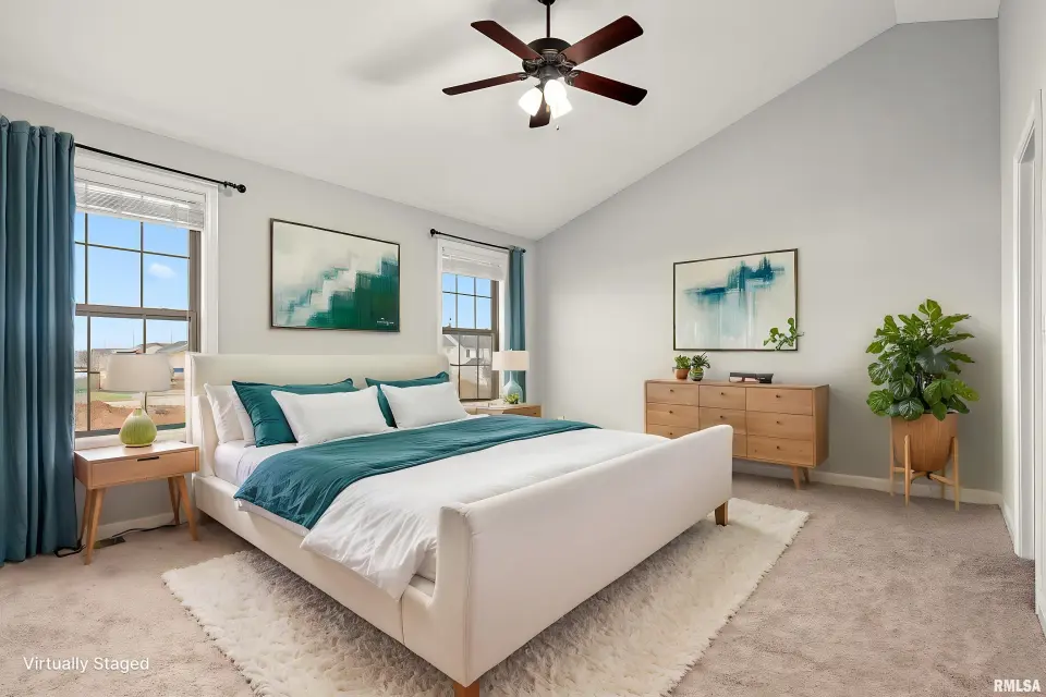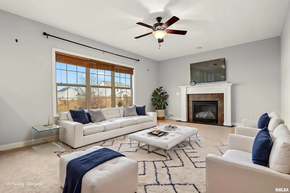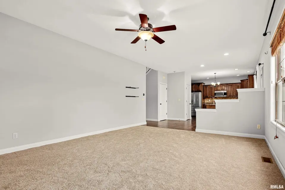 The main floor features abundant hardwood flooring & an open layout, including a versatile flex space perfect for a living or formal dining room. The great room is filled w/ natural light from windows & showcases a cozy fireplace, creating a warm & inviting atmosphere. The kitchen offers granite countertops, a center island, tile backsplash, wood cabinetry & stainless steel appliances, blending style & functionality. A main-floor laundry adds everyday convenience. Upstairs, each bedroom features a vaulted ceiling & a charming lighted display nook above the closet. The primary suite includes a jetted tub, separate standing shower & dual vanities. Three additional bedrooms provide ample space for family or guests, all w/ walk-in closets. The finished basement is ideal for entertaining, featuring daylight windows, a spacious recreation room, a 5th bedroom, full bath & additional storage space. Step outside to the main-floor deck, perfect for relaxing or hosting gatherings. Recent updates: Hybrid water heater in '23, New roof in '24, updated deck boards in '25, Fresh Paint for whole house & New Carpet in the Main and Upper Floor in '26. Includes a 14-month home warranty.