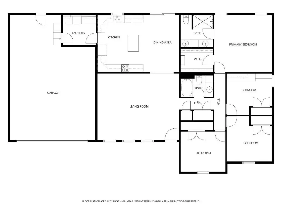 This 4 bedroom, 2 bath home offers a functional layout with well-sized bedrooms and a move-in ready feel from the moment you step inside. The kitchen features a center island, ample cabinet space, and plenty of workspace, opening nicely to the main living area for everyday living or gathering with friends and family. The primary suite includes a walk-in closet and a private full bath for added comfort and convenience. This home has been thoughtfully cared for, with HVAC serviced twice a year and annual termite inspections already in place. Spray-in insulation adds efficiency, and the composite back deck offers a great outdoor space without the maintenance. The beautifully landscaped lawn adds to the curb appeal and creates a welcoming first impression. A 2 car garage with built-in shelving provides additional storage, making this home as practical as it is well kept.