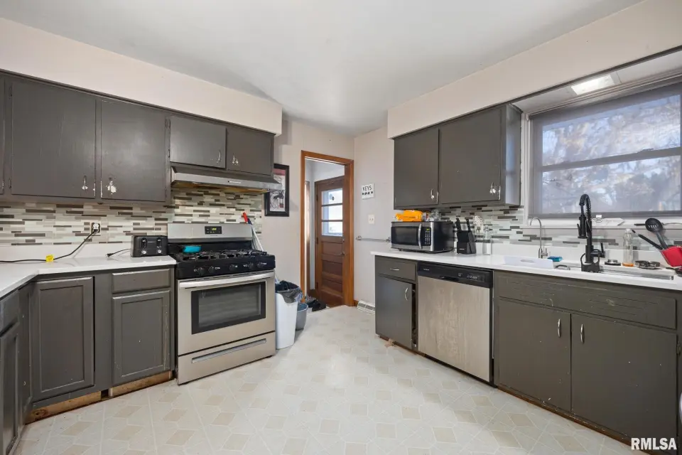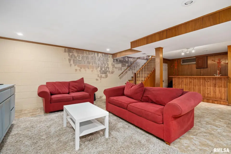 The kitchen features upgraded quartz countertops with abundant counter space and excellent natural light. A partially finished basement with a bar provides the perfect space for entertaining or relaxing. Step outside to enjoy the back deck, ideal for outdoor dining or quiet evenings.