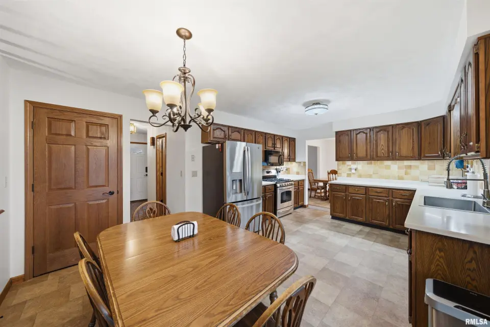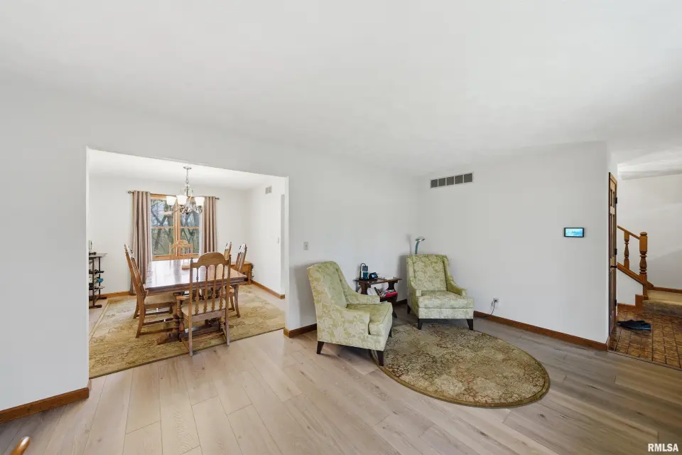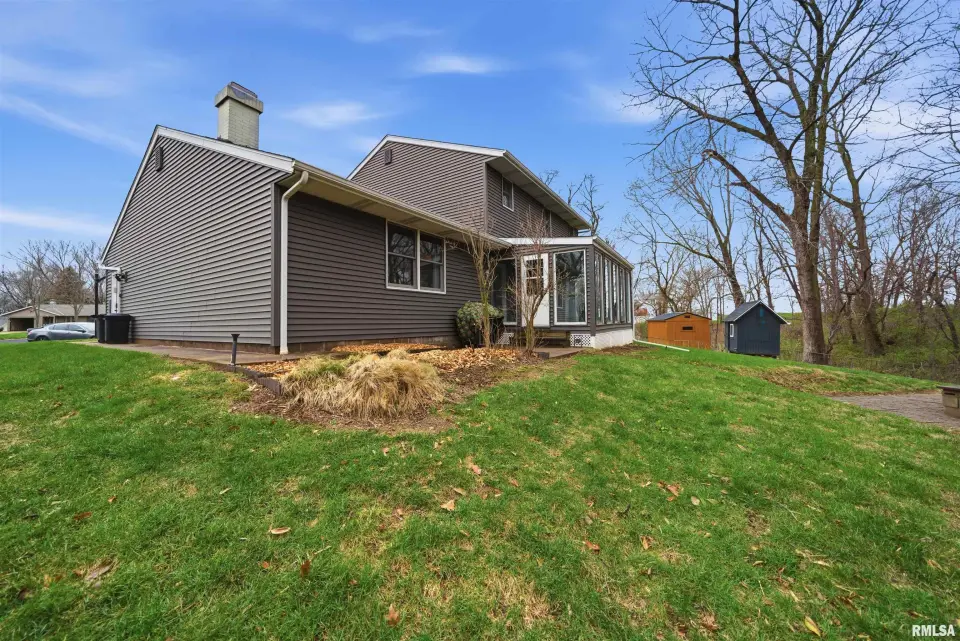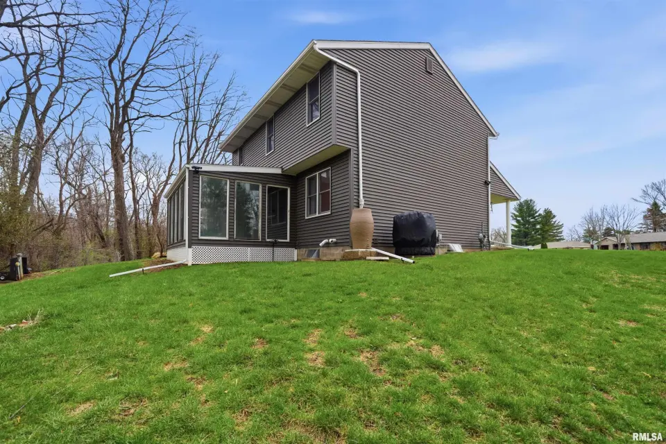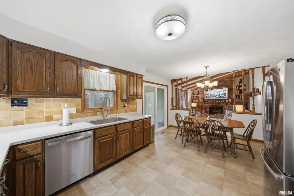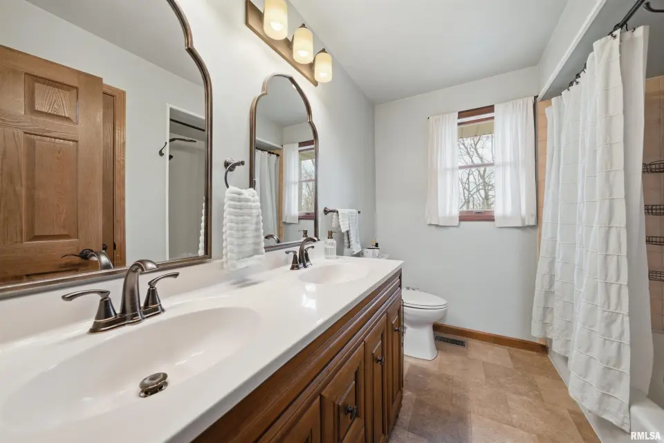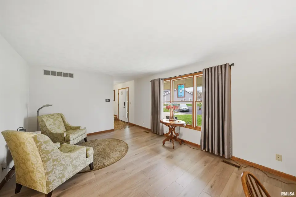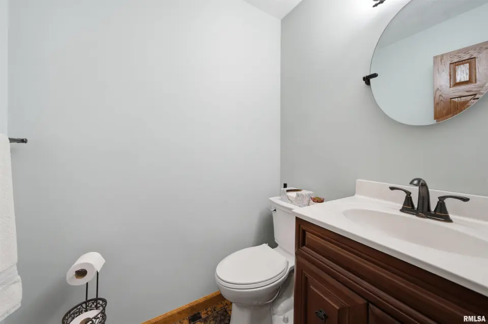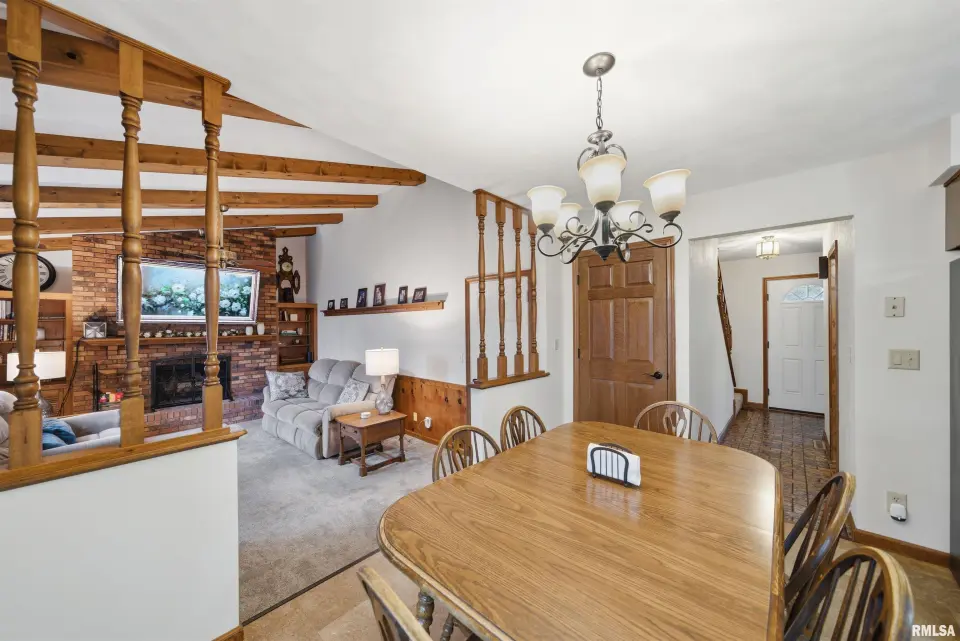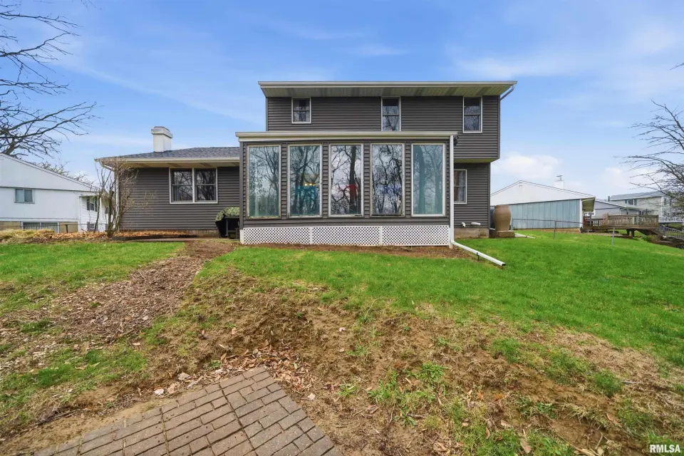 The interior boasts nearly 1,900 square feet of living space, featuring whole-house flooring upgrades and a modern kitchen refreshed with a new countertop and sink in 2022.The main level offers a bright and airy atmosphere, highlighted by a sun-drenched living room and family room with a cozy fireplace. Upstairs, the primary bedroom serves as a quiet retreat alongside two additional well-appointed bedrooms. Both bathrooms were enhanced in 2022 with new vanities and modern fixtures, ensuring a contemporary feel throughout. The exterior is equally impressive, featuring a durable roof 2022 and siding updated in 2018. High efficiency HVAC installed in 2018. An attached garage provides convenience, while the expansive secluded backyard offers ample space for outdoor activities and gardening. Ideally located in the Woodale subdivision, this property provides easy access to local amenities and is just a short drive to Monroe Elementary School. Experience a perfect blend of modern updates and functional design in this charming Bartonville home.