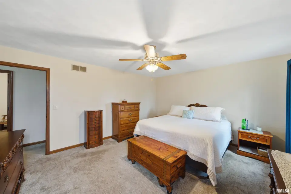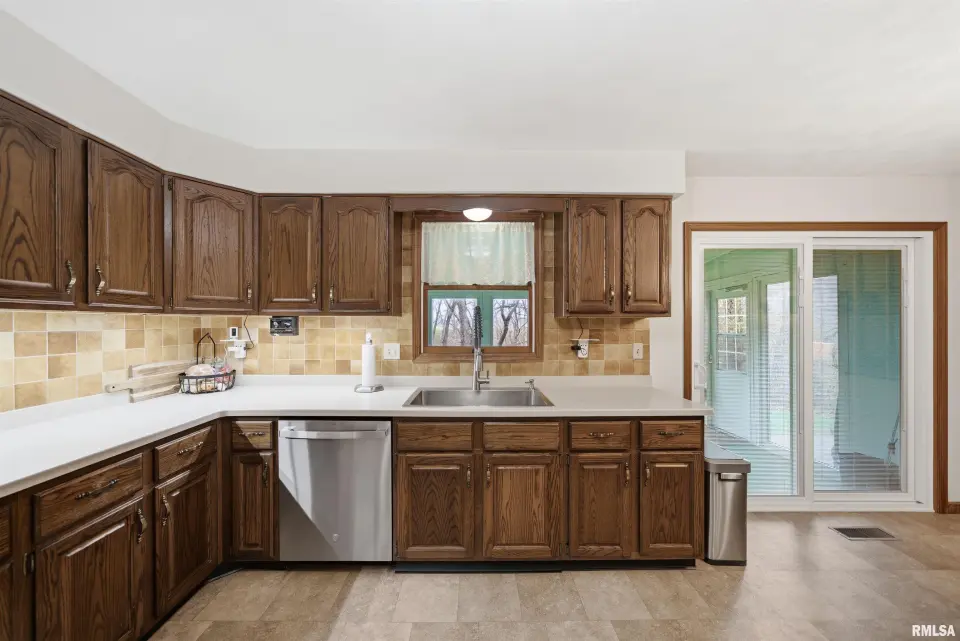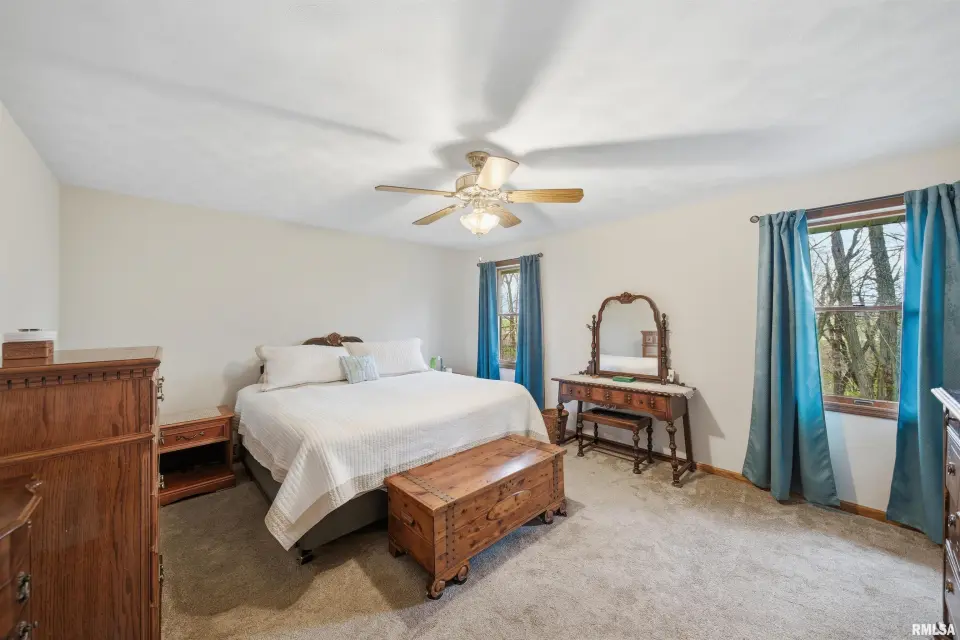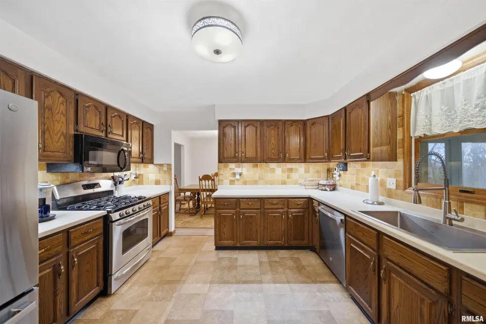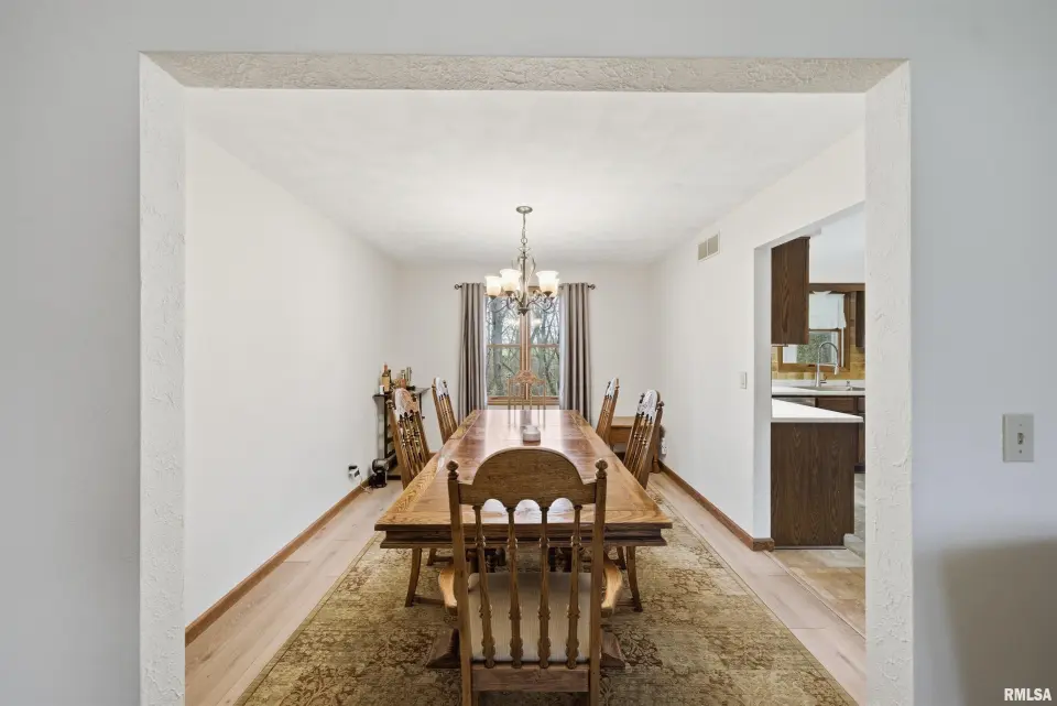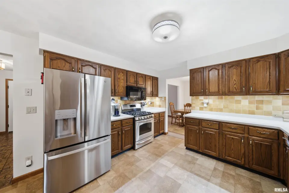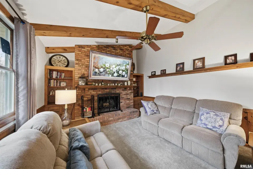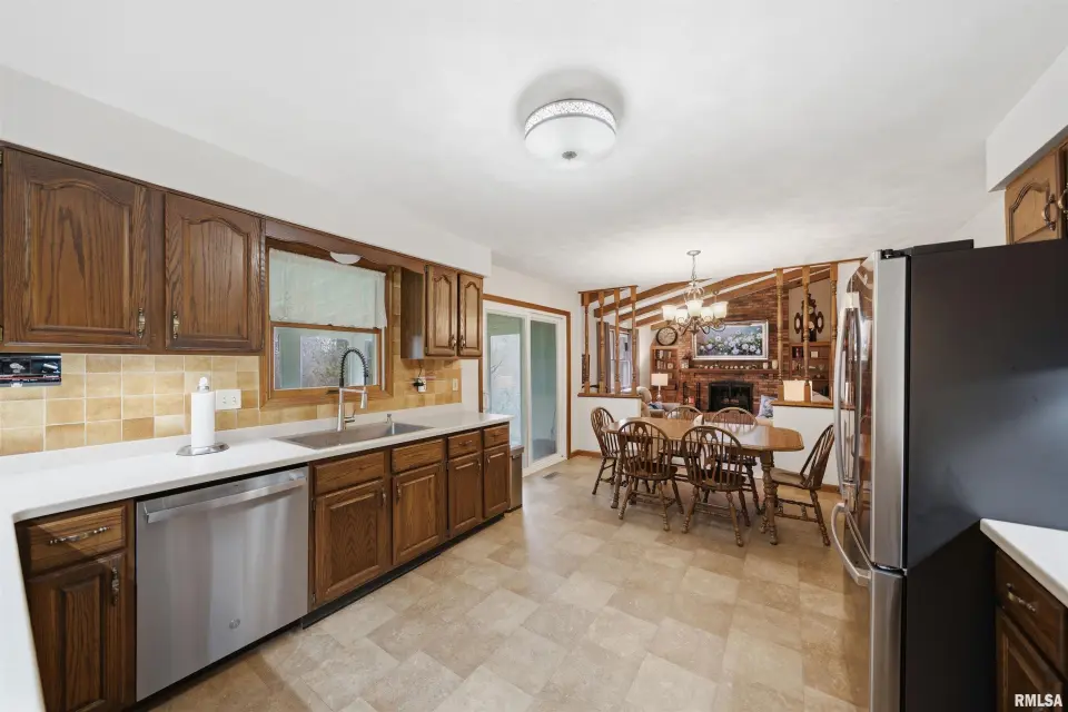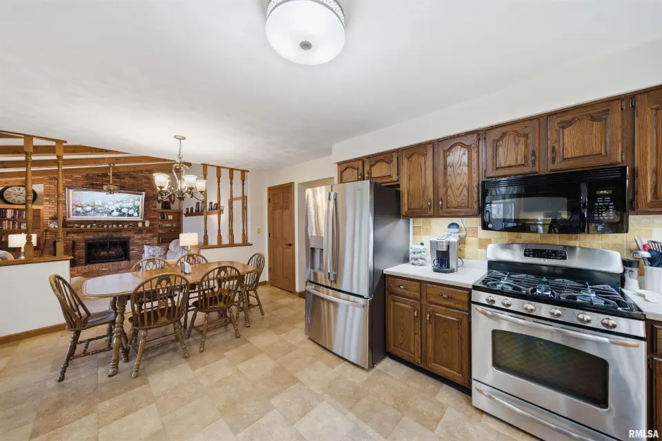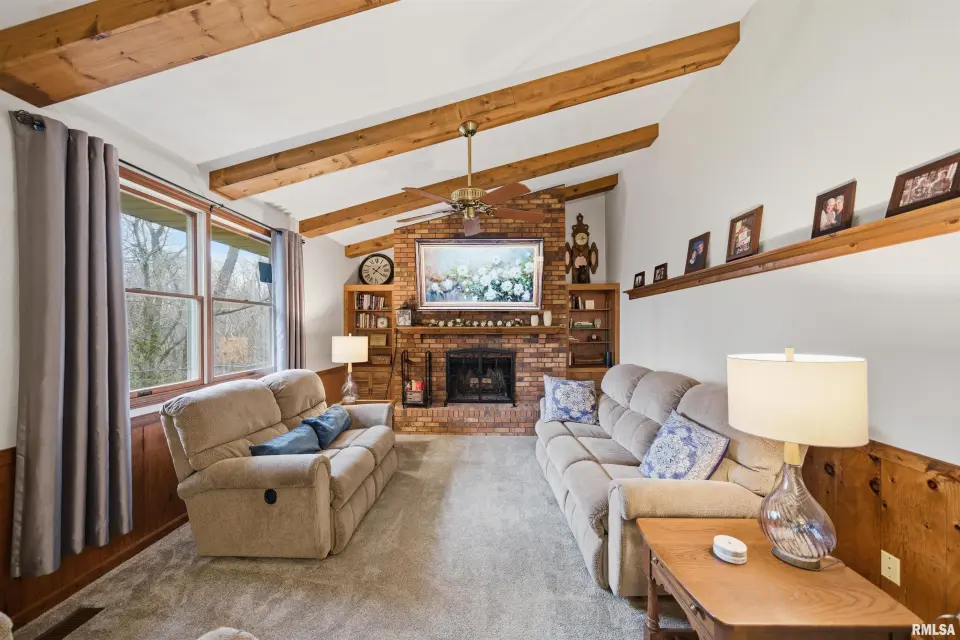 The interior boasts nearly 1,900 square feet of living space, featuring whole-house flooring upgrades and a modern kitchen refreshed with a new countertop and sink in 2022.The main level offers a bright and airy atmosphere, highlighted by a sun-drenched living room and family room with a cozy fireplace. Upstairs, the primary bedroom serves as a quiet retreat alongside two additional well-appointed bedrooms. Both bathrooms were enhanced in 2022 with new vanities and modern fixtures, ensuring a contemporary feel throughout. The exterior is equally impressive, featuring a durable roof 2022 and siding updated in 2018. High efficiency HVAC installed in 2018. An attached garage provides convenience, while the expansive secluded backyard offers ample space for outdoor activities and gardening. Ideally located in the Woodale subdivision, this property provides easy access to local amenities and is just a short drive to Monroe Elementary School. Experience a perfect blend of modern updates and functional design in this charming Bartonville home.