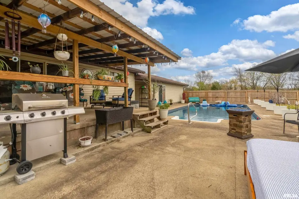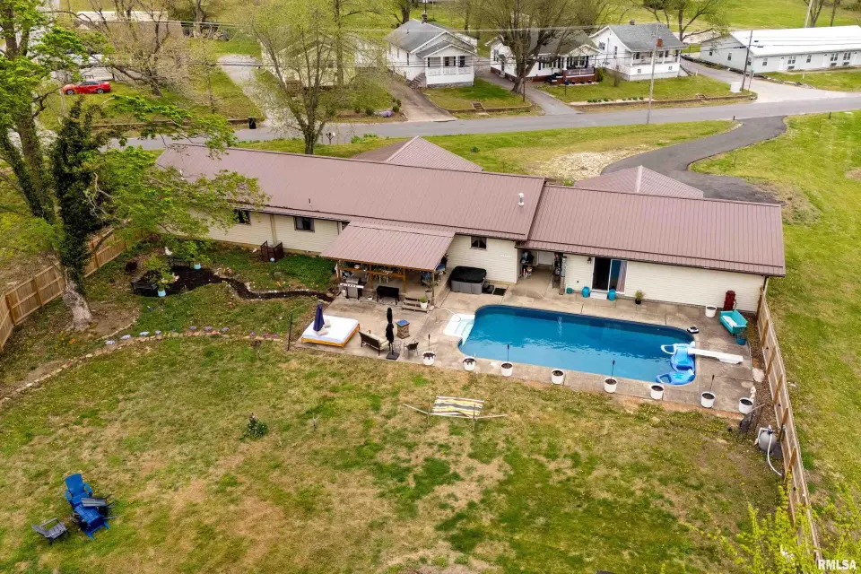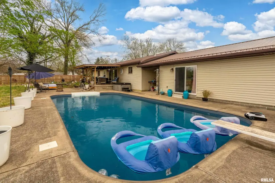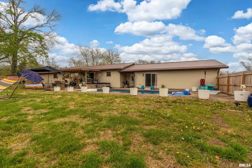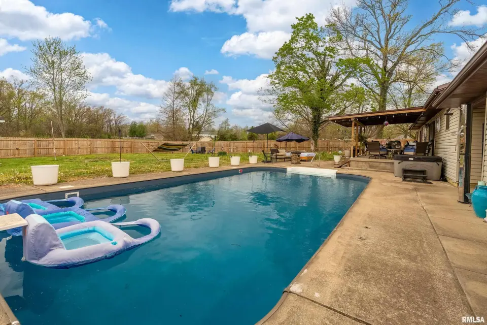 Step inside to a large, inviting living room that flows into and open concept kitchen, dining, and seating area- ideal for everyday living and for entertaining. The kitchen features cherry cabinets, abundant space, a large island with storage and seating, and easy access to the back deck for seamless indoor-outdoor gatherings. Down the hall you'll find all four bedrooms and a full bathroom designed for convenience, with a pocket door separating the vanity from the tub/shower and toilet area for added privacy. The master suite is tucked at the end of the hallway and offers a spacious walk-in closet along with luxurious bathroom complete with a rain head shower and jet tub. Just off the kitchen, near the coffee bar, is a bonus room currently used as a craft space. You'll also find a step down to the laundry room with excellent storage and access to the 3 car garage. A second bonus room is located off the laundry area, complete with sliding doors to the in-ground pool. Step outside to enjoy your own backyard oasis featuring an in-ground pool, fenced yard, patio and covered back deck- all surrounded by 3.53 acres of peaceful property.