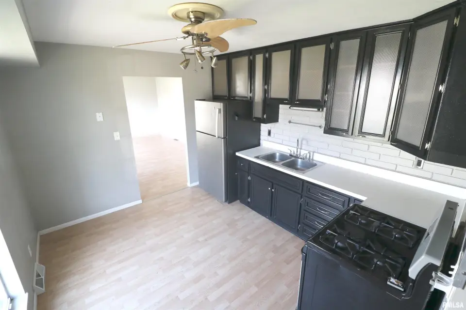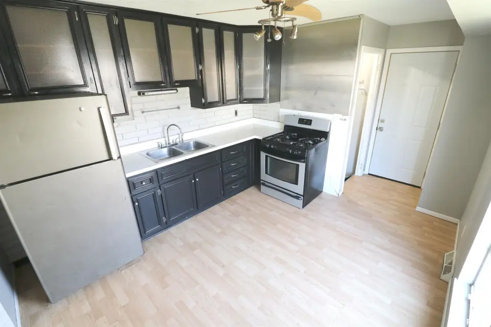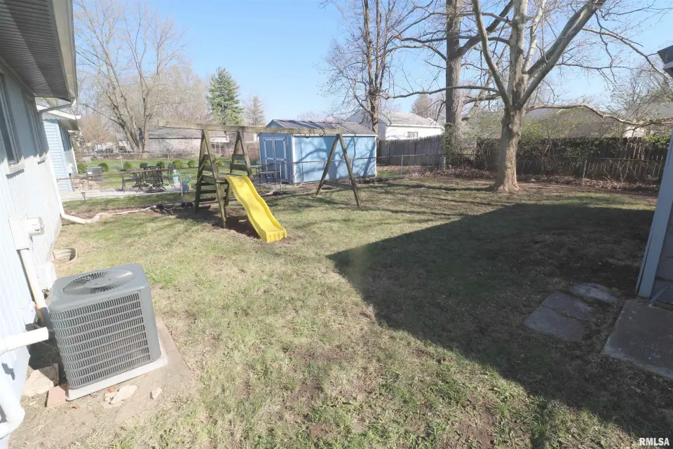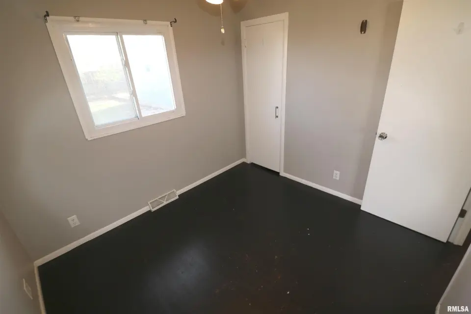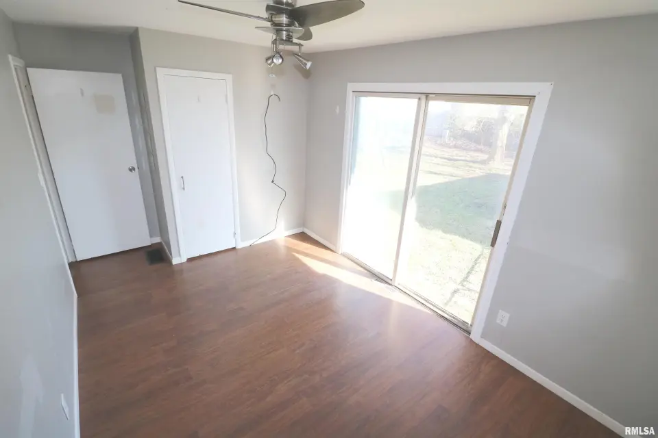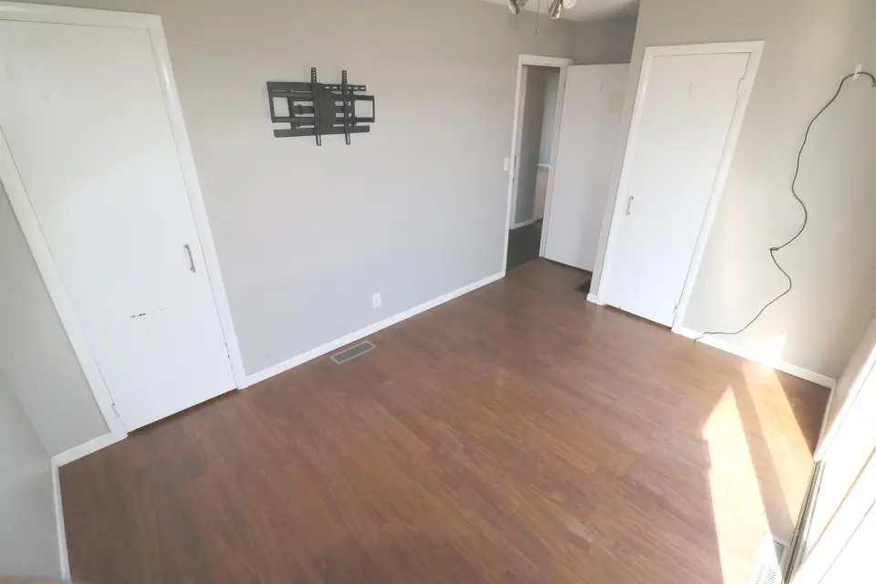 Primary bedroom has 2 closets and a sliding patio door to the back yard. All solid surface flooring. Basement dewatering system with battery backup. Newer furnace and AC units. New ext. steel door. Was rented for last 9 years. 2 car garage with newer metal roof and garage door. Fenced in back yard with play set that stays.