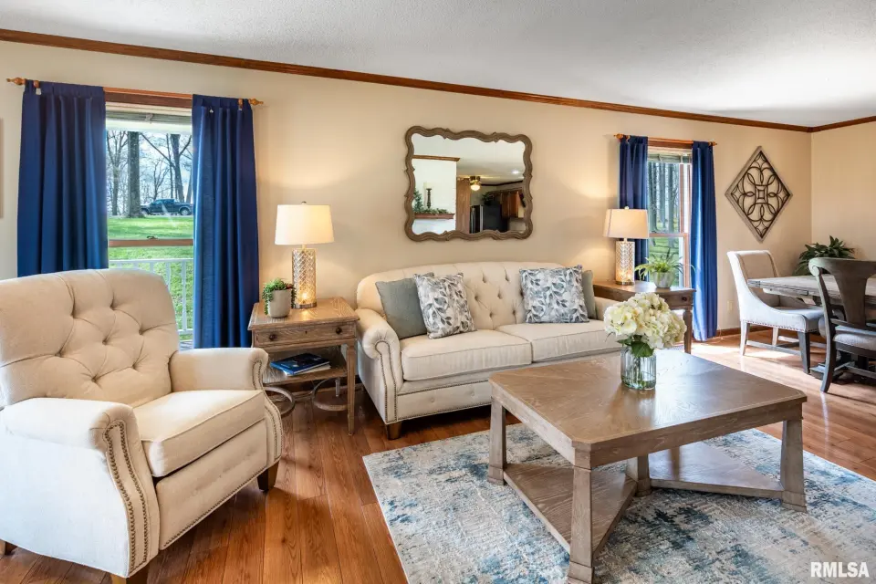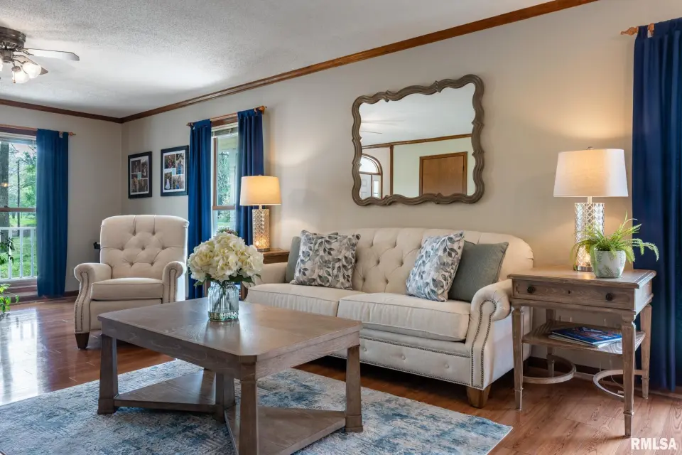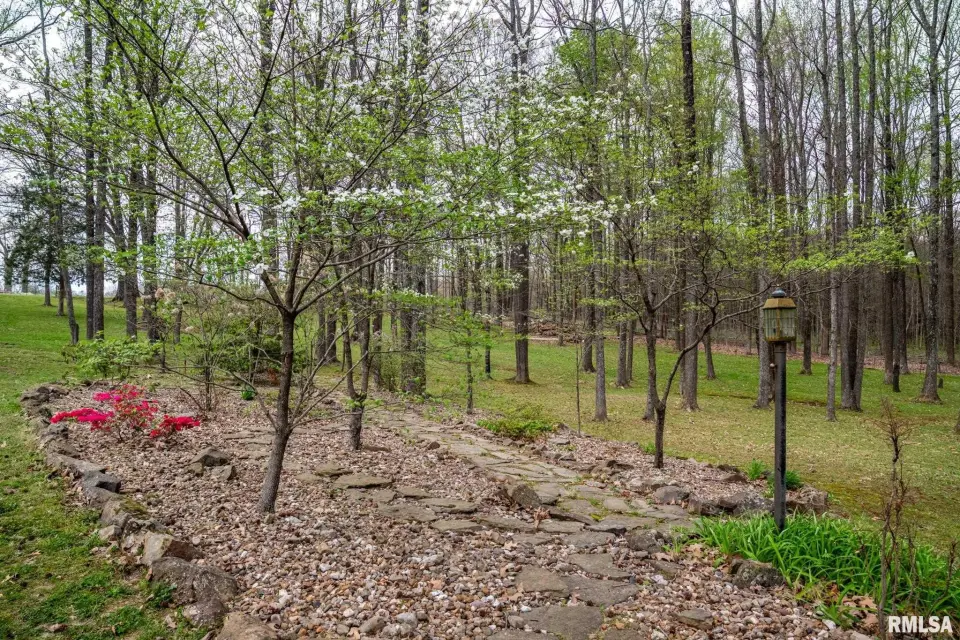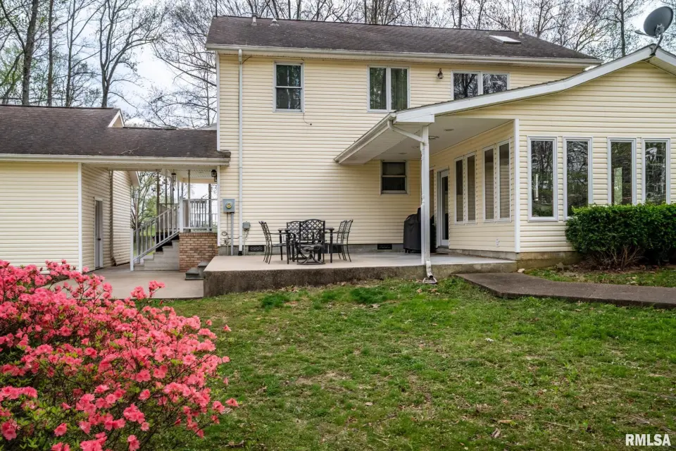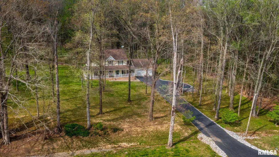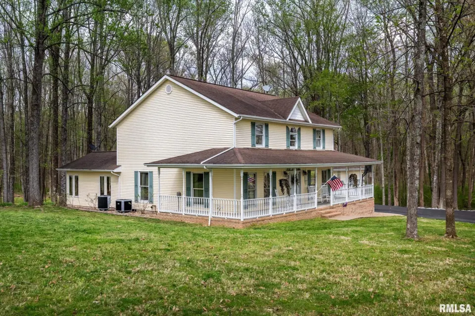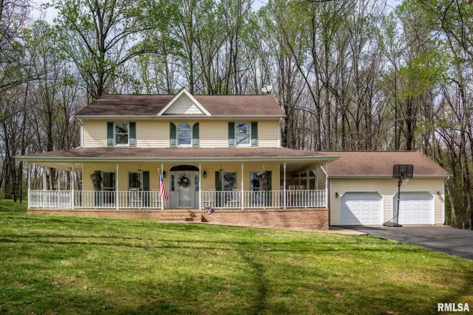This beautifully maintained, nearly 4-acre property offers a true park-like setting with mature trees, flowing shrubs, and thoughtfully designed outdoor spaces. A welcoming wrap-around front porch provides the perfect place for seating, plants, and enjoying the quiet surroundings. Out back, a patio and rock path lead you through landscaped greenery—ideal for relaxing mornings or evenings. Inside, this 4-bedroom, 3-bath home features a comfortable, functional layout. The kitchen is smartly designed with ample cabinetry, and the adjoining utility room includes a stainless utility sink and additional cabinets, perfect for pantry and overflow storage. A main-floor bedroom adds flexibility, while upstairs offers a spacious primary suite with two closets—one oversized, plus two additional bedrooms, all with walk-in closets. The sunroom with gas ventless heater is a standout, offering year-round views of the property. A 2-car garage connected by a breezeway adds everyday convenience. For hobbies or outdoor work, the 30x40 pole barn with its own entrance off Old Route 146 Loop includes a bathroom—ideal for projects, storage, or clean-up after time outside. If you’ve been looking for space, comfort, and a peaceful setting with easy access to surrounding towns, this one is a must-see.
