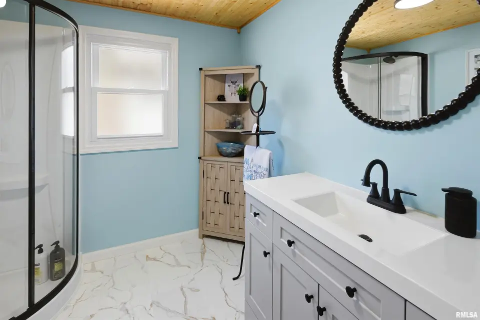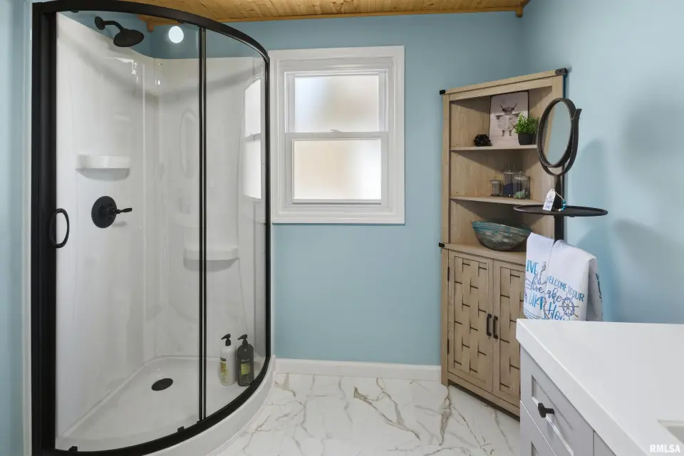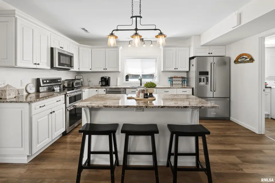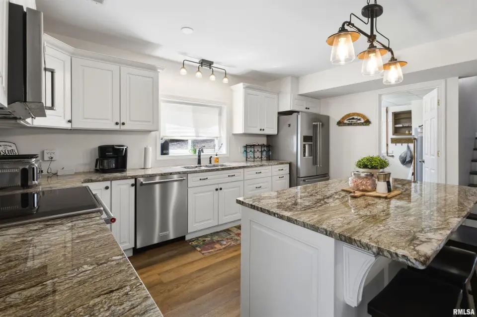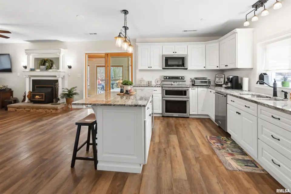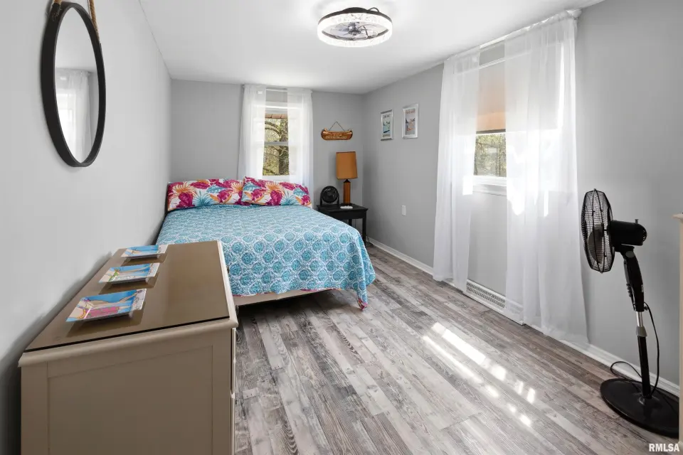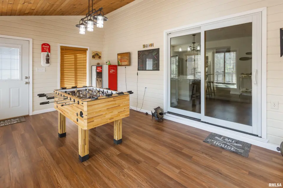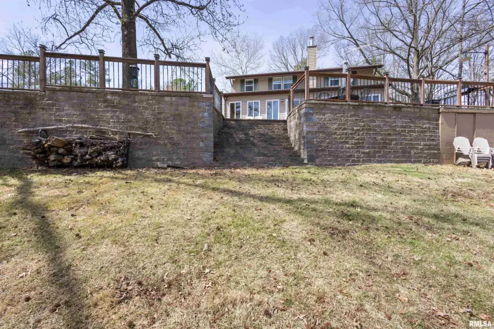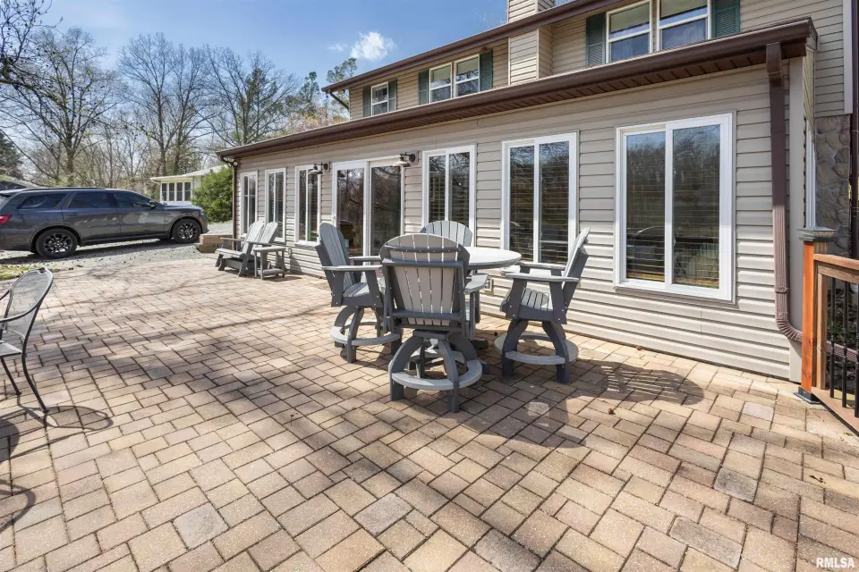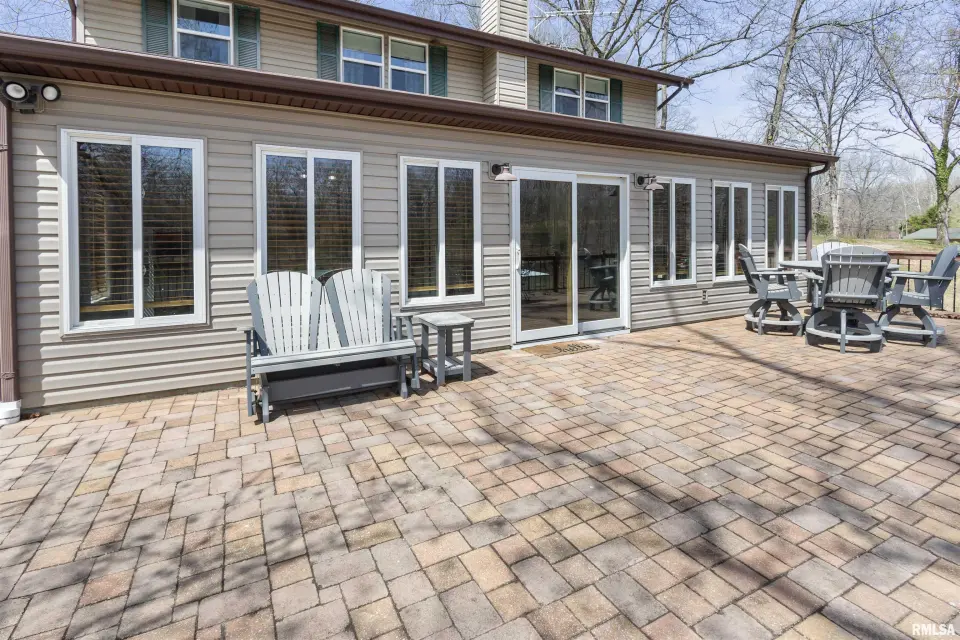 The main level features a beautifully designed kitchen with gorgeous countertops, crisp white cabinetry and a convenient laundry/pantry area. You'll also find a half bath, a welcoming living room and a spacious primary bedroom complete with a private en suite bath. Upstairs the home offers three generously sized bedrooms with ample storage, along with a full shared bath-perfect for family and guests. Enjoy the outdoors year-round from the beautiful screened and glassed-in back porch, or step outside to the impressive -450 sq ft block patio-an ideal space for relaxing or entertaining while gazing at the water. Recent updates include new a new roof (2024) and a totally renovated, tastefully decorated full bathroom. Owner has also installed new gutter guards and back porch had brand new skylights installed when new roof was done in 2024. This property truly shines outside also featuring a covered dock with a boat slip, plus an additional uncovered exterior lift-perfect for a fishing boat, a 22x22 detached garage provides parking while the 30x40 pole barn offers storage and space for all kinds of projects! There is also a new 8x12 ft storage building by the dock and a new sun deck added onto the dock. There is electricity in shed, dock, garage and pole barn!