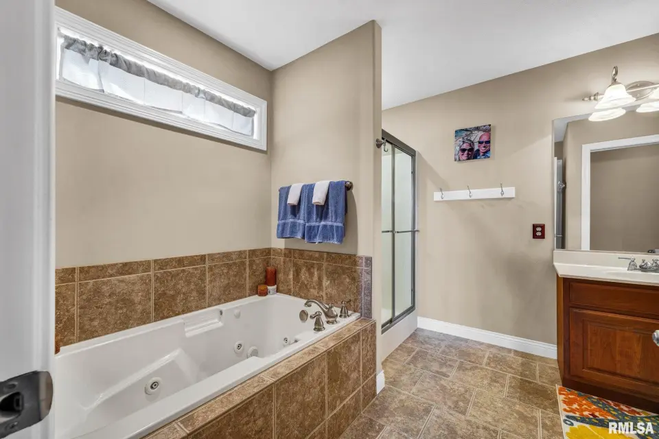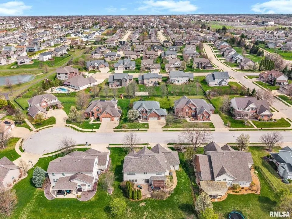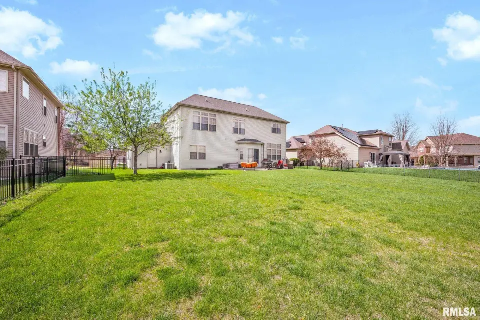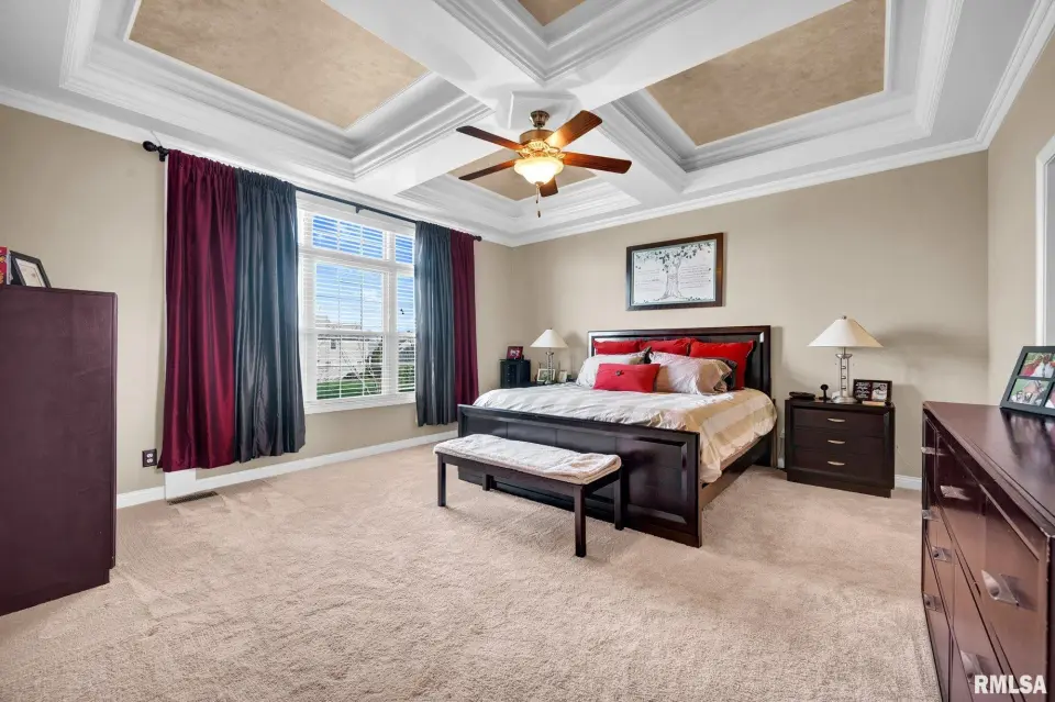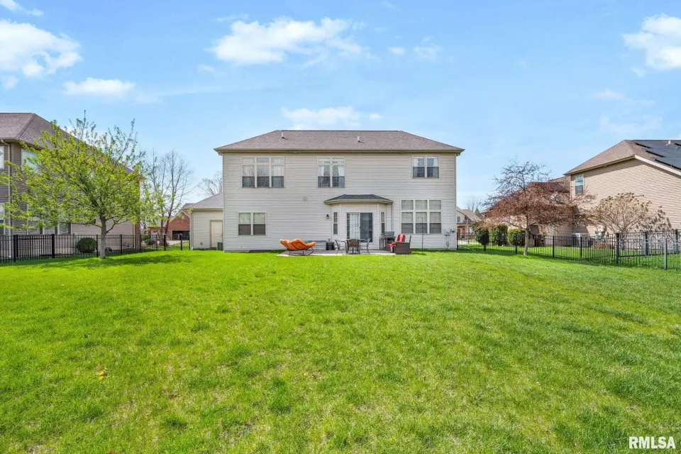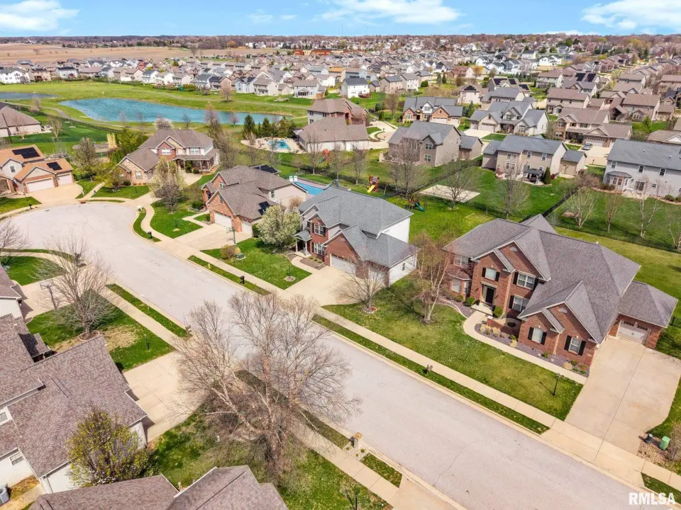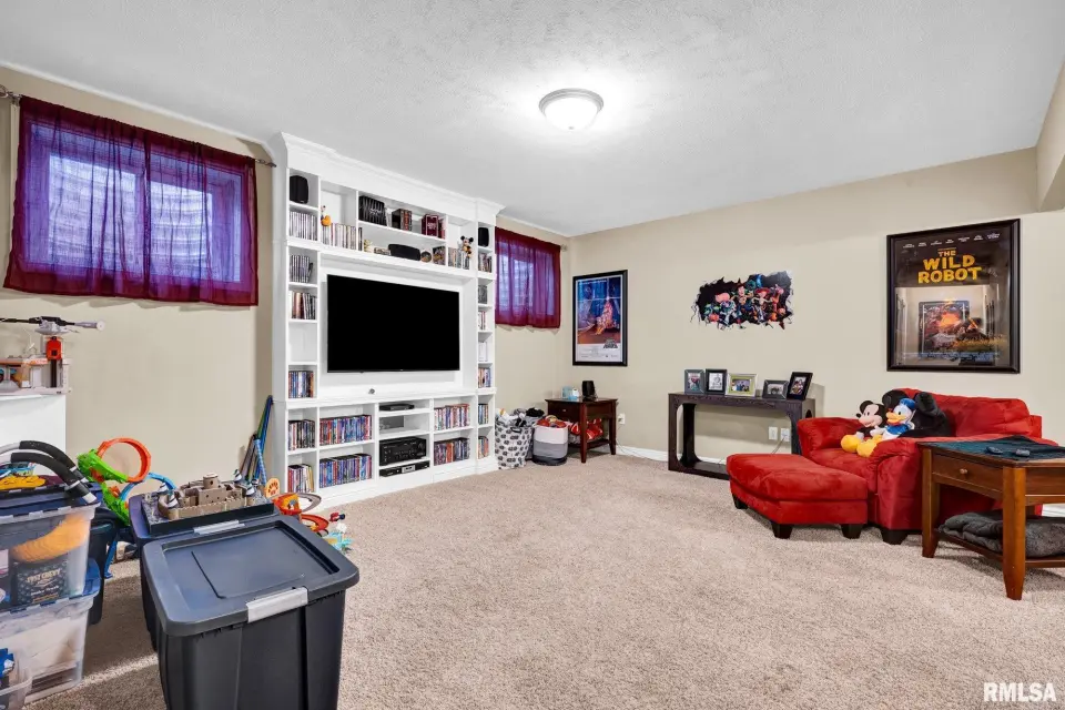 From the moment you enter, rich wood flooring, elevated ceilings and thoughtfully designed built-ins set the tone for a home that blends warmth with sophistication. The main living area features a cozy gas fireplace, fresh carpeting, and expansive windows that fill the space with natural light while seamlessly connecting the living and dining area. The kitchen is designed for both everyday living and effortless entertaining, complete with ample custom cabinetry, granite countertops, an eat-in bar, and a buffet station-perfect for hosting. A formal dining room offers an elegant setting for holidays and special occasions. Upstairs, the spacious primary suite serves as a private retreat, highlighted by coffered ceilings, ambient rope lighting, and a well-appointed en suite bath. Three additional generously sized bedrooms, laundry room and a full bath provide ample space for family or guests. The finished basement expands your living options with a large family room, full bath, and 5th bedroom. A main-level den could easily function as a 6th bedroom. 3 stall heated garage has utility sink, workbench and a perfect bonus space. Step outside to professional landscaped grounds featuring mature trees, irrigation and a peaceful setting perfect for relaxing and entertaining. Close to walking trails.