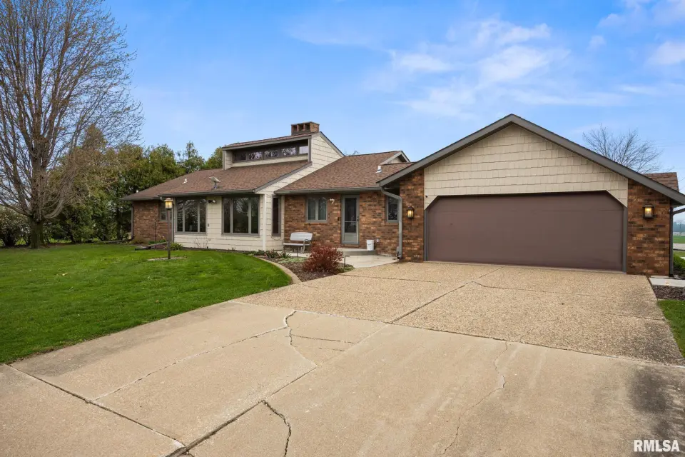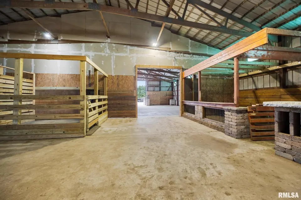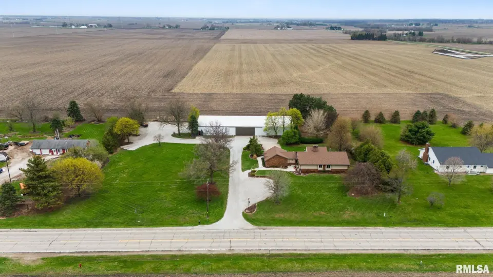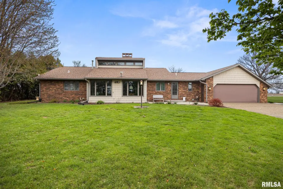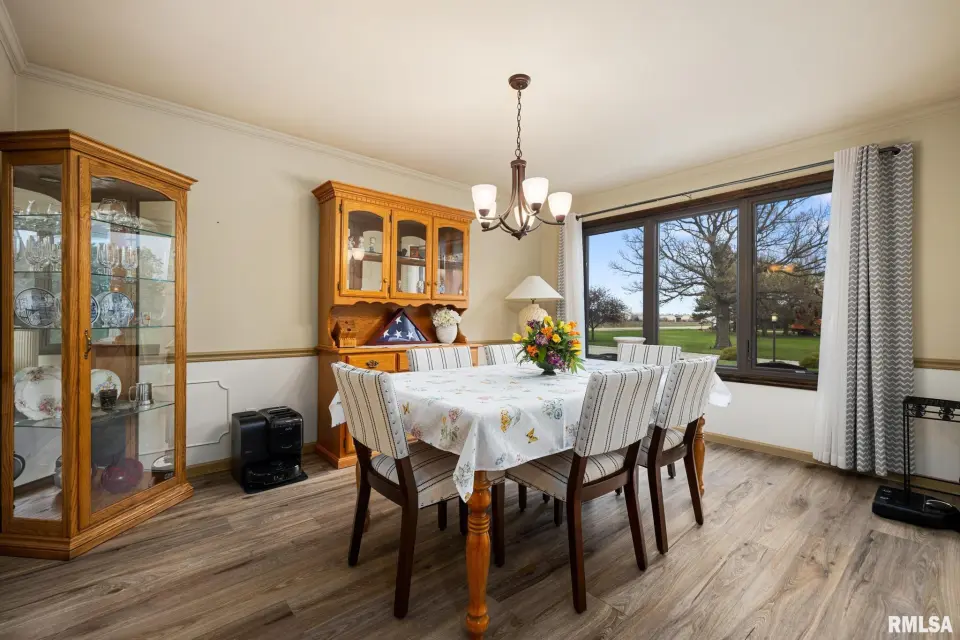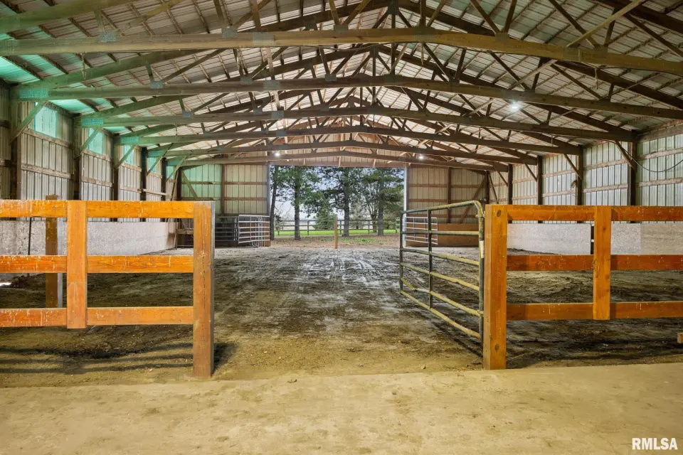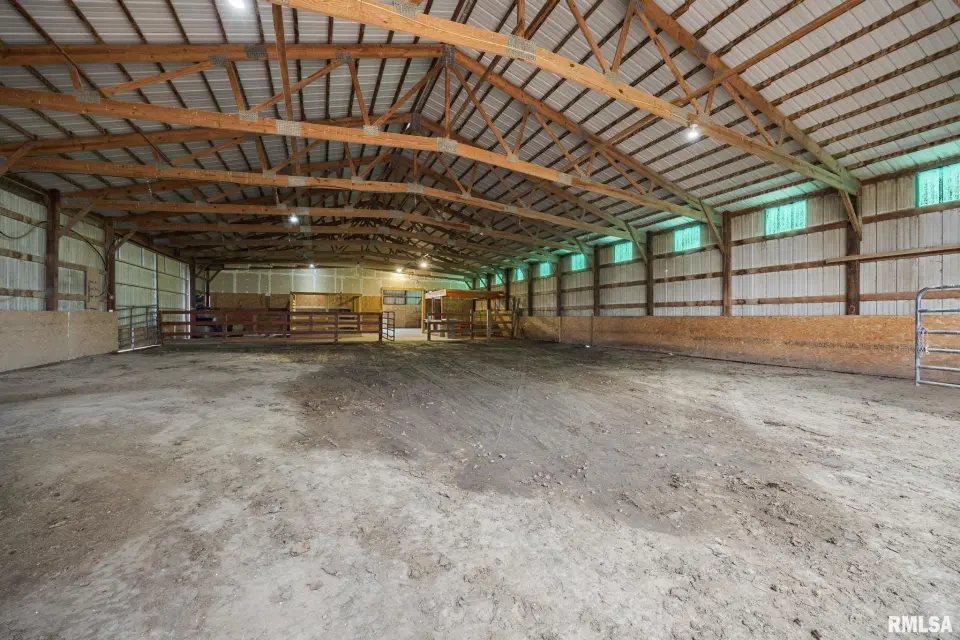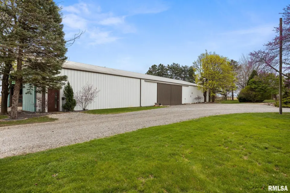 Enjoy a bright and open great room with vaulted ceilings and abundant natural light, along with a large kitchen featuring Roecker cabinetry and a center island. A formal dining room and private office just off the great room add flexibility for everyday living and entertaining. Main floor laundry is conveniently located off the oversized 2-car garage, and a welcoming foyer greets you at the front entrance. Most windows were replaced in 2017 with Andersen windows, and newer luxury vinyl flooring runs throughout much of the home. The finished basement is set up like a separate apartment, offering a full kitchen, living area, full bath, laundry hookups, and an additional bedroom (no egress window). Outside, the impressive 55x135 outbuilding includes a concrete-floor workshop area and space currently set up as an arena ideal for hobbyists or horse enthusiasts. A truly unique property with space, function, and scenic surroundings! Siding, gutters & Soffit replaced in 2017. New roof 2022. Furnace new 2021. Great rural home and very well cared for! Don't miss out!
