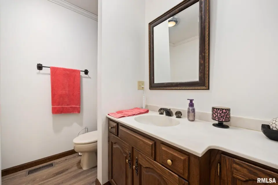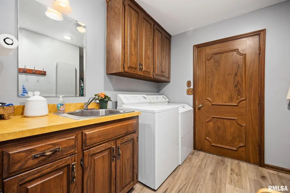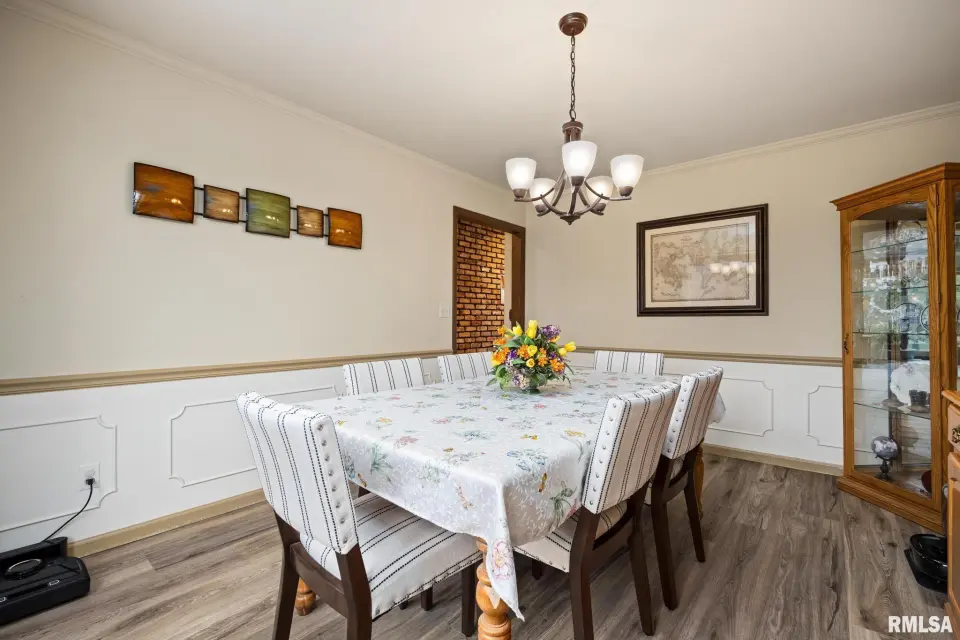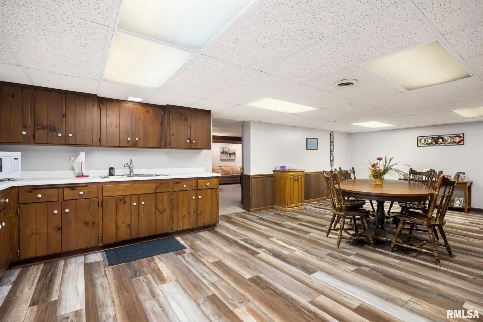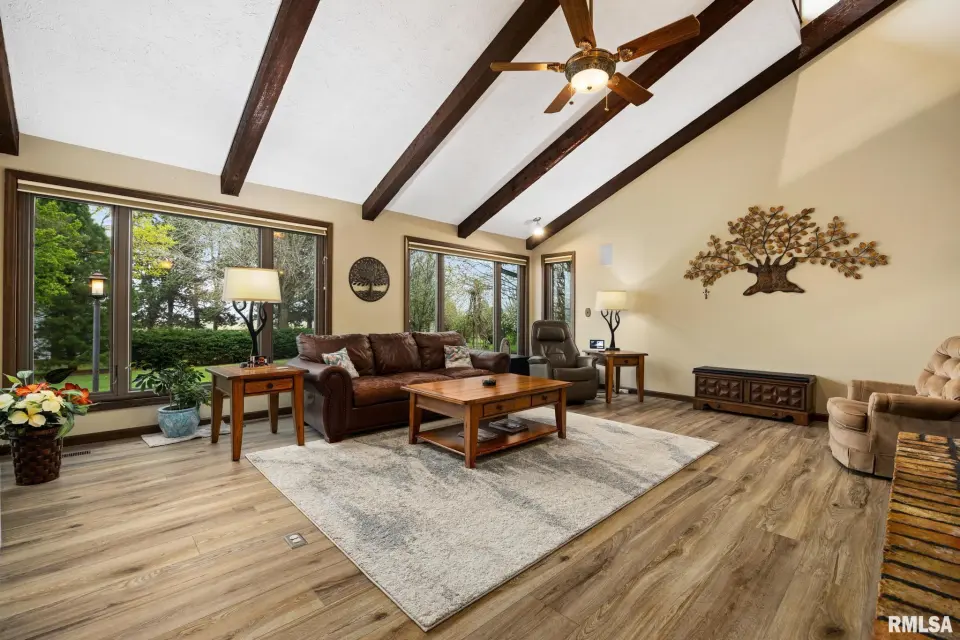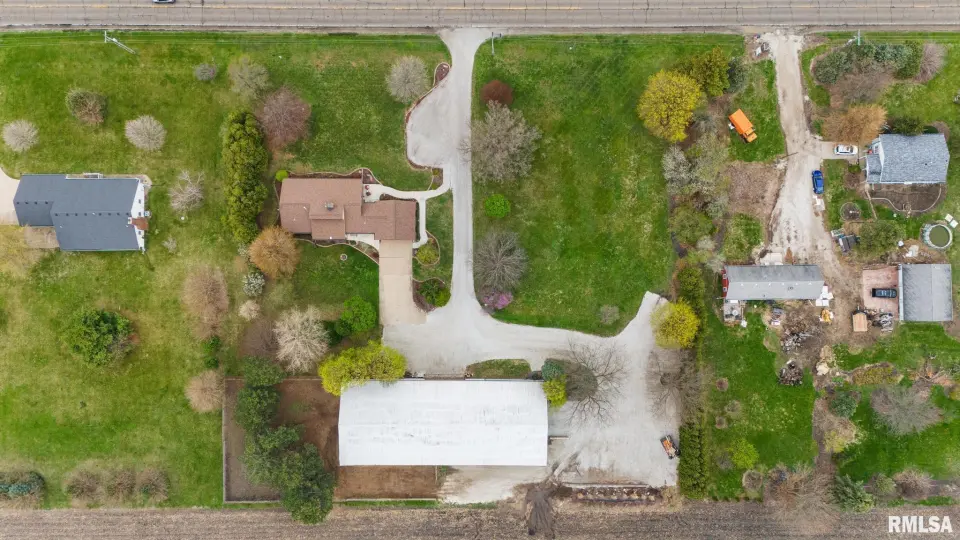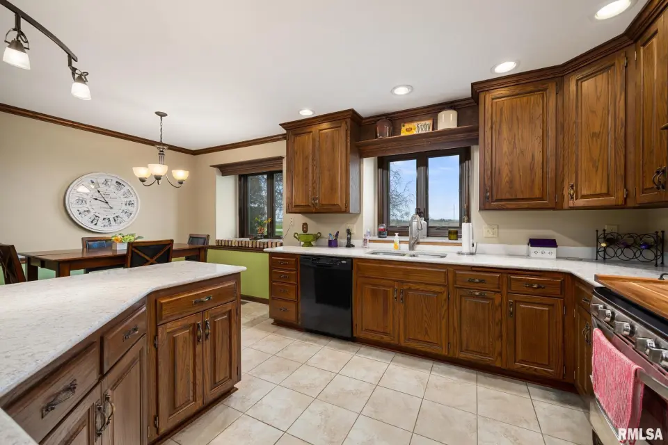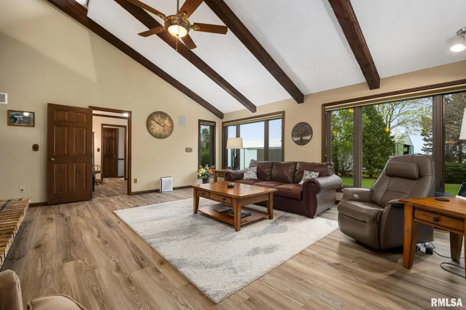 Enjoy a bright and open great room with vaulted ceilings and abundant natural light, along with a large kitchen featuring Roecker cabinetry and a center island. A formal dining room and private office just off the great room add flexibility for everyday living and entertaining. Main floor laundry is conveniently located off the oversized 2-car garage, and a welcoming foyer greets you at the front entrance. Most windows were replaced in 2017 with Andersen windows, and newer luxury vinyl flooring runs throughout much of the home. The finished basement is set up like a separate apartment, offering a full kitchen, living area, full bath, laundry hookups, and an additional bedroom (no egress window). Outside, the impressive 55x135 outbuilding includes a concrete-floor workshop area and space currently set up as an arena ideal for hobbyists or horse enthusiasts. A truly unique property with space, function, and scenic surroundings! Siding, gutters & Soffit replaced in 2017. New roof 2022. Furnace new 2021. Great rural home and very well cared for! Don't miss out!