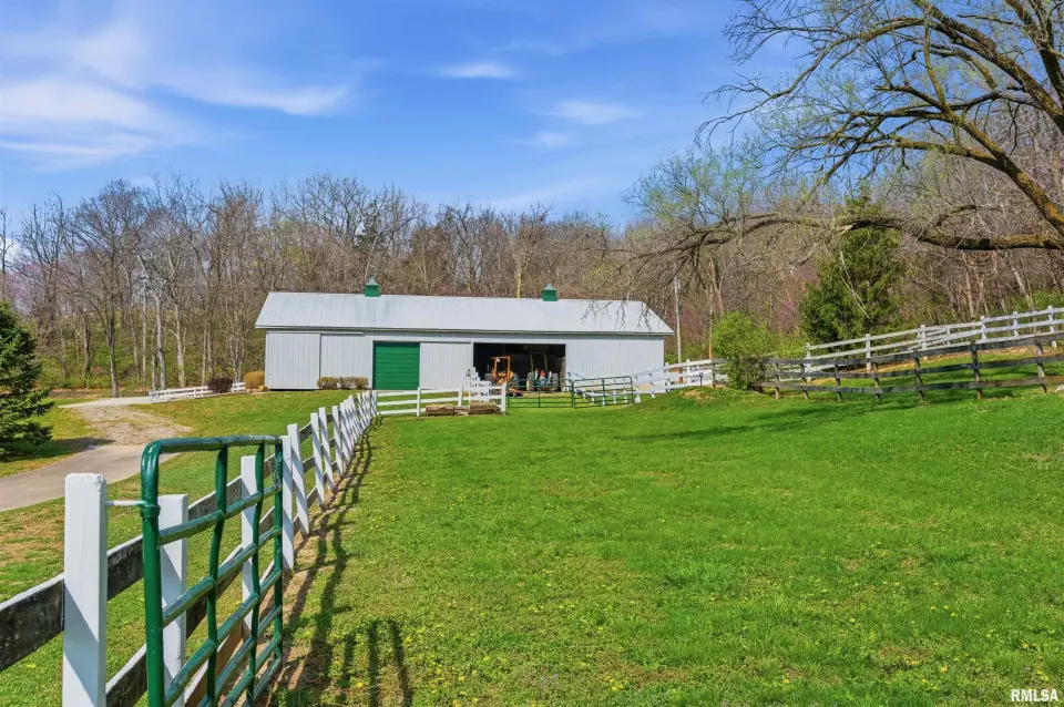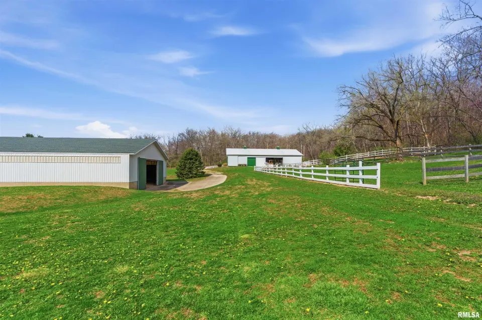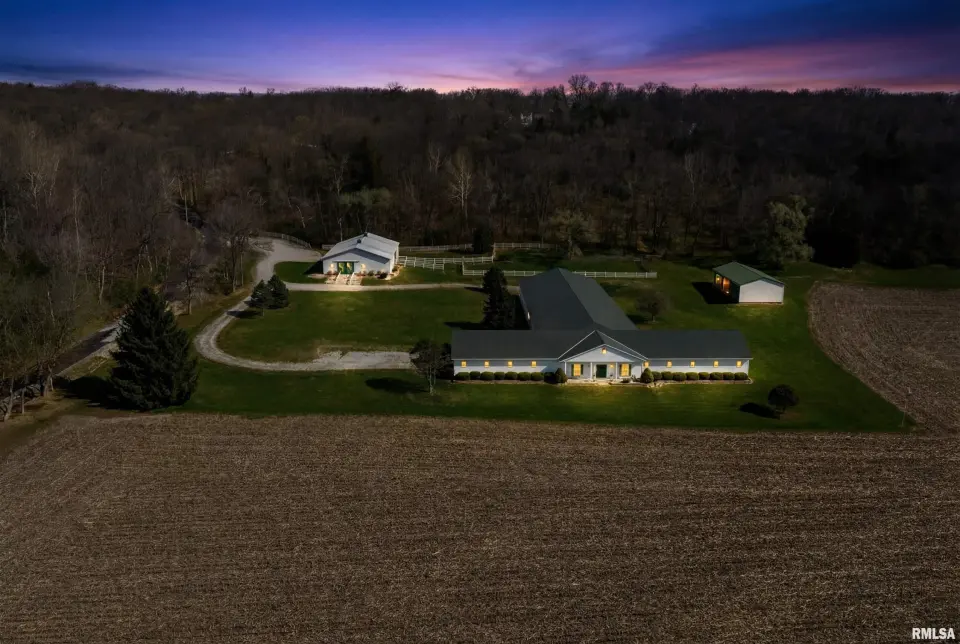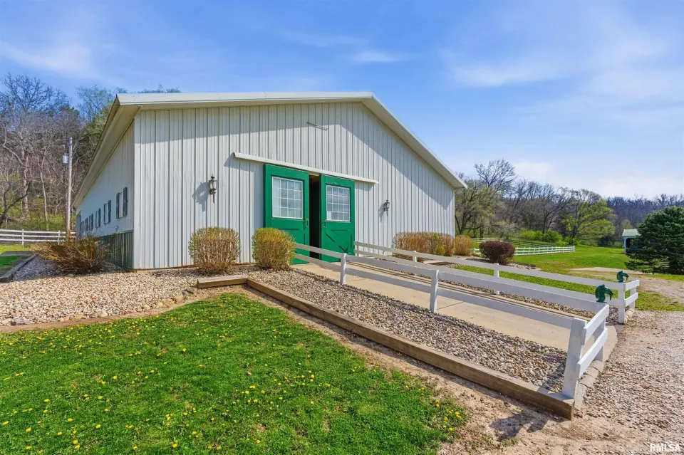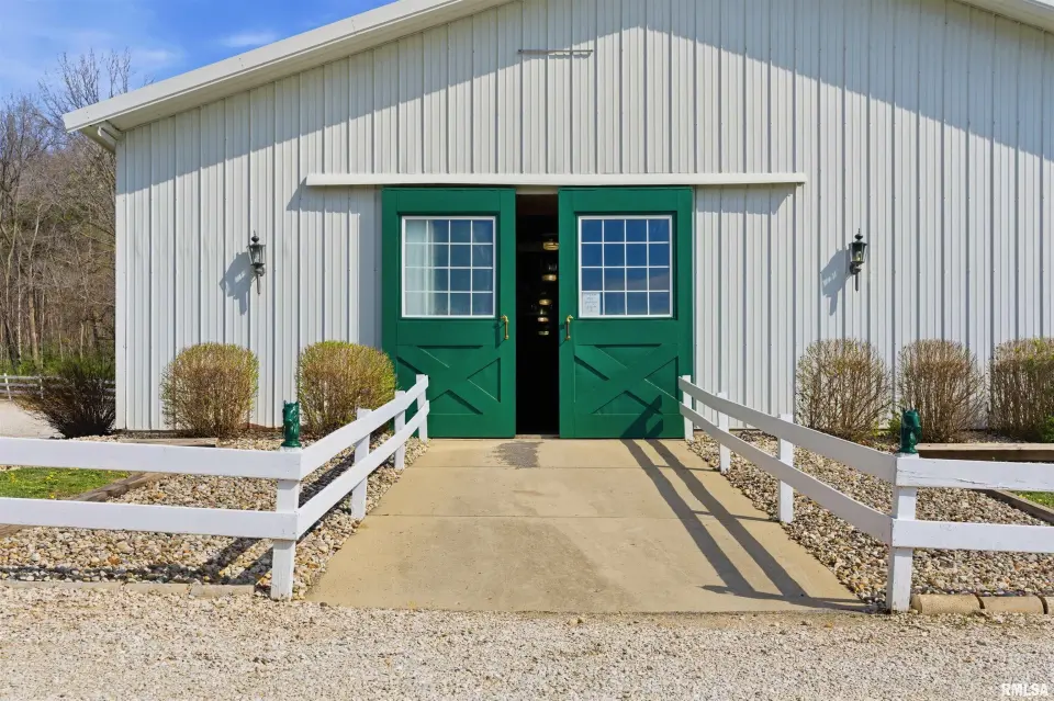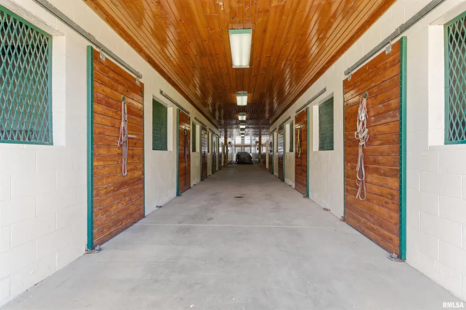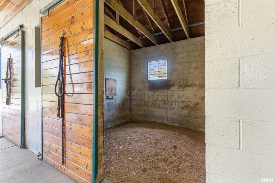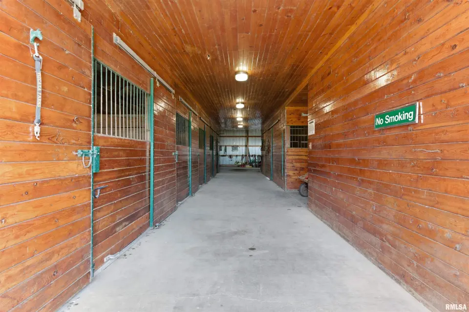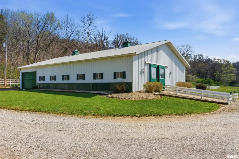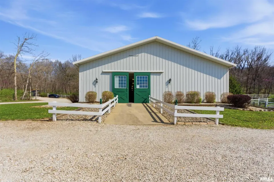 The property features three primary buildings, including a massive 55x150 indoor riding arena with a climate-controlled viewing room, multiple tack rooms, and a professional wash rack. Two well-designed barns offer a total of 25 stalls. The main cement block barn includes 16 premium 11x11 stalls with automatic waterers, overhead fans, pine sliding doors, and mesh fronts. The second barn, a durable metal pole building, features 9 additional 11x12 stalls with classic bar fronts. A 30x60 hay barn with three storage sections keeps feed organized and protected.The land includes lush pastures, fenced paddocks, and approximately 10 tillable acres. Zoned rural residential, this property offers flexibility—operate as a top-tier equestrian facility or build your dream home overlooking the grounds. Don’t miss this turnkey opportunity—schedule your private tour today!