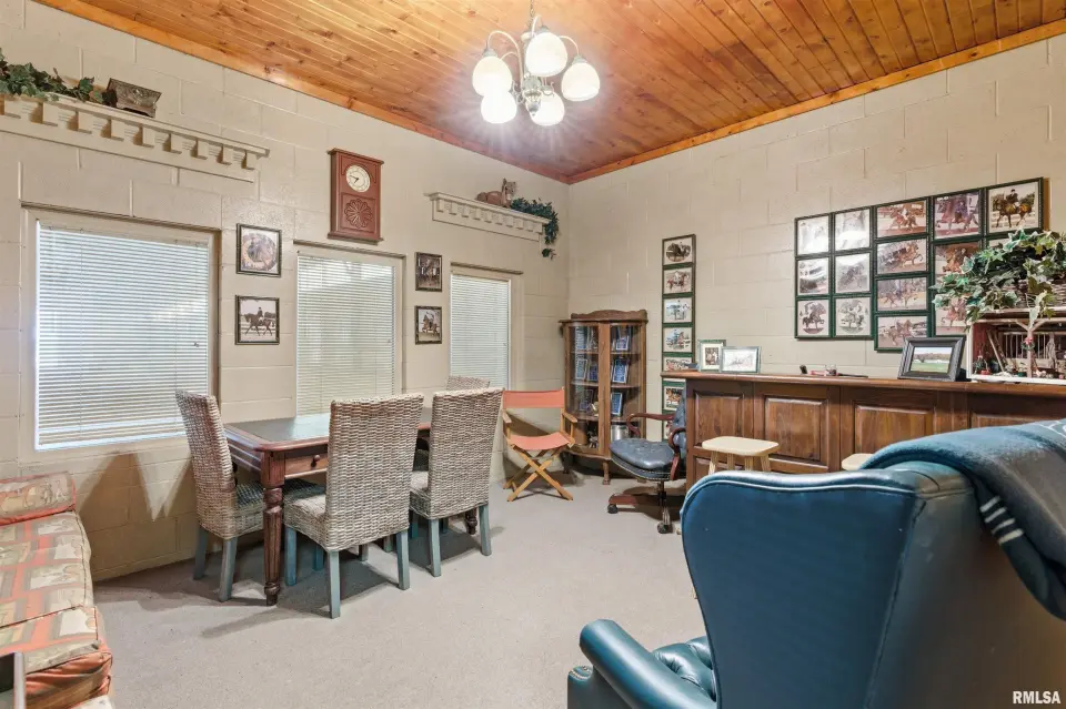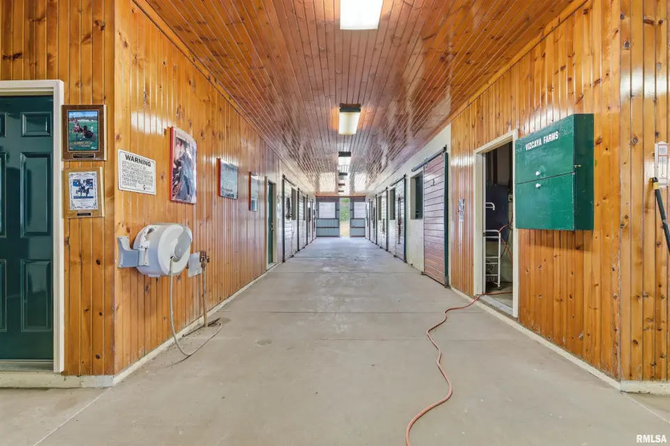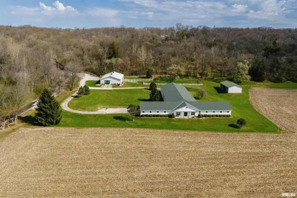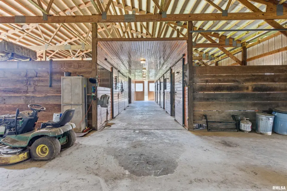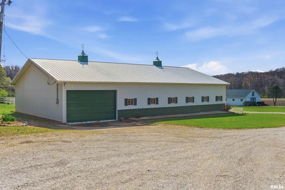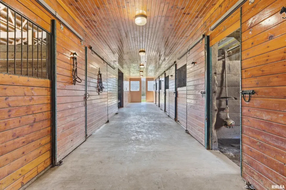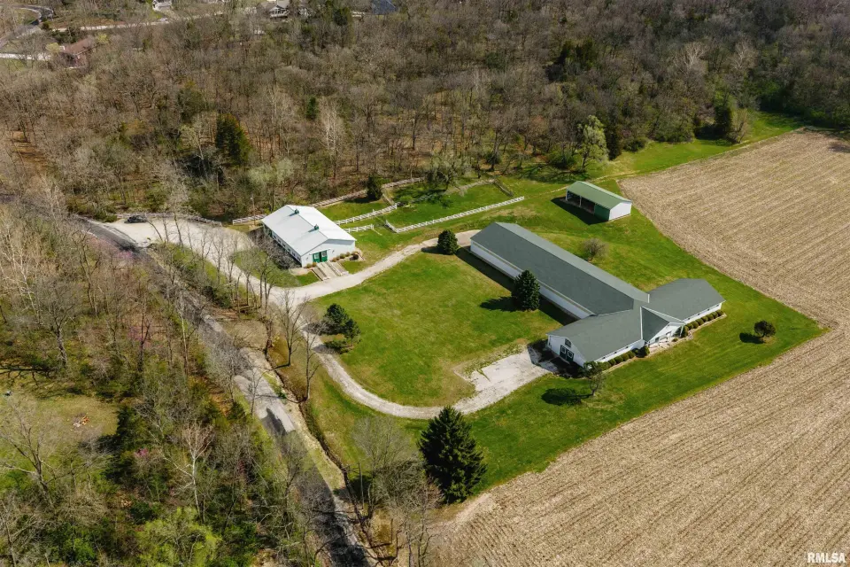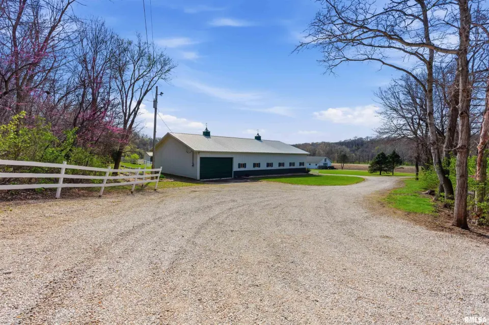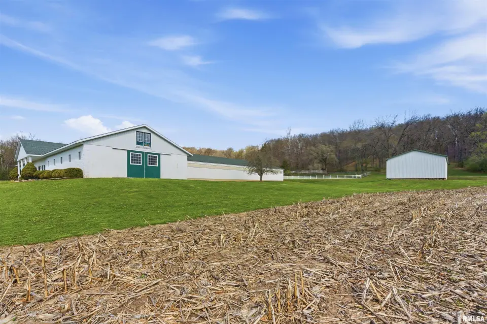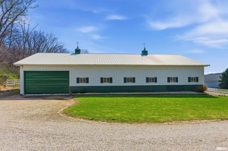 The property features three primary buildings, including a massive 55x150 indoor riding arena with a climate-controlled viewing room, multiple tack rooms, and a professional wash rack. Two well-designed barns offer a total of 25 stalls. The main cement block barn includes 16 premium 11x11 stalls with automatic waterers, overhead fans, pine sliding doors, and mesh fronts. The second barn, a durable metal pole building, features 9 additional 11x12 stalls with classic bar fronts. A 30x60 hay barn with three storage sections keeps feed organized and protected.The land includes lush pastures, fenced paddocks, and approximately 10 tillable acres. Zoned rural residential, this property offers flexibility—operate as a top-tier equestrian facility or build your dream home overlooking the grounds. Don’t miss this turnkey opportunity—schedule your private tour today!