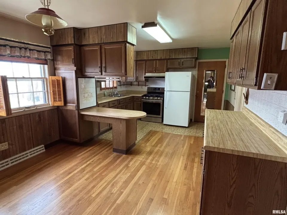A standout feature is the spacious heated garage in the backyard, complete with its own driveway and room for up to four vehicles—ideal for car enthusiasts, hobbyists, or extra storage. The main home includes an attached one-car garage with a dedicated storage room and additional closet space, plus a convenient 3-season porch just off the garage. Double doors from the garage provide easy access for moving larger items into the home or basement. Inside, the kitchen features mostly hardwood flooring with a practical vinyl work area. The home is equipped with a furnace (2009) that includes a humidifier, along with two sump pumps for added peace of mind. Appliances are believed to be under 10 years old. This home is being sold as-is, offering the perfect canvas for buyers ready to bring their vision and updates. Inspections are welcome prior to submitting an offer. Property being sold in "AS IS" condition. Square footage is approximate and should be independently verified by buyers. Don’t miss this chance to invest in a property with great bones, unique features, and plenty of upside!
