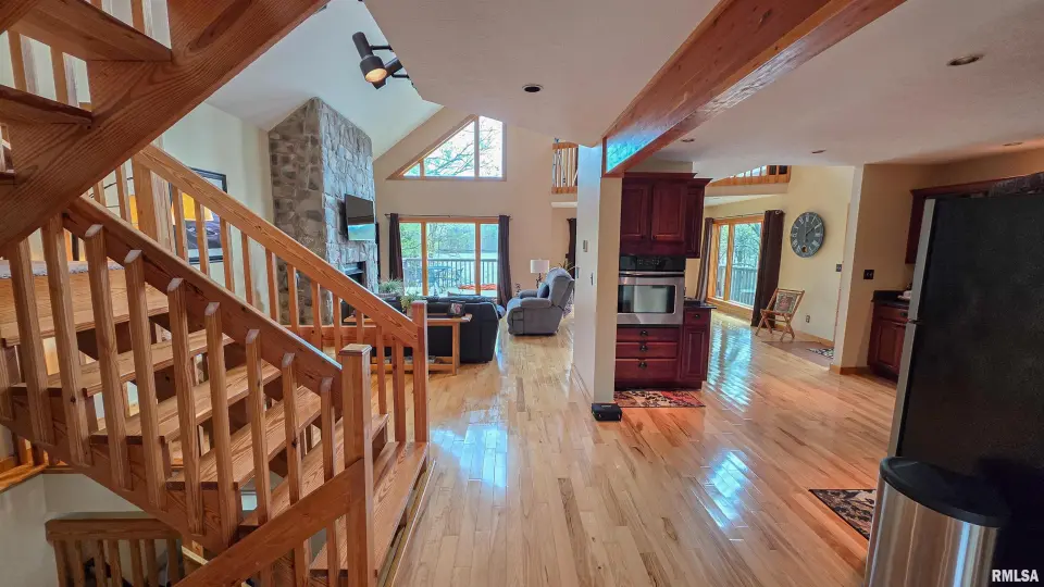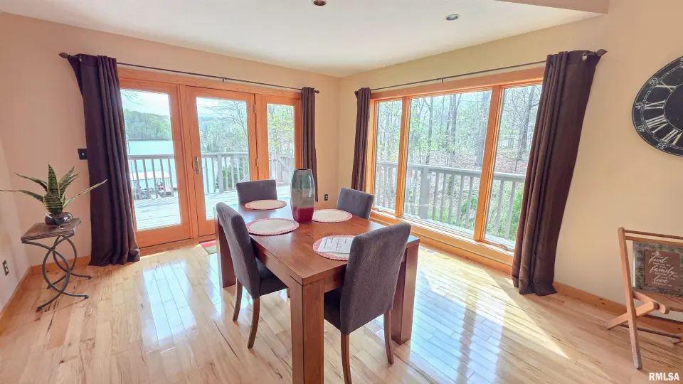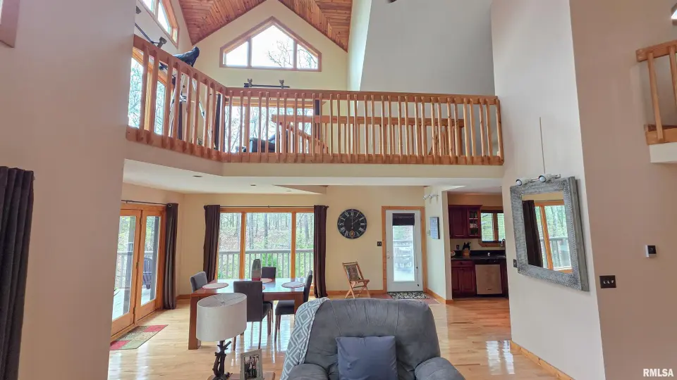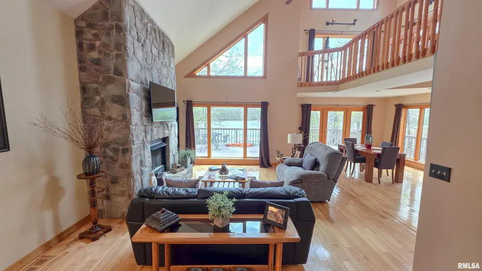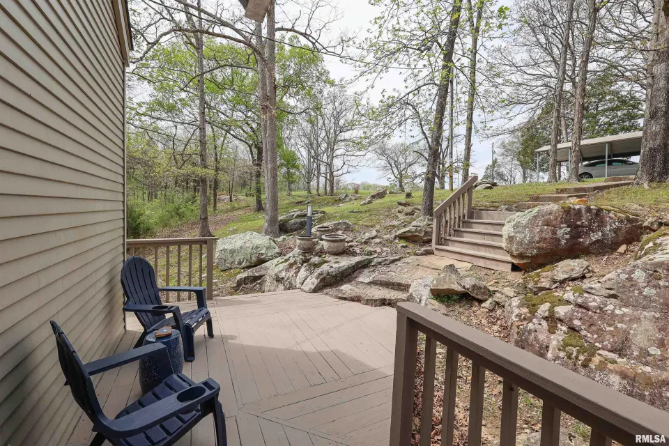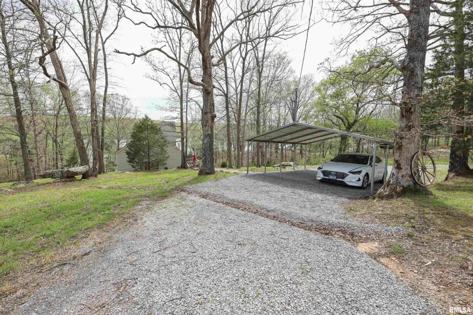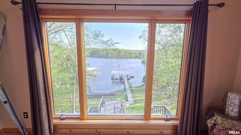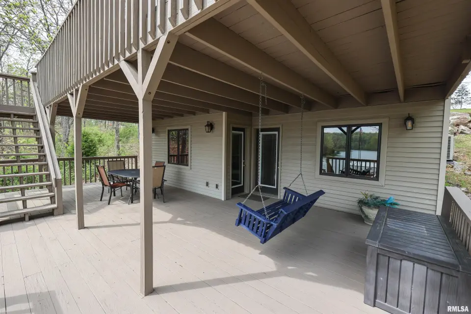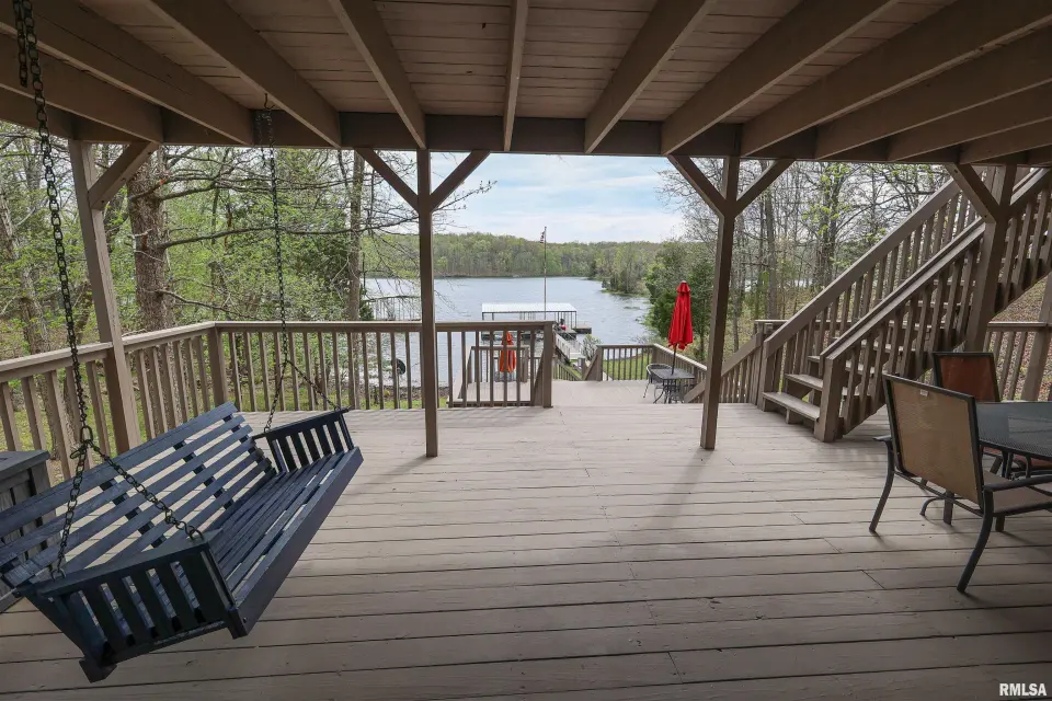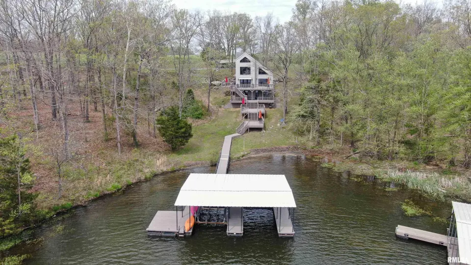 Tucked away in a quiet cove, the property features a gentle slope to the water and a private walkway leading to a covered two-slip dock with lift. Ideal for boating, fishing, or enjoying lake life. Take in stunning views of the Shawnee National Forest from the wraparound deck or unwind on the covered patio. Expansive decking and large windows bring in natural light and showcase serene water and wooded views, creating a seamless connection to the outdoors. Whether you’re looking for a full-time residence, weekend getaway, or investment opportunity, this home offers the perfect blend of seclusion, scenery, and ultimate waterfront living.