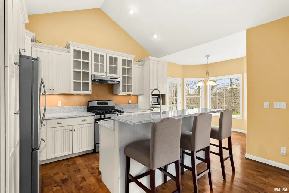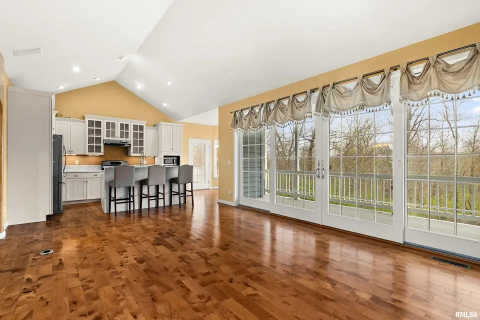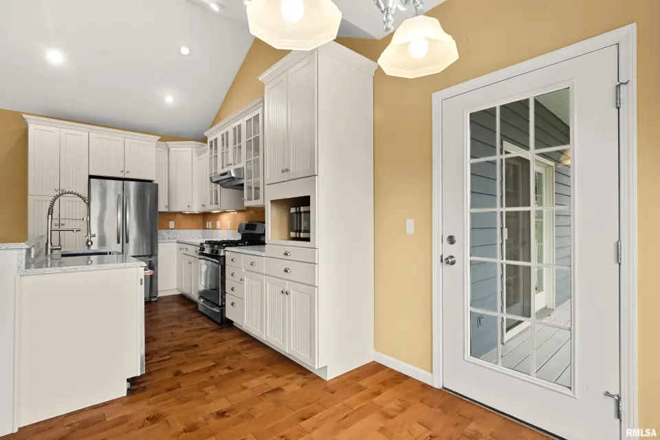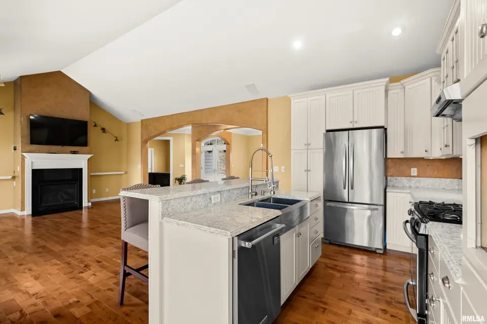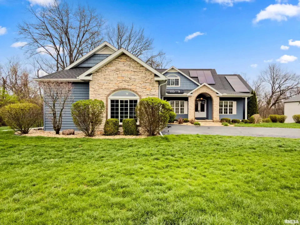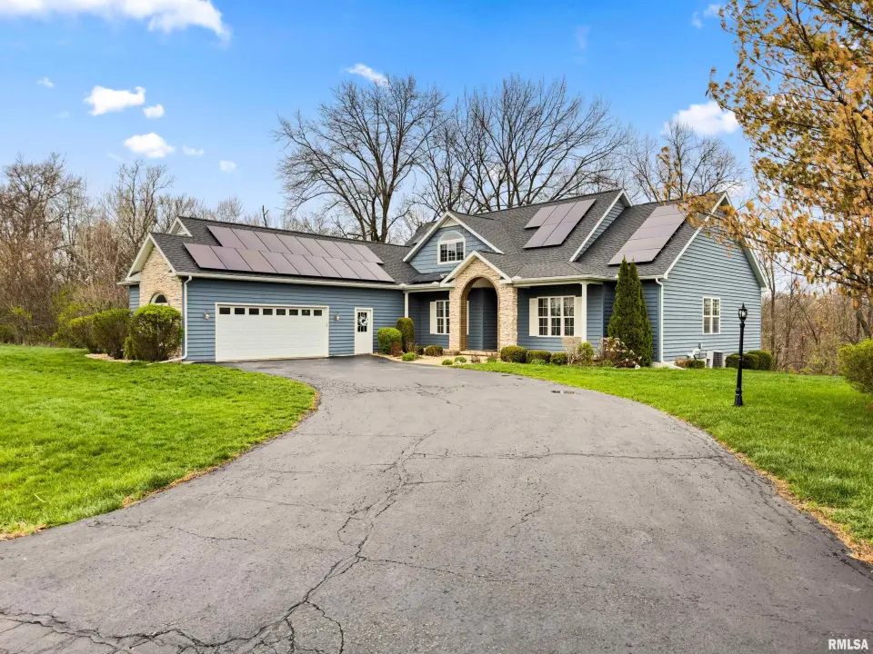 The great room is designed for both comfort & style, featuring vaulted ceilings, rich wood flooring, & a cozy gas log fireplace—perfect for relaxing or entertaining. The kitchen offers quartz counters, a breakfast bar, newer appliances, & seamlessly flows into the informal dining area & out to the expansive deck, ideal for alfresco dining & enjoying the peaceful surroundings. The spacious primary suite is a true retreat, complete with a tray ceiling, large en suite bath, & private deck access—perfect for morning coffee or quiet evenings. Convenience meets function with main floor laundry, while the fully finished walkout basement provides incredible additional living space. Featuring a second kitchen, exercise room, oversized family room with patio access, 2 additional bedrooms, & a full bath, this lower level is ideal for guests, entertaining, or multi-generational living. Plus, a large storage area offers plenty of room for all your needs. Additional highlights include a 3 car garage, fully owned solar panels for energy efficiency & a newer roof (2023). This home truly has it all—space, privacy, and thoughtful design.