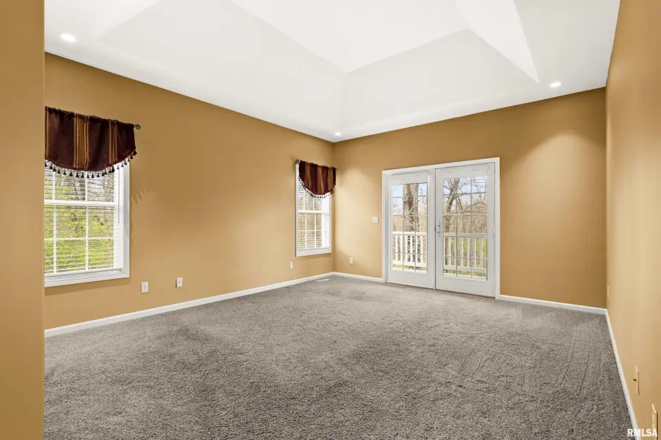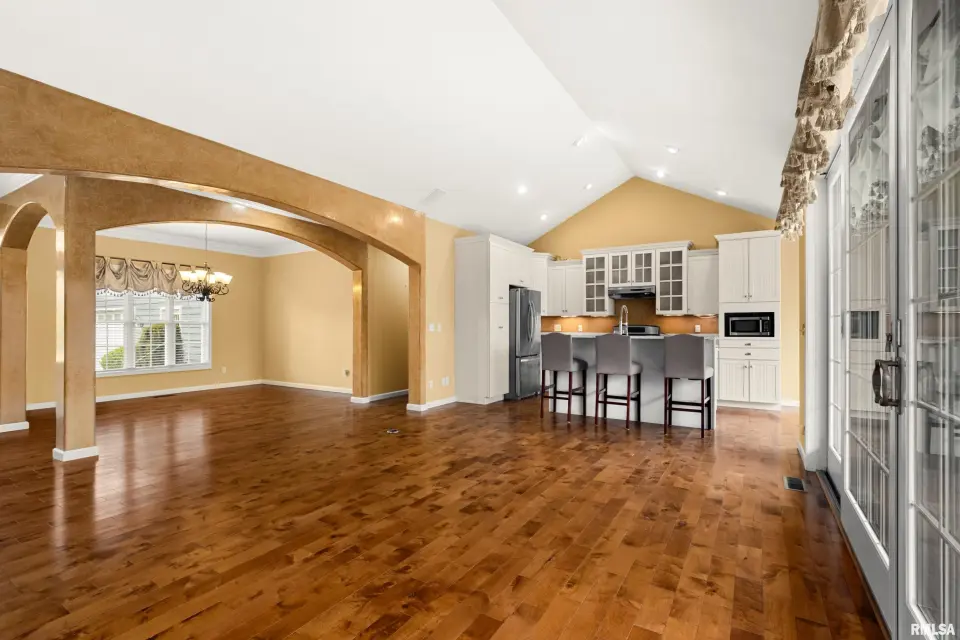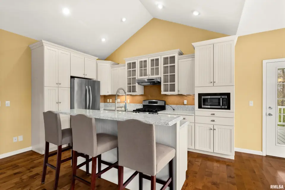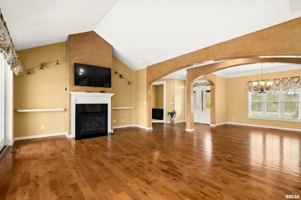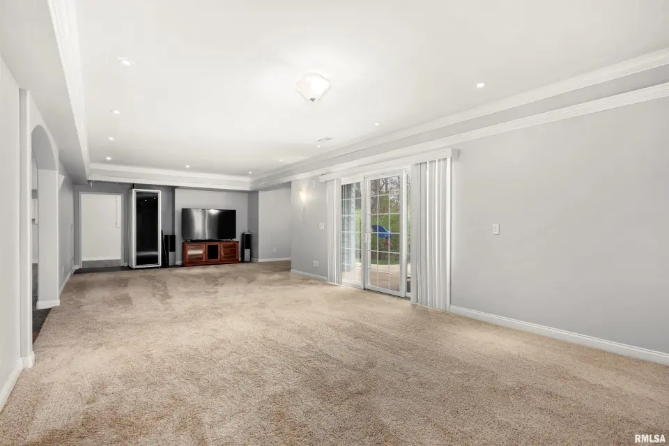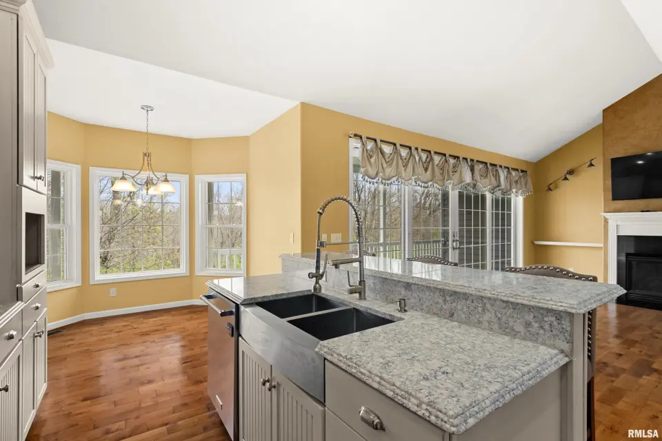 The great room is designed for both comfort & style, featuring vaulted ceilings, rich wood flooring, & a cozy gas log fireplace—perfect for relaxing or entertaining. The kitchen offers quartz counters, a breakfast bar, newer appliances, & seamlessly flows into the informal dining area & out to the expansive deck, ideal for alfresco dining & enjoying the peaceful surroundings. The spacious primary suite is a true retreat, complete with a tray ceiling, large en suite bath, & private deck access—perfect for morning coffee or quiet evenings. Convenience meets function with main floor laundry, while the fully finished walkout basement provides incredible additional living space. Featuring a second kitchen, exercise room, oversized family room with patio access, 2 additional bedrooms, & a full bath, this lower level is ideal for guests, entertaining, or multi-generational living. Plus, a large storage area offers plenty of room for all your needs. Additional highlights include a 3 car garage, fully owned solar panels for energy efficiency & a newer roof (2023). This home truly has it all—space, privacy, and thoughtful design.