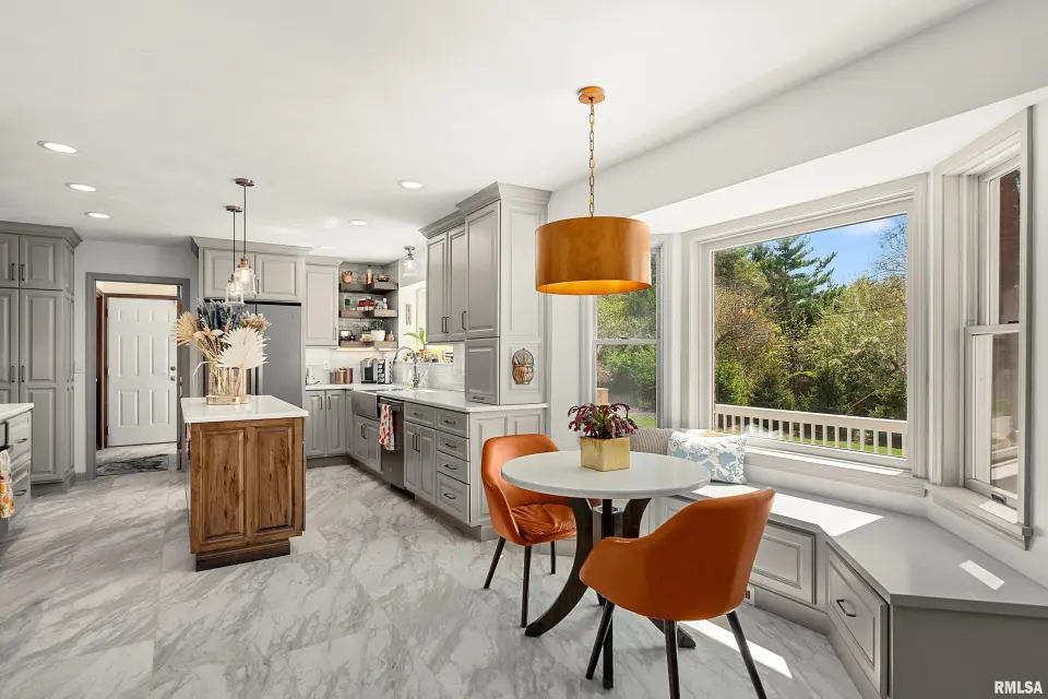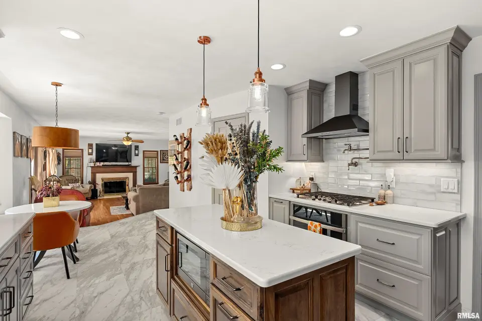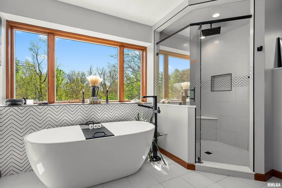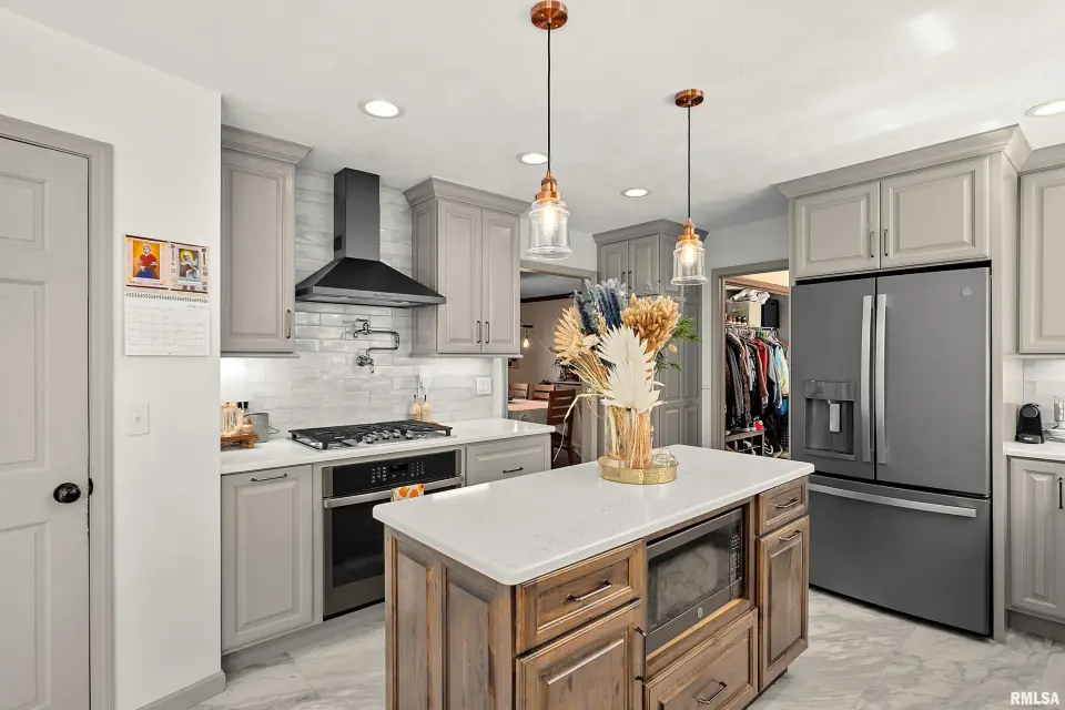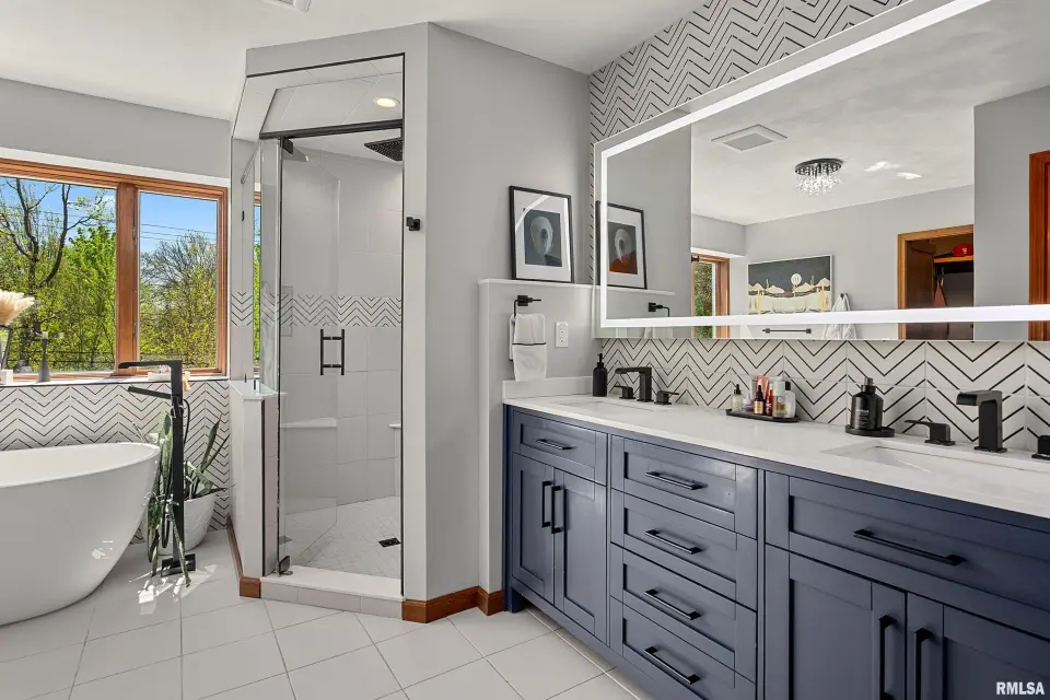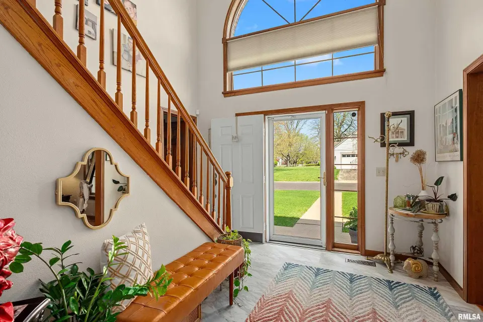 Offering over 4,600 square feet of living space. Step inside to a grand entryway that creates an impressive first impression. The beautifully remodeled kitchen has Rich Murray custom cabinetry, quartz countertops, and GE Profile stainless steel appliances. The main level also includes a dedicated office with custom cabinetry by Dan Heinz Remodeling. Upstairs, retreat to the fully remodeled primary suite, complete with a spa-like bath featuring a freestanding tub, walk-in shower, double vanity, and a custom closet cabinetry by Dan Heinz. The second level also offers an additional oversized primary suite, providing flexibility for guests. The finished basement offers abundant space ideal for a home theater, gym, or recreation area. Enjoy the beautifully updated exterior with backyard tree line landscaping (2024), front border landscaping (2023), and an underground gutter system (2023), along with a Rainbird irrigation system. Additional upgrades include a new sump pump (2025) and new garage doors and openers (2020) by Peoria Garage Door Service. Relax outdoors with a hot tub on the patio and a freshly painted deck, perfect for entertaining. Just a short walk to Mt. Hawley Country Club where you can play 18 holes of golf or take swim in the pool.