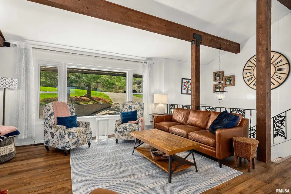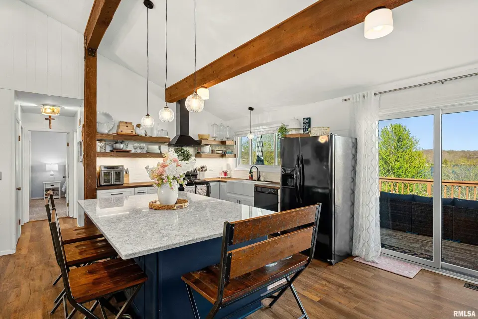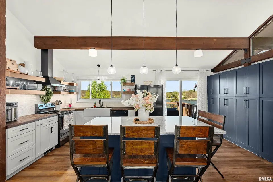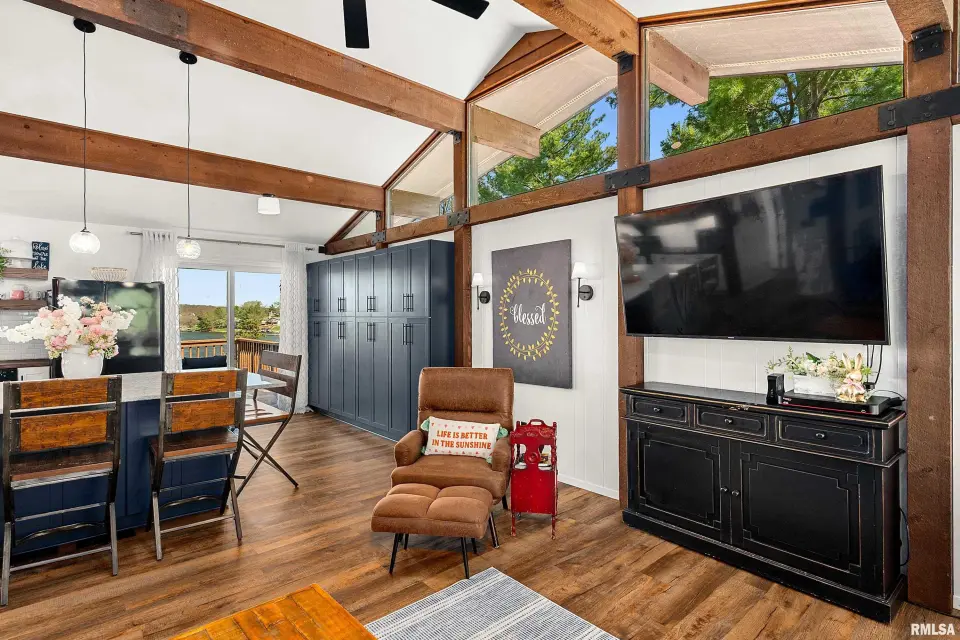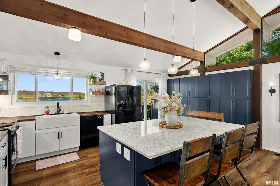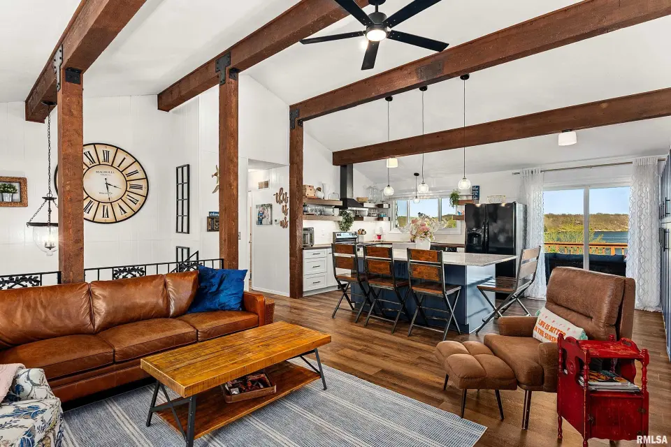 Enjoy breathtaking scenery year-round and front-row seats to the July 4th fireworks right from your own dock. This beautifully updated split foyer home features vaulted ceilings, original timber frame beams, and abundant natural light that perfectly frames the water from inside. The open-concept layout highlights a fully renovated kitchen with a large center island, quartz countertops, tile backsplash, bar seating, and ample cabinet space. With 5 bedrooms and 2 updated bathrooms, there’s plenty of room to relax and entertain. The primary bedroom offers private deck access with stunning lake views. The main bathroom features a walk-in shower, lighted mirror, updated flooring, and oversized vanity. Step outside to enjoy easy access to the lake and an incredible dock setup complete with a diving board, gazebo, bar area, and motorized boat lift. A bonus storage room provides space for all your lake toys. Additional updates include a new furnace and A/C (April 2023), newer water heater, NEW retaining wall, and an oversized 2-car attached garage. A rare opportunity to own a move-in ready home with unmatched views and true lake and resort lifestyle, complete with a pristine 18 hole golf course, clubhouse w/ fine dining restaurant, general store and gas station and close to many surrounding metro areas! Come take a look today!