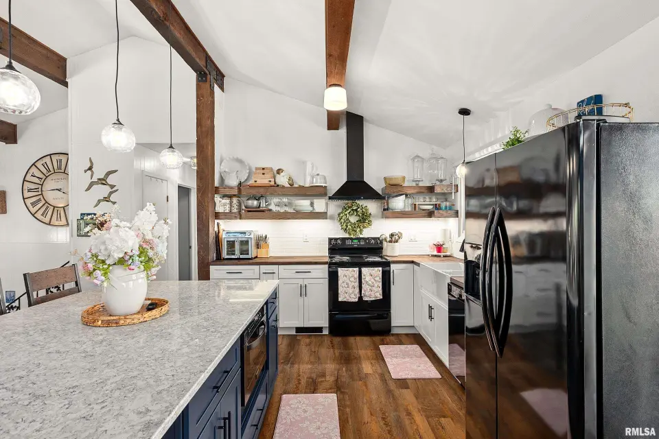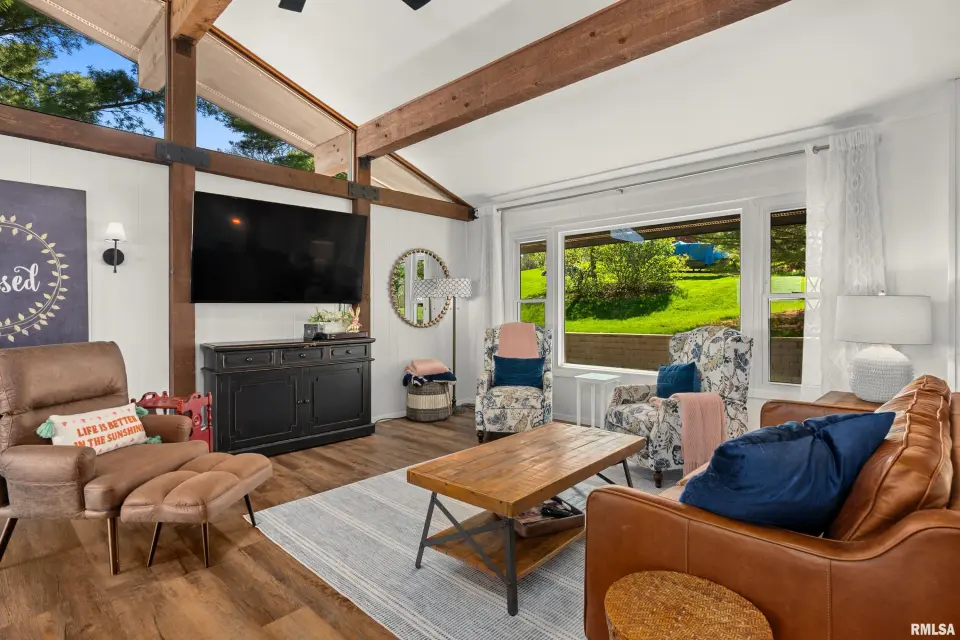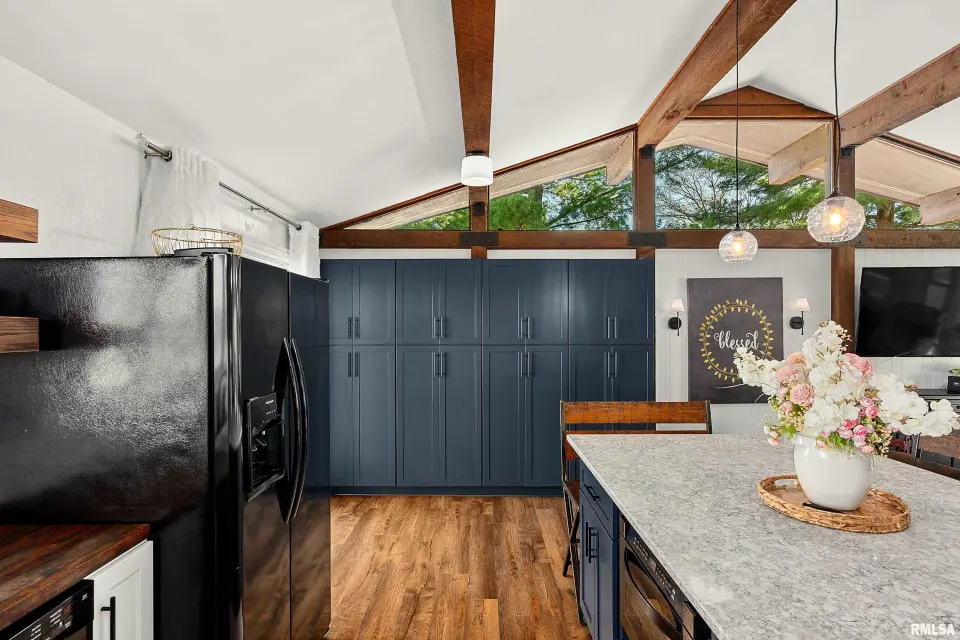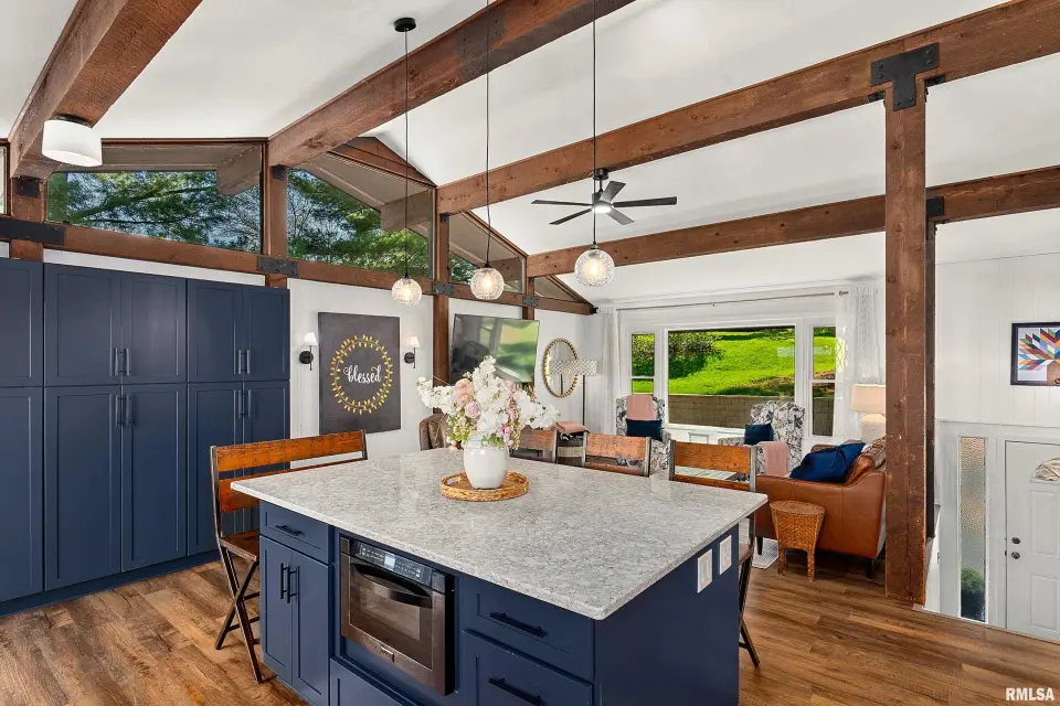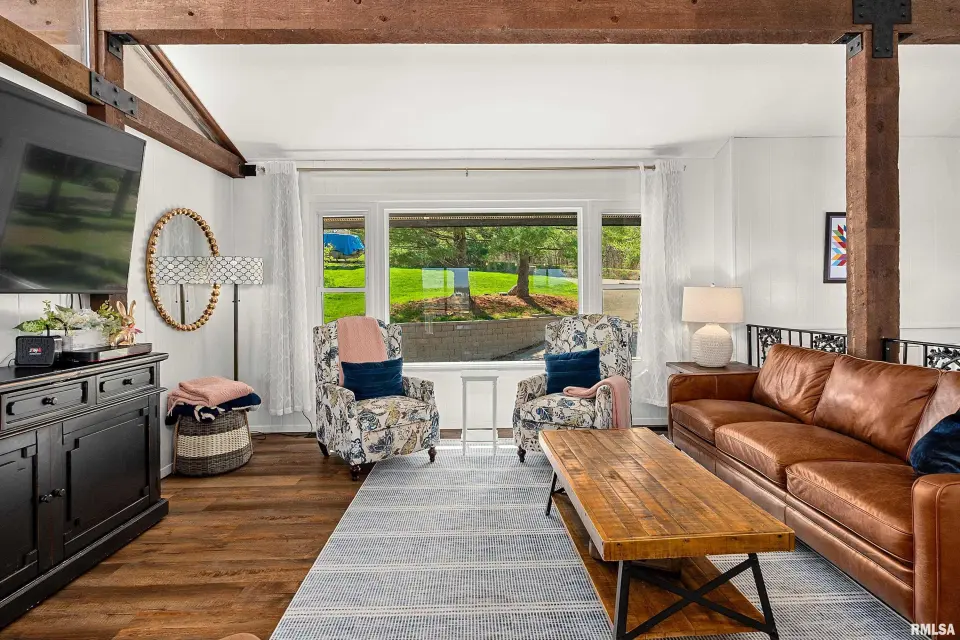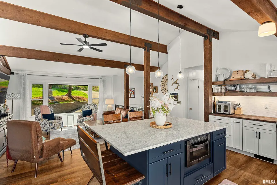 Enjoy breathtaking scenery year-round and front-row seats to the July 4th fireworks right from your own dock. This beautifully updated split foyer home features vaulted ceilings, original timber frame beams, and abundant natural light that perfectly frames the water from inside. The open-concept layout highlights a fully renovated kitchen with a large center island, quartz countertops, tile backsplash, bar seating, and ample cabinet space. With 5 bedrooms and 2 updated bathrooms, there’s plenty of room to relax and entertain. The primary bedroom offers private deck access with stunning lake views. The main bathroom features a walk-in shower, lighted mirror, updated flooring, and oversized vanity. Step outside to enjoy easy access to the lake and an incredible dock setup complete with a diving board, gazebo, bar area, and motorized boat lift. A bonus storage room provides space for all your lake toys. Additional updates include a new furnace and A/C (April 2023), newer water heater, NEW retaining wall, and an oversized 2-car attached garage. A rare opportunity to own a move-in ready home with unmatched views and true lake and resort lifestyle, complete with a pristine 18 hole golf course, clubhouse w/ fine dining restaurant, general store and gas station and close to many surrounding metro areas! Come take a look today!
