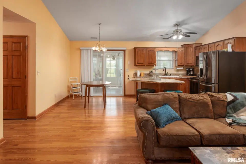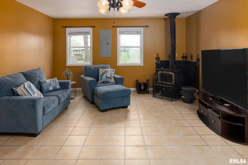 Sitting on almost 1.50 acres, this lovely home is located just far enough out to still be convenient to services and shopping. If you need lots of storage then you will love this HUGE 50x60 pole barn. It features 2 lean-to's, an upper level with cat walk, concrete floor, power and rough plumbing. Maintenance free metal roof, vinyl siding. The home is totally accessible with wide hall & doorways, easy access bathtub and an automatic back door that opens/closes with just the touch of a button. The kitchen has newer appliances and a moveable island that you can place where you want. The family room features a wood-burning stove that will keep you toasty this winter. The sunroom features a mini split HVAC system. The heat pump system new in 2020 w/ new compressor in 2025. Fenced backyard with dedicated garden space. Here's your chance to live the country life!