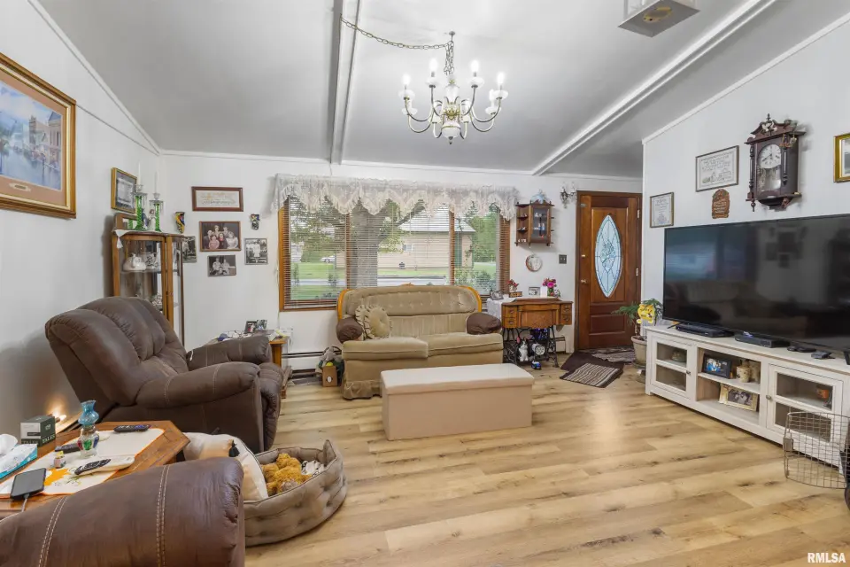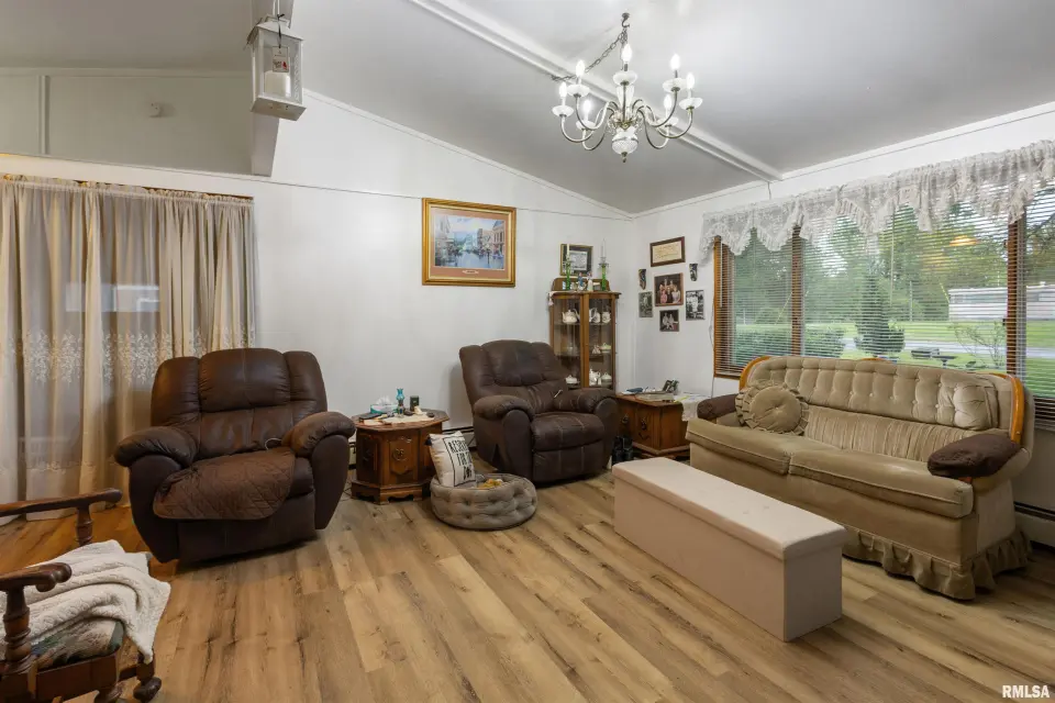 This 3-bedroom, 1 bath residence features a spacious great room that serves as the heart of the home, complete with a cozy gas log fireplace, perfect for relaxing or entertaining. The main living area has been updated with new vinyl plank flooring, providing both durability and modern appeal. Major mechanical updates include an HVAC system installed in 2023, and a water heater replaced in 2024, giving peace of mind to the next owner. Outside, you will find a 2-car garage and an additional shed, offering plenty of storage and workspace options. The front yard features a charming flower garden that would be ideal for the right person to enjoy and make their own. This property has been thoughtfully cared for and is move in ready, making it an excellent opportunity for buyers seeking a well-kept home.