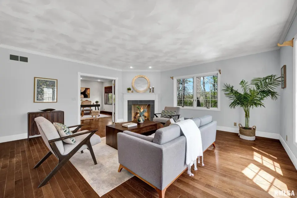 Featuring 3 bedrooms and 3.5 bathrooms, this one owner home exudes exceptional build quality and has a great floor plan. The grand, 2-story foyer is flanked by the formal dining and living rooms, which feature oversized windows full of natural light. The showpiece of the main level is the gorgeous great room, with wood-burning fireplace, 12 foot ceilings, new carpet, peaceful wooded views, and French door access to the oversized patio. The balance of the main floor features a cozy office with fireplace and built-ins, fully-applianced kitchen with pantry, laundry area, and access to the garage. Moving upstairs, you'll find 3 generously sized bedrooms, and 2 full bathrooms, including the massive primary suite with dual walk-in closets and large attached bathroom with endless potential. The basement offers rec space, additional den/office, full bathroom, and ample storage. Roof 2019, HVAC 2023, water heater 2025, Microwave 2025, Range 2025. If you have been waiting for a timeless Thousand Oaks manor on a serene wooded lot, do not let this opportunity pass you by. Schedule your private showing today!