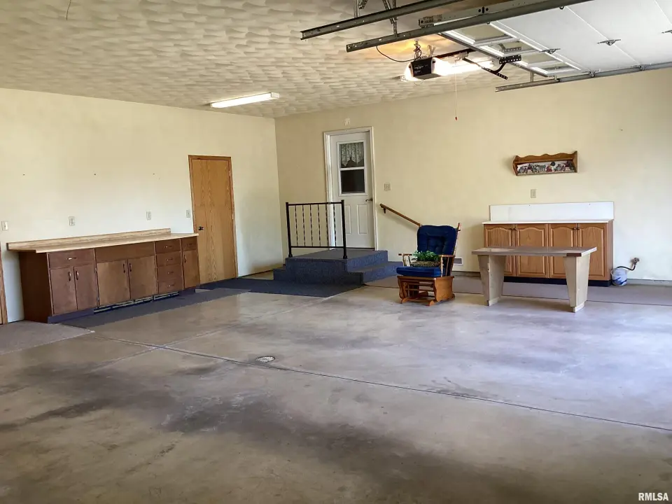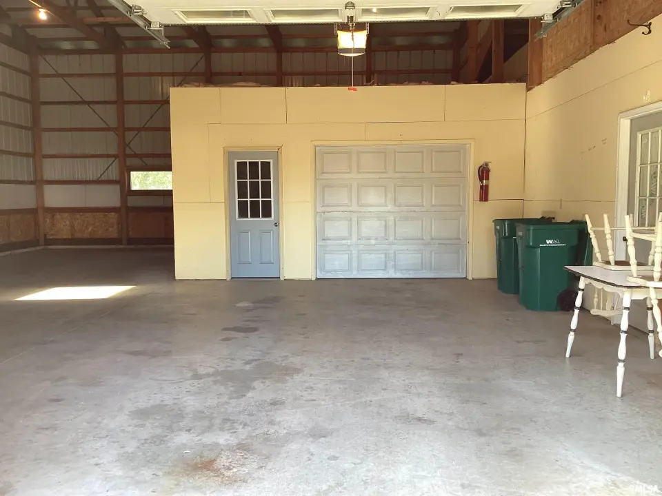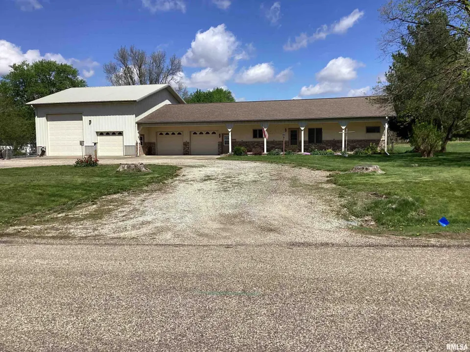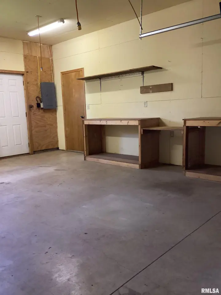 Over 3,100 finished square feet. If you need garage space, RV storage AND a workshop with 220 then this is the one for you. 45x36 garage with 14ft door will easily store your RV. Nice workshop in there with additional storage room. Connected to that there is a 30x36 garage plastered and insulated with two storage rooms in the back. Large open kitchen living room concept with breakfast bar. Main floor laundry with laundry sink and half bath. Good size master bedroom with walk in closet. Built with steel beams under the sub flooring. Full finished basement includes kitchen area with stove, sink and refrigerator. Full bath with shower, stool and urinal. Additional bedrooms could be added. All situated on a nice lot with extra lot included totaling just over 3/4 of an acre. Small park close by. This unique well insulated home is a must see. Large covered front porch. Small shed and deck in the back. All appliances including basement kitchen appliances stay (not warranted). Sump pump is new. Water heater 2019. Basement lighting new. 400amp service total.