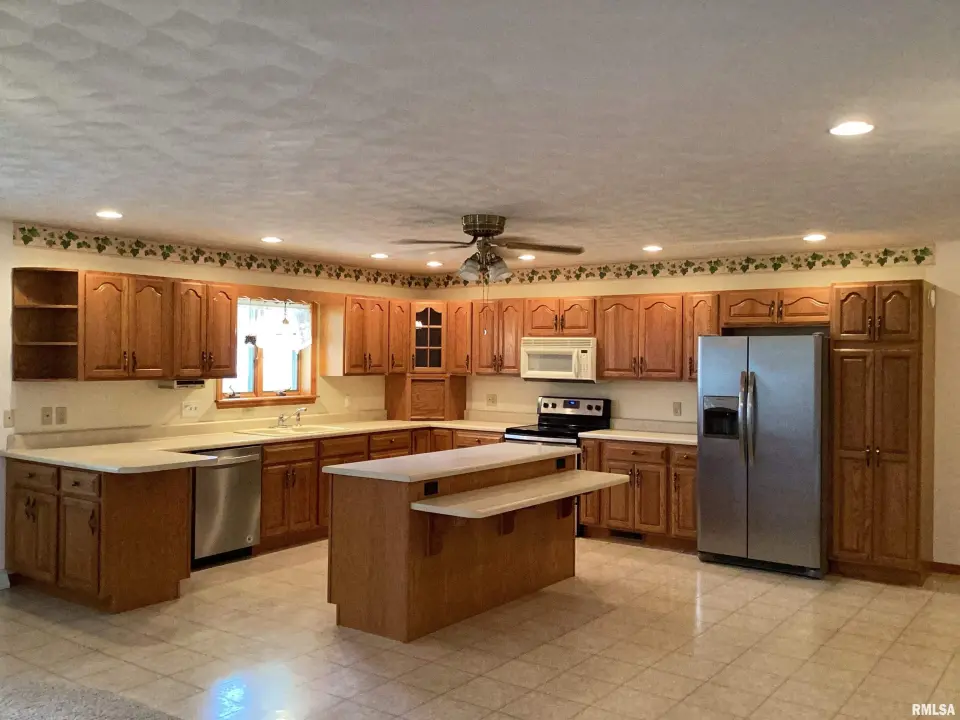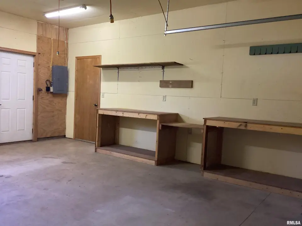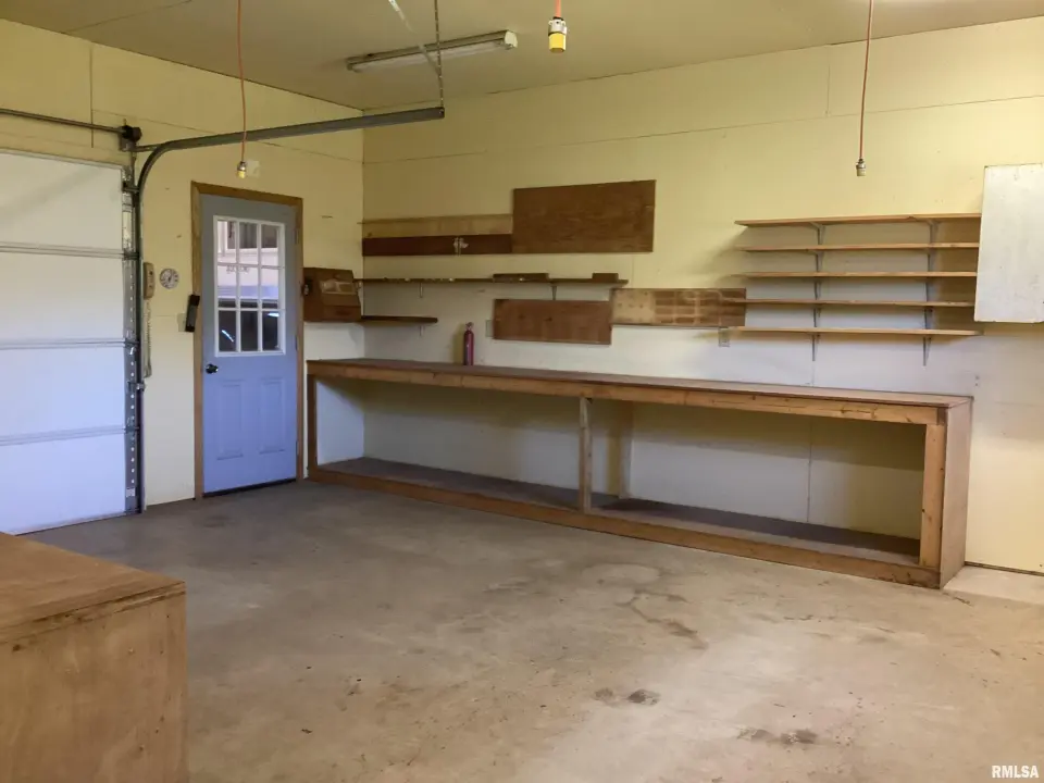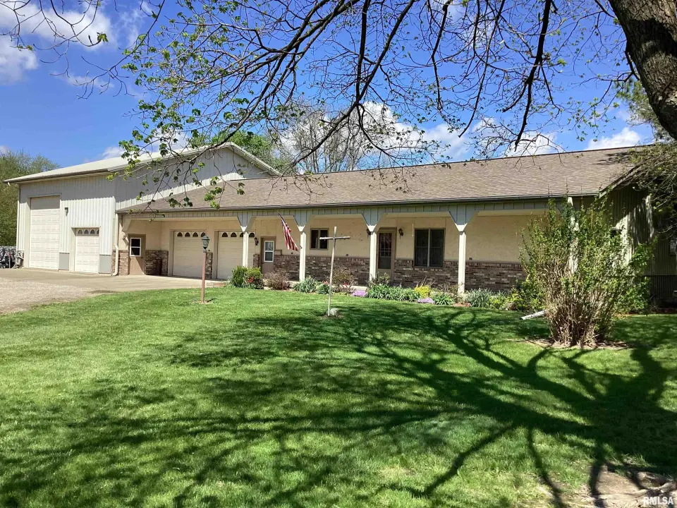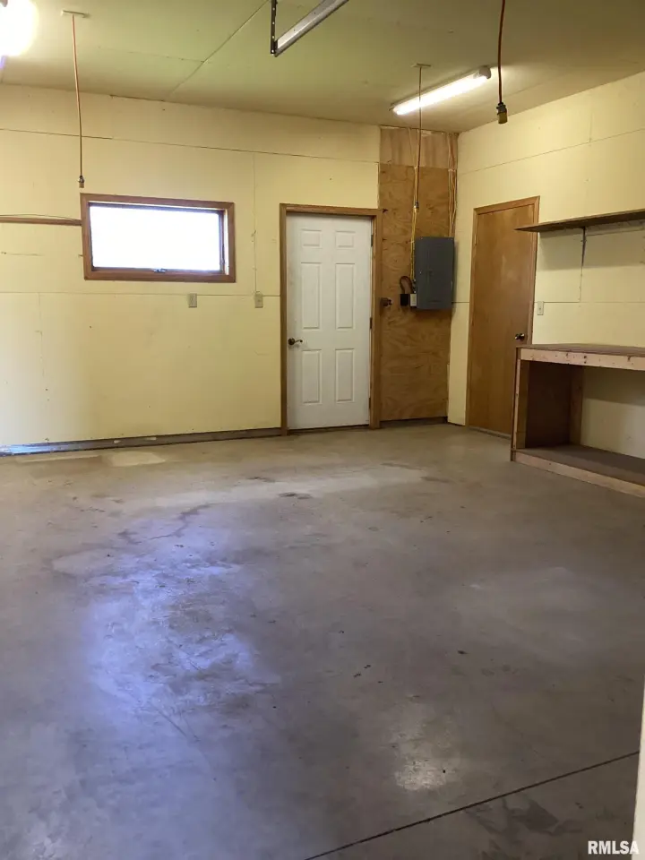 Over 3,100 finished square feet. If you need garage space, RV storage AND a workshop with 220 then this is the one for you. 45x36 garage with 14ft door will easily store your RV. Nice workshop in there with additional storage room. Connected to that there is a 30x36 garage plastered and insulated with two storage rooms in the back. Large open kitchen living room concept with breakfast bar. Main floor laundry with laundry sink and half bath. Good size master bedroom with walk in closet. Built with steel beams under the sub flooring. Full finished basement includes kitchen area with stove, sink and refrigerator. Full bath with shower, stool and urinal. Additional bedrooms could be added. All situated on a nice lot with extra lot included totaling just over 3/4 of an acre. Small park close by. This unique well insulated home is a must see. Large covered front porch. Small shed and deck in the back. All appliances including basement kitchen appliances stay (not warranted). Sump pump is new. Water heater 2019. Basement lighting new. 400amp service total.