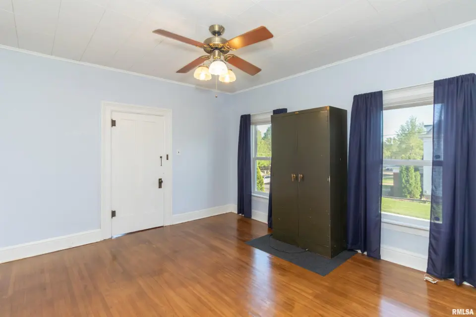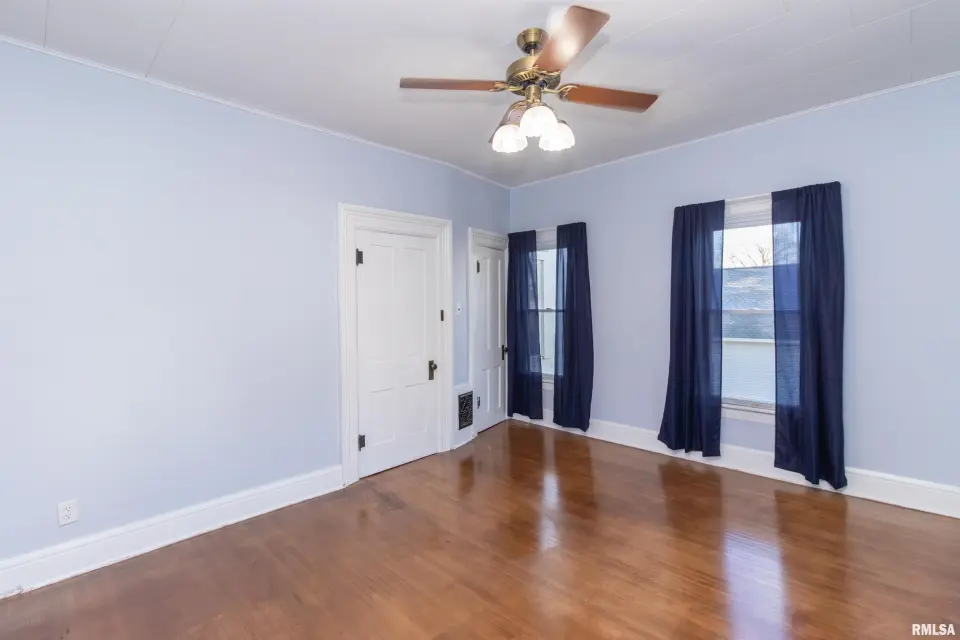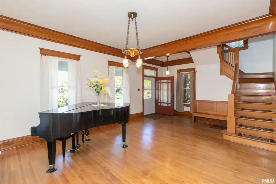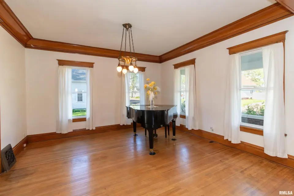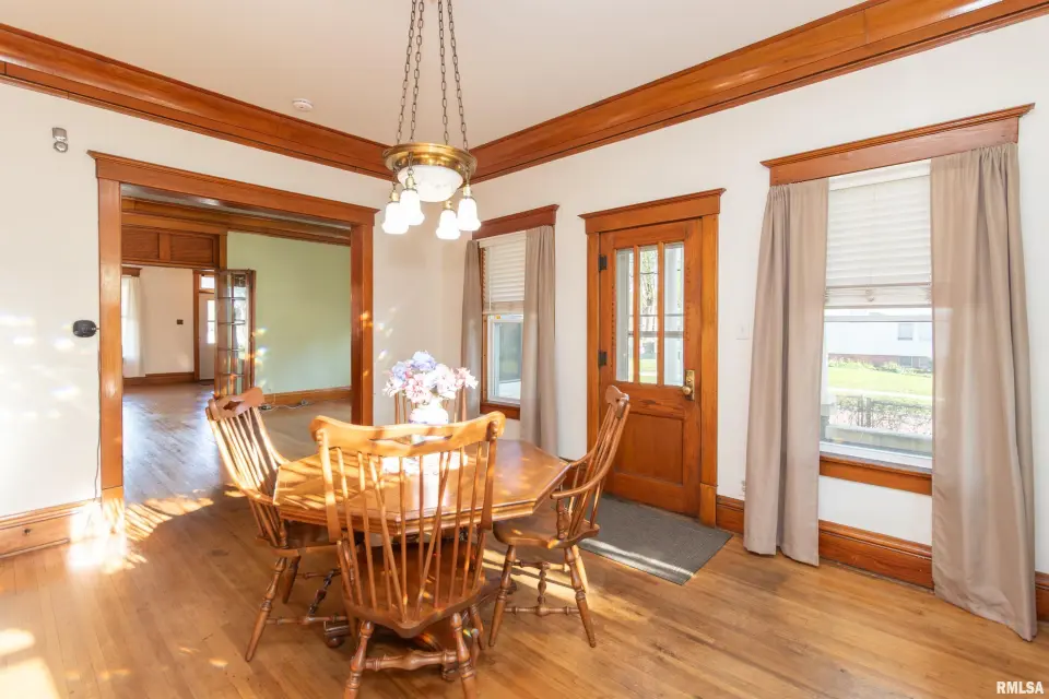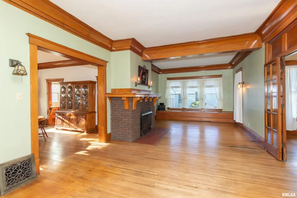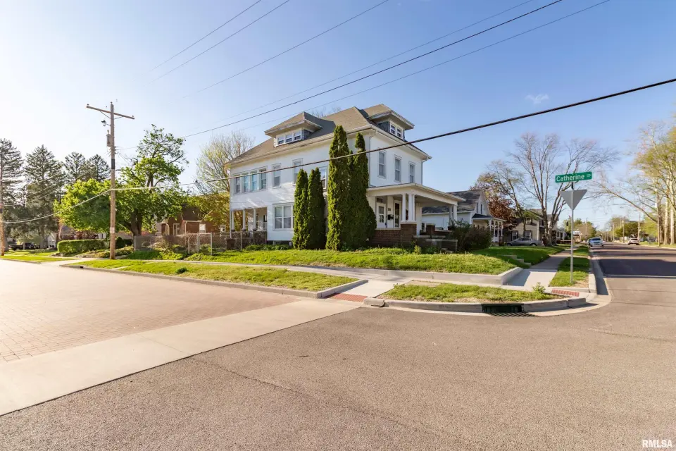Rich in character and craftsmanship, this home showcases all the original woodwork, beautiful hardwood floors, elegant glass French doors, intricate crown molding, and a built-in window seat that perfectly captures its historic appeal. 4 Bedroom, 1.5 bath home the main floor blends old-world charm with modern convenience, featuring an updated kitchen and main floor laundry. A grand staircase makes a striking first impression and leads to the second level, where you’ll find spacious bedrooms filled with natural light. The full bathroom is a true nod to the home’s history, complete with a classic clawfoot tub—perfect for relaxing at the end of the day. If you’ve been looking for a home with character, warmth, and a prime location, this one is a must-see! Other updates include Generator, Vinyl Windows-23, HVAC-21,Roof-2008, Blown in Insulation and Incapacitation of Crawl Space-19