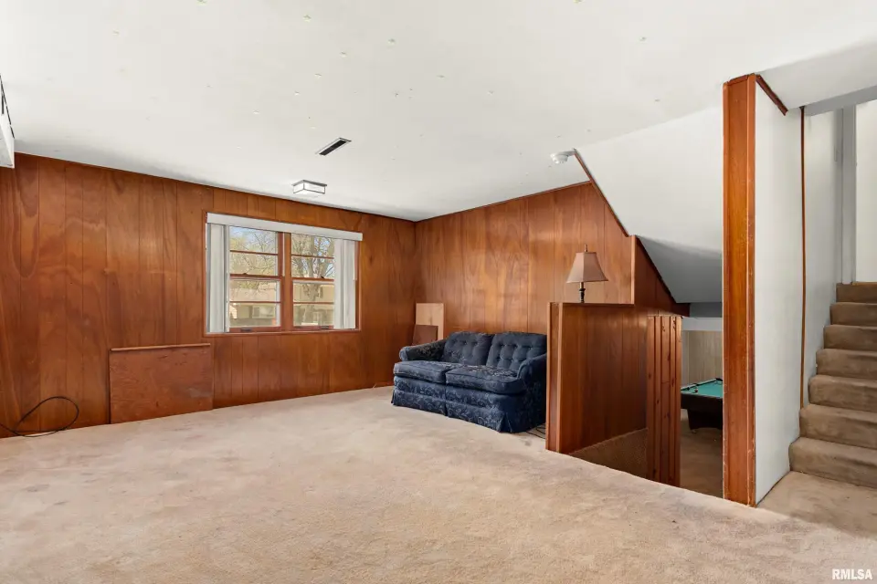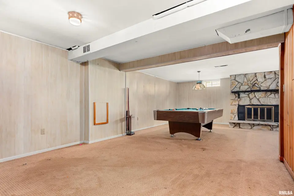 The main floor features a comfortable living room, a dedicated dining room, and an eat-in kitchen with access to a deck overlooking the backyard. Upstairs includes three generously sized bedrooms and a full bath. The lower level offers an additional bedroom, a family room, and convenient garage access. The basement provides even more space with a fireplace, pool table, full bath, and an additional area that can be used to fit your needs. The backyard includes a patio and open outdoor space. Notable updates include roof (2017), water heater (2019), HVAC (2020), and paint and flooring (2026).