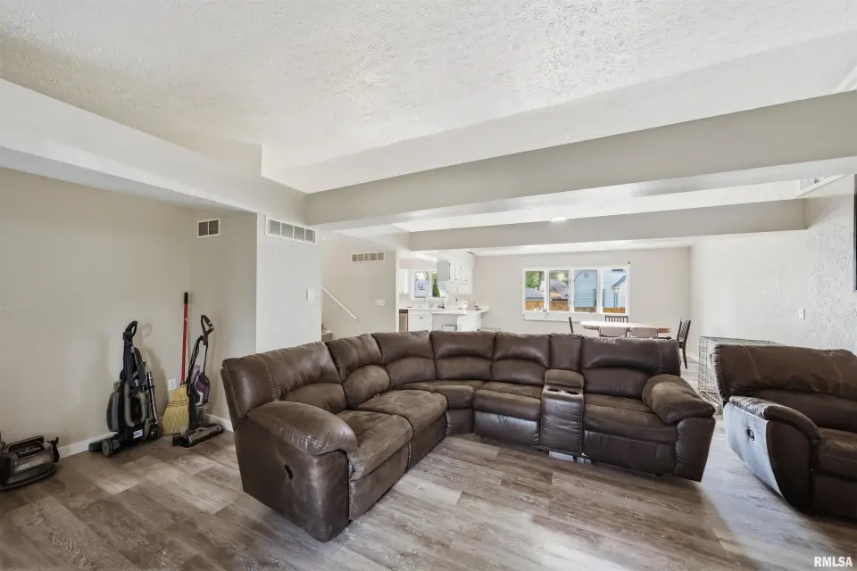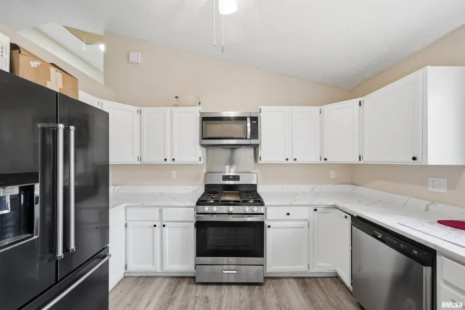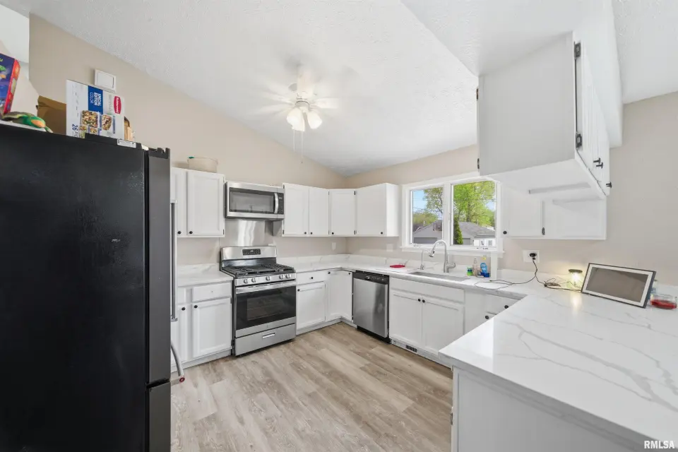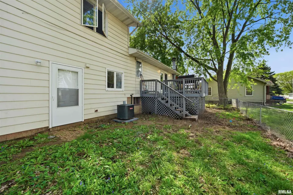 Updated kitchen with quartz counter tops, stainless steel appliances, and a breakfast bar. Generous size primary suite with double closets and full bathroom. You will love relaxing outdoors on the deck overlooking the fenced yard. New furnace and A/C 2024. Plenty of space for everyone both inside and out! Schedule your showing today.