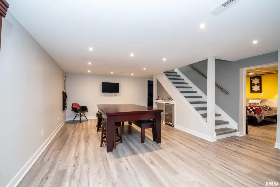 Every room has been thoughtfully renovated with intricate custom design and high-end finishes throughout. The main level offers over 1,700 square feet of beautifully finished living space, featuring an open-concept layout filled with abundant natural light. The completely renovated eat-in kitchen flows seamlessly into the informal dining area and spacious living room—ideal for both everyday living and entertaining! The main floor bedrooms are generously sized, with no expense spared on comfort and style. The newly finished full basement expands your living space with a fourth bedroom, a luxurious full bath, a media room, and a built-in bar—perfect for hosting or relaxing, and a wood working shop. Extensive updates provide peace of mind, including newer plumbing, electrical, a roof (2020), AC unit, custom blinds, quartz countertops, and custom cabinetry, new privacy fence, paint, dishwasher, tesla charger, and some new cabinetry. This move-in-ready home combines modern upgrades with an unbeatable location. Schedule your private showing today and experience everything this exceptional property has to offer.