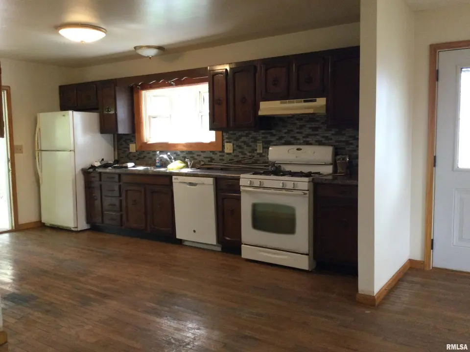 Lots of living space and bright light flowing in from replacement windows. New wood trim and doors adorn this home and help accent the flooring. Remodeled bathroom with double sink and walk in shower. The kitchen is open and boasts lots of cabinets and natural light. All of this sitting on a full basement with a half bath. There is also an attached carport and a 24x28 pole barn with a concrete floor and electricity. Conveniently located near 57 and only minutes from shopping, restaurants and more. Call today for your private viewing.