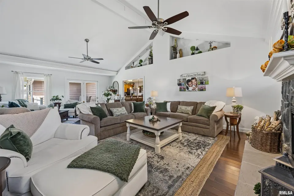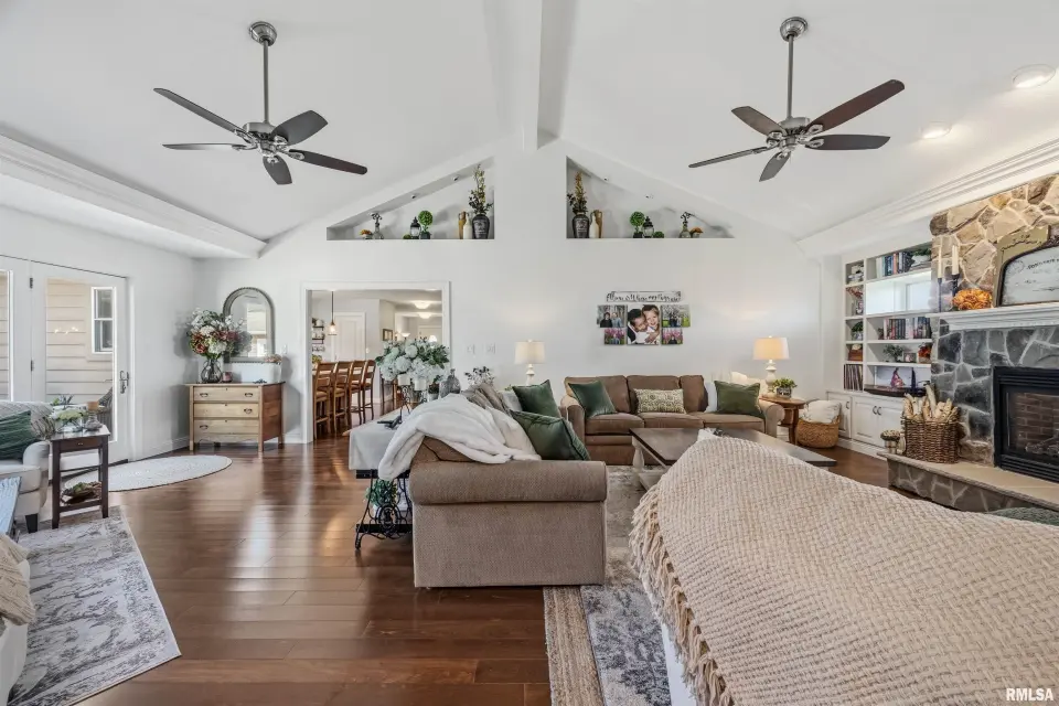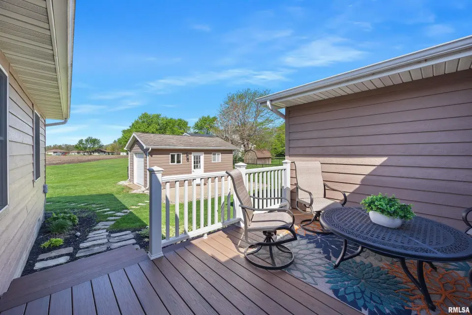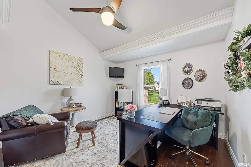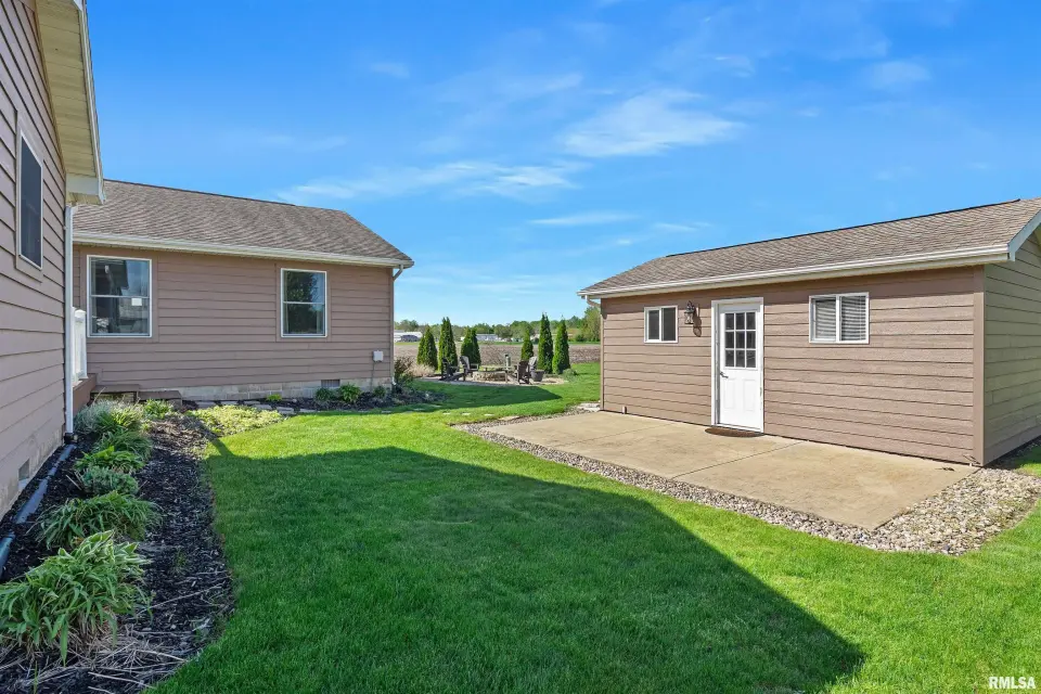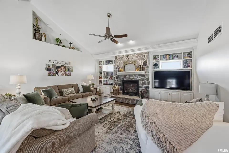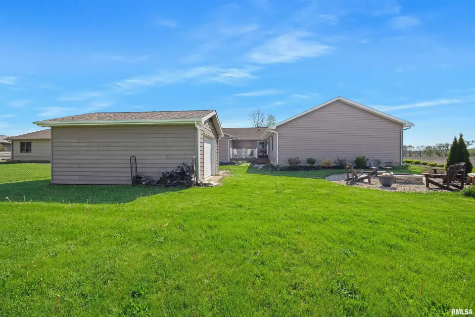 The reconfigured layout maximizes space and features a spacious primary ensuite with an organized walk-in closet and a spa-like bath complete with dual vanities, soaking tub, and walk-in shower. The inviting great room boasts a cathedral ceiling and a stone-front gas fireplace with custom built-ins, creating a warm and elegant gathering space. French doors lead to a composite deck overlooking a beautifully landscaped backyard with a cozy fire pit, patio, and storage shed. Additional highlights include vaulted ceilings in the fourth bedroom and office (which could easily serve as a fifth bedroom with the addition of a closet). A convenient mudroom with built-in shelving connects the garage to a bright, cheerful laundry room featuring a utility sink, ample counter space, cabinetry, and storage. Abundant storage is found throughout the home, including a walk-in pantry, eliminating the need for a basement. The spacious shed offers even more versatility with two separate rooms and an overhead utility door and a pull down attic in the attached garage. This stylish and well-designed ranch combines comfort, practicality, and modern updates—ready to welcome you home. Square footage is approximate and not warranted or guaranteed. Buyers are encourage to measure for their own satisfaction.