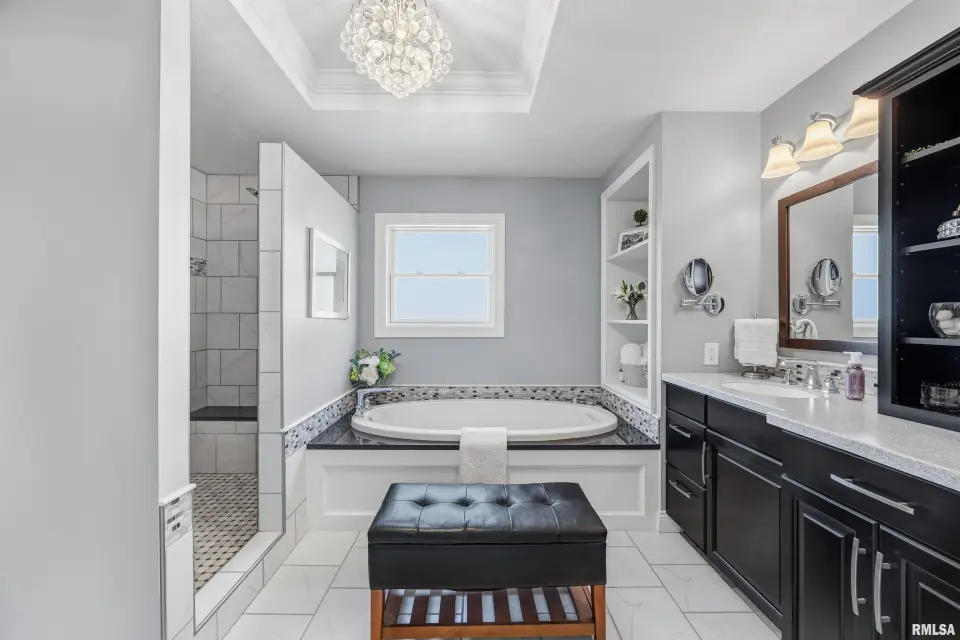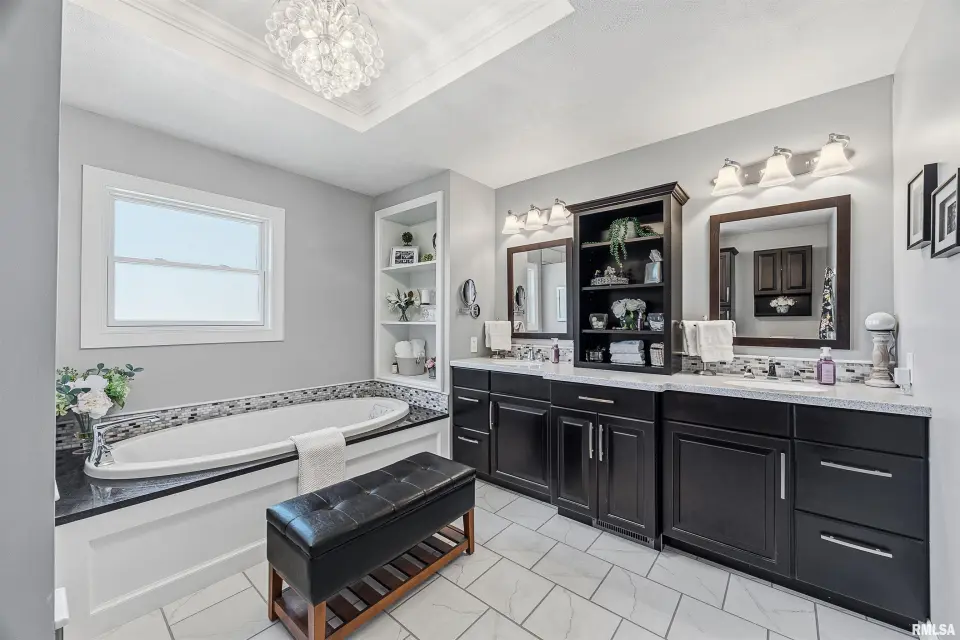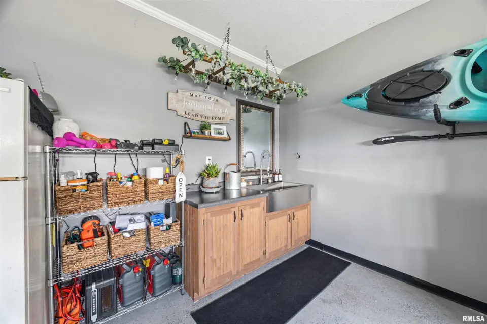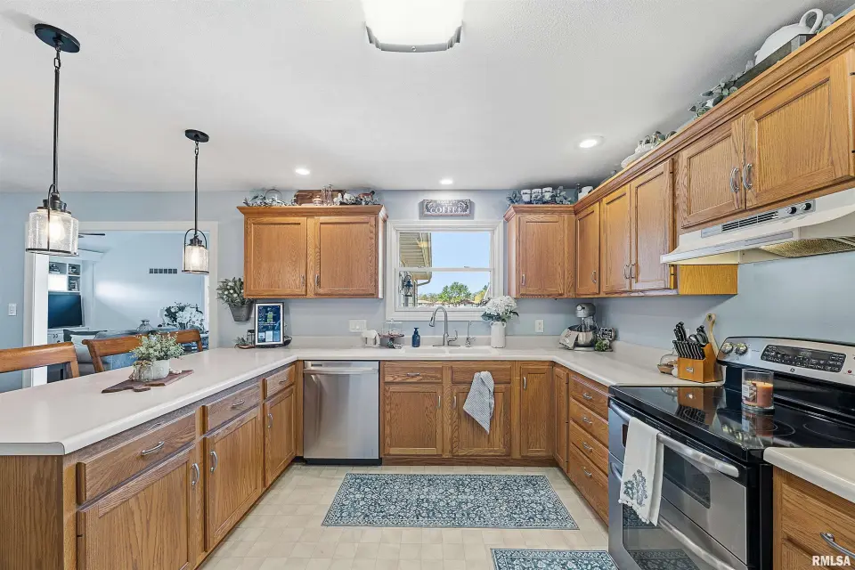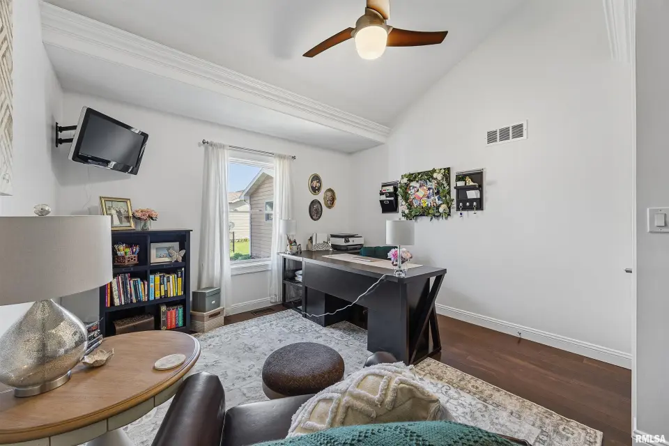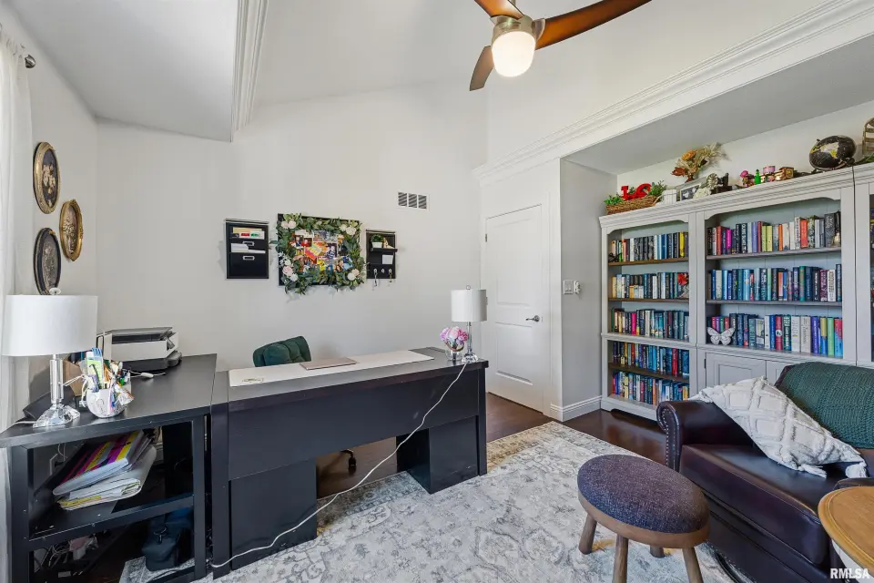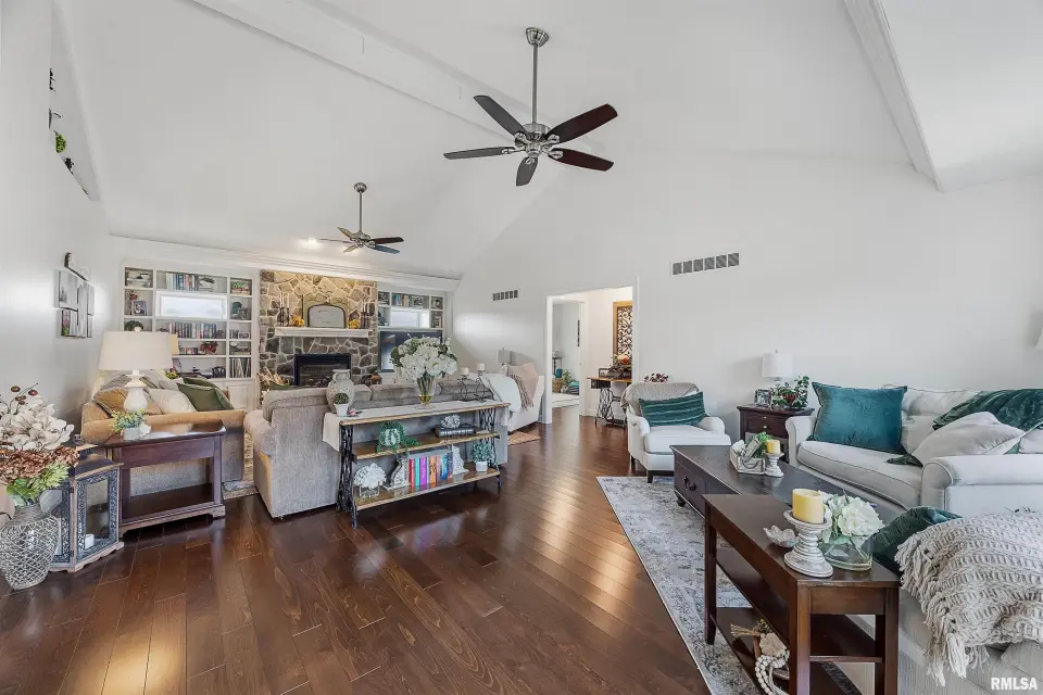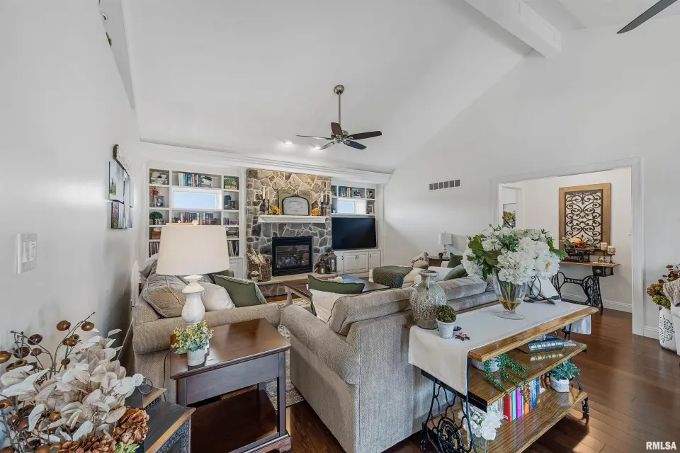 The reconfigured layout maximizes space and features a spacious primary ensuite with an organized walk-in closet and a spa-like bath complete with dual vanities, soaking tub, and walk-in shower. The inviting great room boasts a cathedral ceiling and a stone-front gas fireplace with custom built-ins, creating a warm and elegant gathering space. French doors lead to a composite deck overlooking a beautifully landscaped backyard with a cozy fire pit, patio, and storage shed. Additional highlights include vaulted ceilings in the fourth bedroom and office (which could easily serve as a fifth bedroom with the addition of a closet). A convenient mudroom with built-in shelving connects the garage to a bright, cheerful laundry room featuring a utility sink, ample counter space, cabinetry, and storage. Abundant storage is found throughout the home, including a walk-in pantry, eliminating the need for a basement. The spacious shed offers even more versatility with two separate rooms and an overhead utility door and a pull down attic in the attached garage. This stylish and well-designed ranch combines comfort, practicality, and modern updates—ready to welcome you home. Square footage is approximate and not warranted or guaranteed. Buyers are encourage to measure for their own satisfaction.