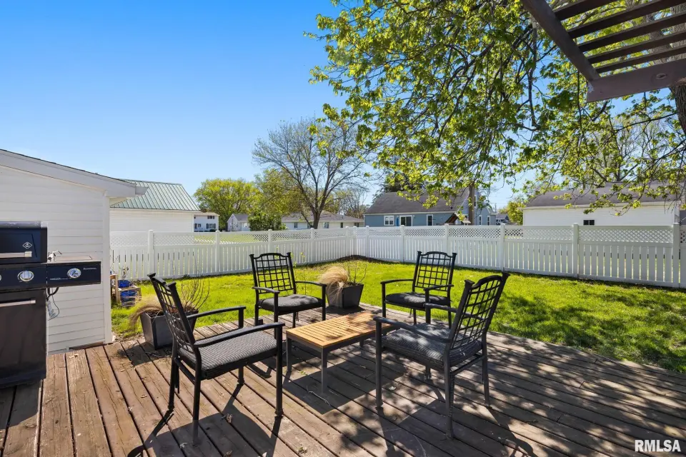 The living room offers plenty of space to relax and gather. Convenient main floor laundry adds to the home’s practicality. Major updates include new windows, siding, and roof for peace of mind. Step outside to enjoy the large deck and newly fenced yard, ideal for outdoor living. Complete with a 1.5 car garage, this home is move-in ready and full of value!