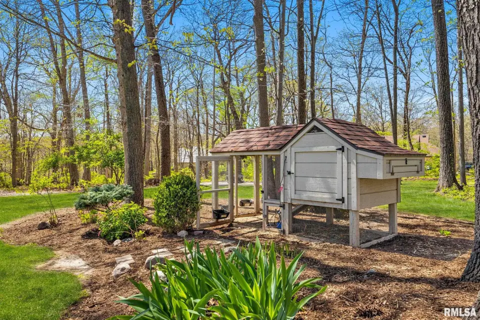 *COMING SOON 4/25** Set in the highly desirable, peaceful, park-like surroundings of Colony Point Subdivision, 12215 Wake Robin Way offers the kind of space and comfort that is hard to find. This custom home is beautifully maintained, thoughtfully updated, and positioned on a level 1-acre lot with mature trees. The 5-bedroom, 3.5-bath home is complemented by charming outdoor features, including raised garden beds, fruit trees, a paver patio, an outdoor firepit, and a custom chicken coop. Located outside the city limits, you will also enjoy a lower tax rate and the convenience of county services, including seasonal vacuum leaf collection. The neighborhood's quiet, wide streets are ideal for a morning stroll or an evening walk, and the community has a friendly, close-knit feel. Updates and remodels have been professionally completed with an emphasis on long-term quality. Notable improvements include: • Kitchen remodel '25: quartz countertops/backsplash, Cafe appliances, Amish soft-close cabinetry and butler's pantry w/ freezer • Main level hardwood and tile flooring '25 • Water filtration/RO '24 and instant hot/cold faucet • Tankless water heater '25 • Roof and steel siding plus gutters/guards '18 • Both A/C units and 1 furnace '15 • Spray foam insulation • Numerous replacement windows Just a short walk away, Hickory Grove Park hosts beloved community festivals throughout the summer and fall. Schedule your private tour today.