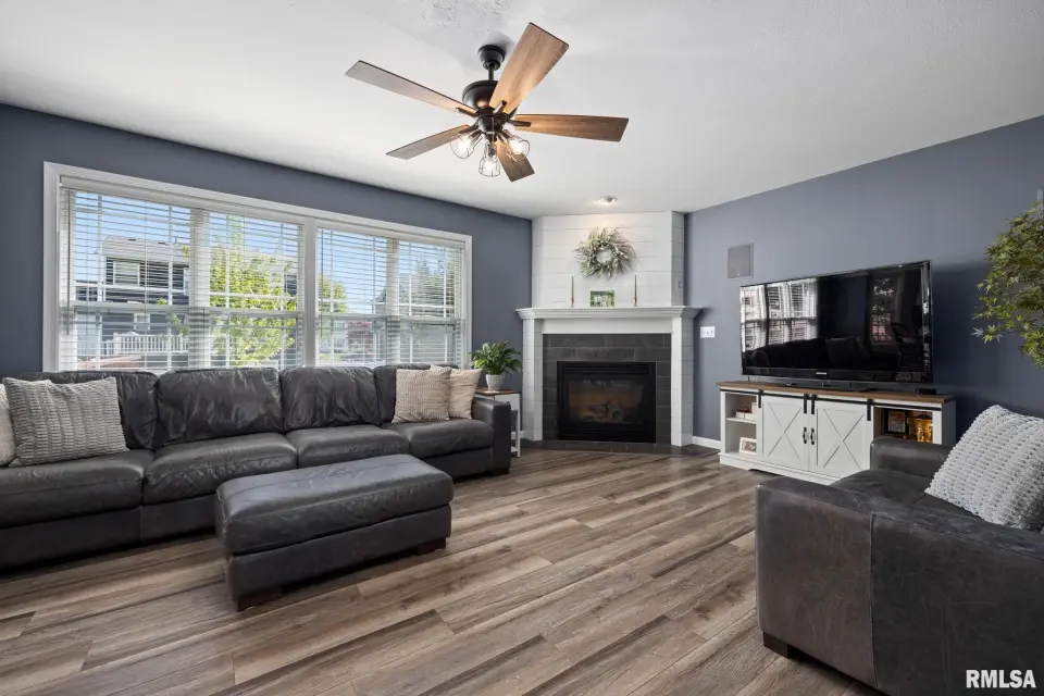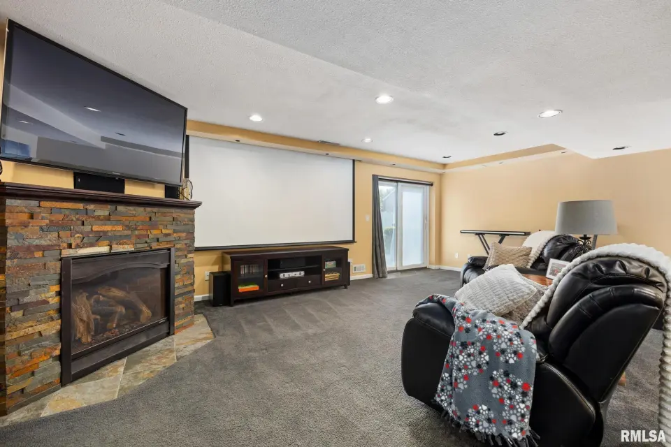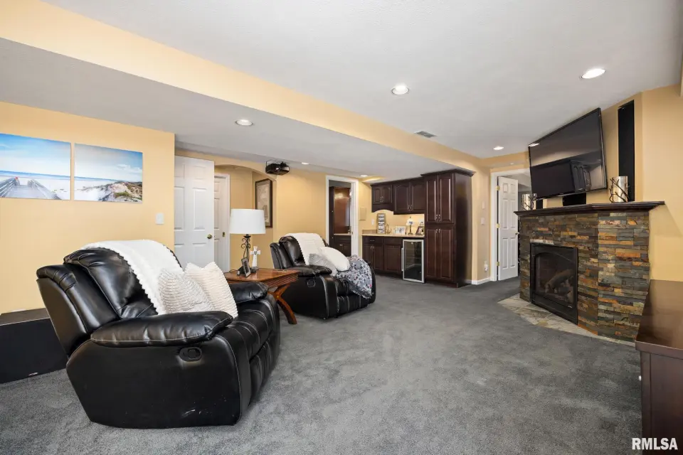 The main floor showcases new LVP flooring, freshly painted interiors, painted cabinetry, an office space, and all new appliances, delivering a clean, contemporary feel. The spacious living area features an updated fireplace and flows seamlessly for everyday living and entertaining. Main floor laundry adds convenience and efficiency. Upstairs, the home offers generously sized bedrooms, including a large primary suite with walk-in closet and private bath featuring a soaking tub and separate walk-in shower. The walk-out lower level expands your living space with a second fireplace, surround sound system, and projector included—creating a true home theater and entertainment retreat. Additional highlights include solar panels, a new water heater, attached garage with bonus workshop space, large deck, and ample storage. A well-updated home combining modern finishes, energy efficiency, and an exceptional entertainment setup in a sought-after location close to parks and amenities.