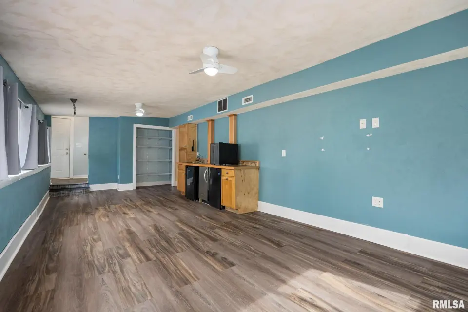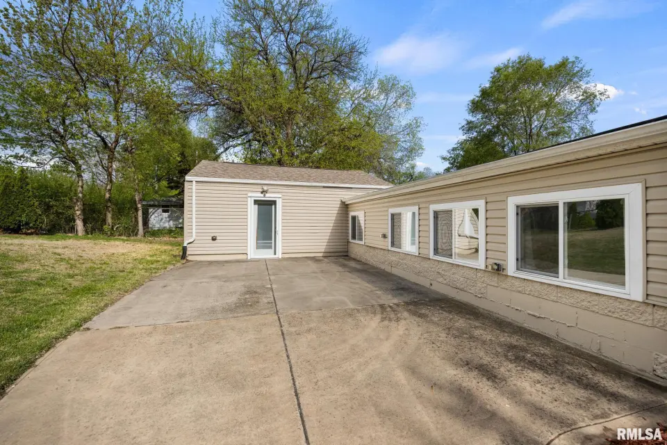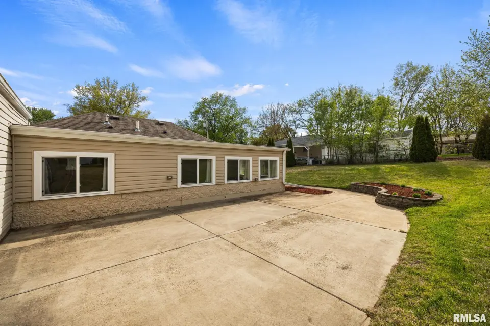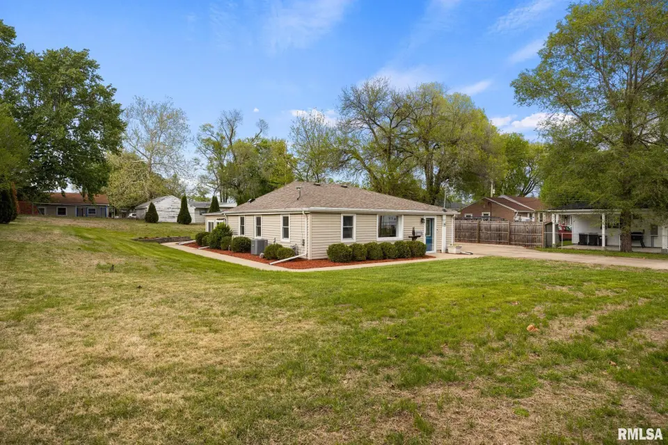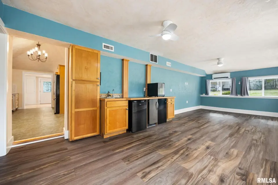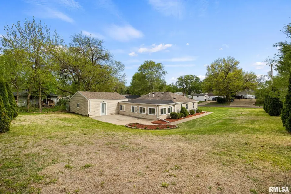 The spacious rear family room is a standout feature, complete with new laminate flooring, a kitchenette with sink, beverage fridge, and ice machine—perfect for entertaining or additional living flexibility. The kitchen is both stylish and functional, featuring granite countertops and vaulted ceilings, while both bathrooms impress with stunning marble tile and tasteful finishes. Recent updates include a new mini split system in the family room, tankless water heater, new laminate flooring and trim in family room, fresh paint, updated kitchen faucet, new plumbing fixture in the primary shower, and fresh landscaping. Enjoy outdoor living on the large concrete patio, along with a spacious driveway and 2-car garage offering plenty of parking and storage. With great storage throughout and thoughtful updates inside and out, this home delivers comfort, style, and convenience all in one.