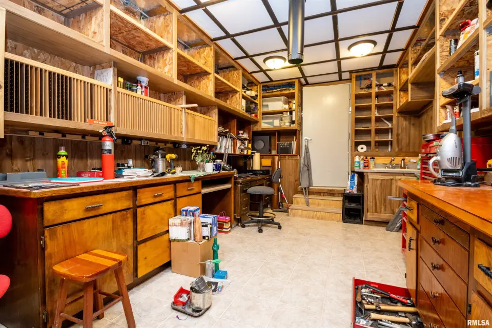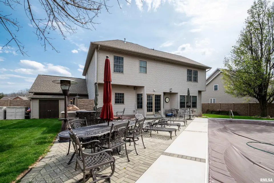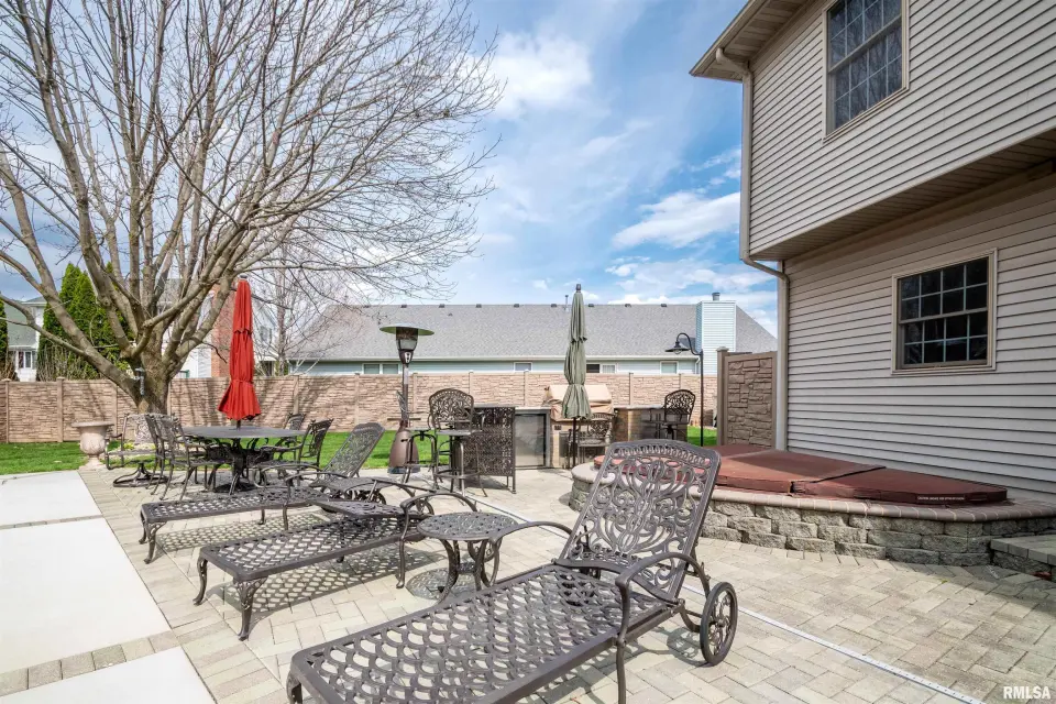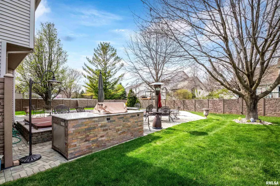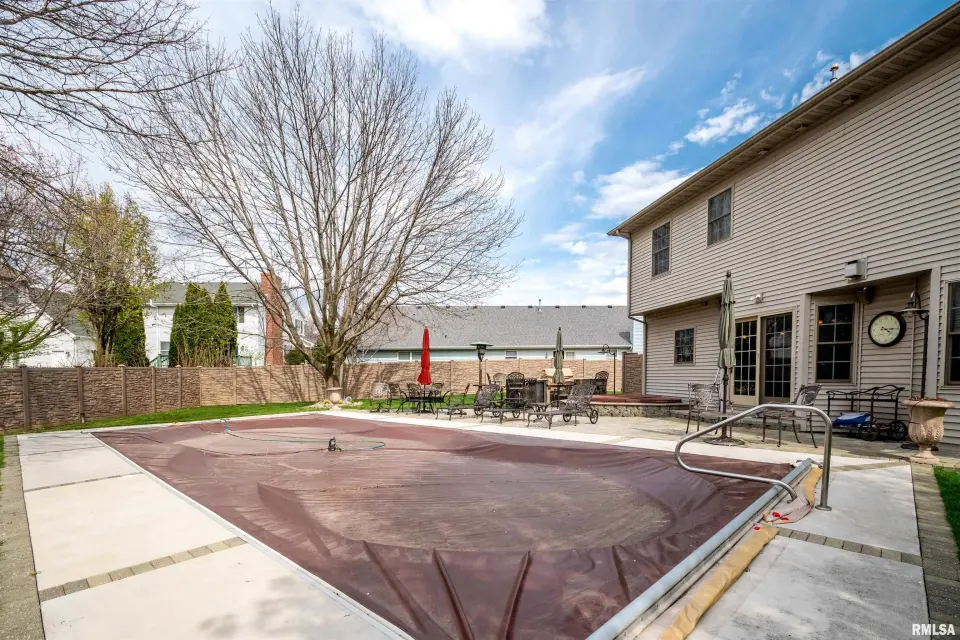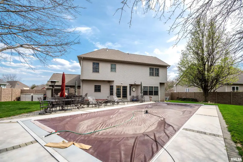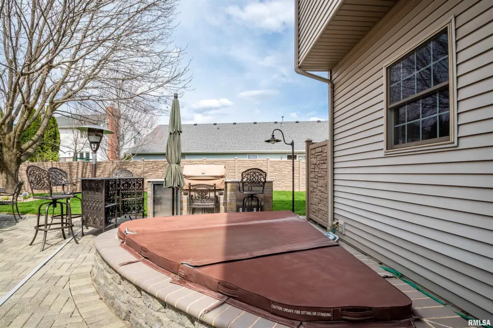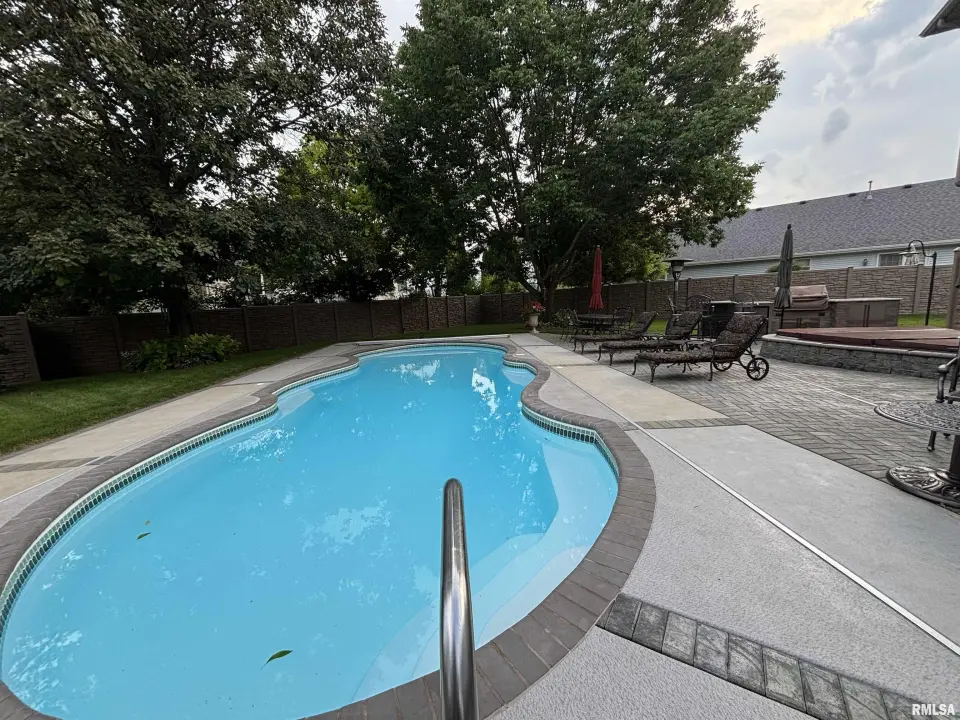 The heart of the home features a beautifully appointed kitchen with granite countertops, a spacious island, and a convenient wet bar, creating the perfect setting for gatherings and daily living. Sliding doors open to a fully fenced private outdoor oasis, complete with an in-ground pool and hot tub spa, as well as a custom-built grill station—with built in fridge. Turn up the music with the outdoor surround sound speakers ideal for summer entertaining or relaxing evenings at home. The property is further enhanced by an irrigation system to keep the grounds lush and a generator for added peace of mind year-round. Inside, a dedicated private office offers a quiet space for work or study. The finished basement expands the home’s versatility with two bonus rooms or workshops, along with an industrial elevator providing easy access between levels. Blending thoughtful upgrades with functional design, this home offers a unique opportunity to enjoy both luxury and practicality in a desirable location.
