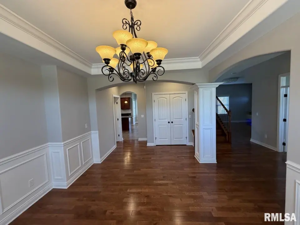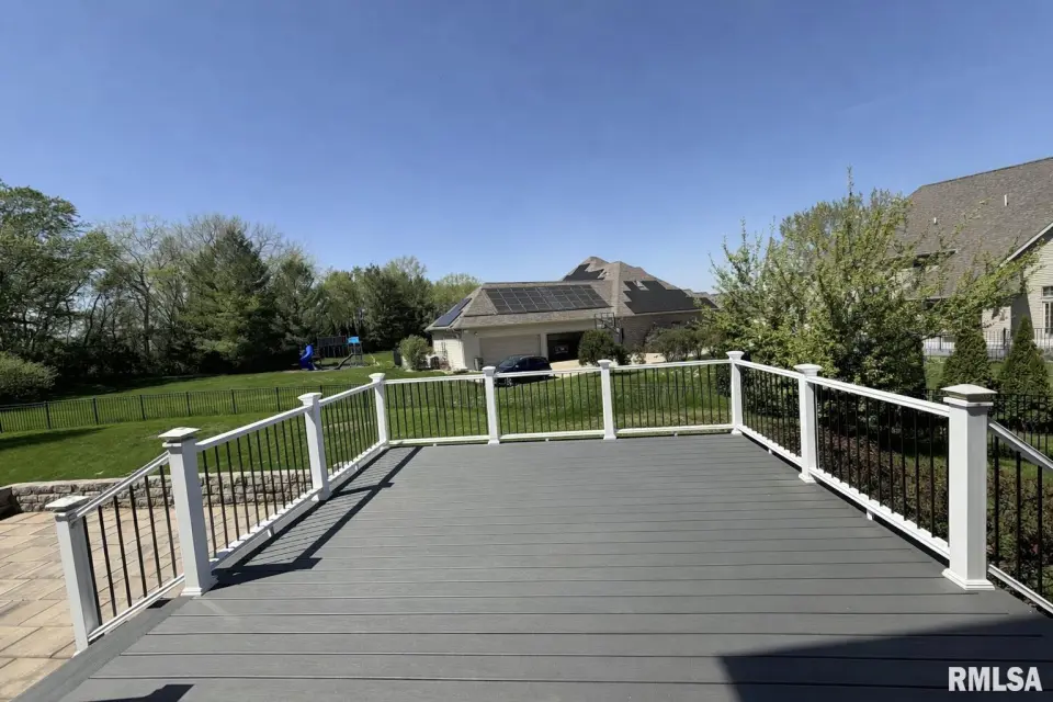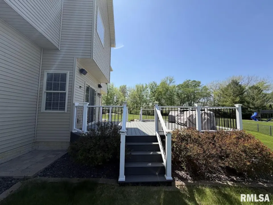 This home showcases brick exterior accents, a dramatic two-story entry, and an oversized 3-car garage. Inside, you’ll find an elegant dining room with hardwood floors, crown molding, and wainscoting; a main-floor study with hardwood flooring and crown molding; and a spacious family room featuring a statement chandelier and an LED fireplace. The gourmet kitchen offers top-of-the-line stainless steel appliances, granite countertops, a large center island, and tile flooring with coordinating backsplash. A separate secondary kitchen provides added convenience for prep or cooking aromatic meals while keeping the main kitchen spotless. Retreat to the impressive primary suite with tray ceiling and built-in speakers. The en-suite bath includes a walk-in closet, tiled shower, corner jetted tub with glass block window, and dual sinks. Upstairs, you’ll find four additional bedrooms, including a private guest suite with its own full bath. Another shared bath features a double-sink vanity plus a separate area for the toilet and shower—an ideal layout for busy mornings. The finished basement features a theater area with built-in speakers and an additional bedroom with egress window and full bath. Outside, enjoy a new composite deck, paver patio, and a shed, plus a backyard fence with aluminum fence. Move in ready!
