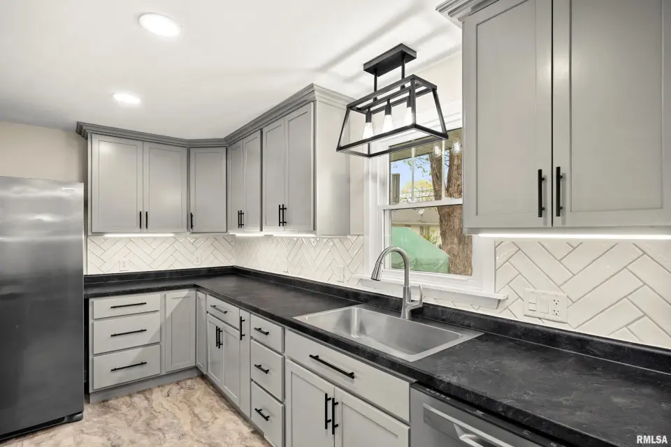 This three bedroom home boasts hardwood floors in the bedrooms, six-panel solid-core doors, and new luxury vinyl tile throughout the living room, kitchen and dining area. The main floor bathroom features a Corion countertops, ceramic tile and a jetted tub. The basement offers additional living space with a rec room, new flooring, laundry area, shower and sink. Enjoy the fenced backyard, perfect for outdoor living. Recent updates include new kitchen (2025) new roof (2025) new flooring (2024). This home is move-in ready and has so much to offer. Don't miss out-call today to schedule your private showing