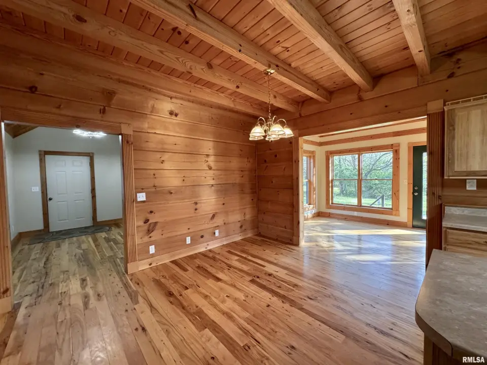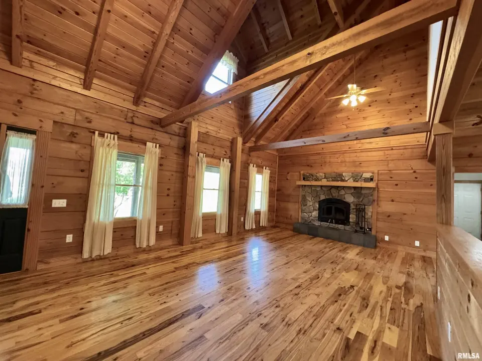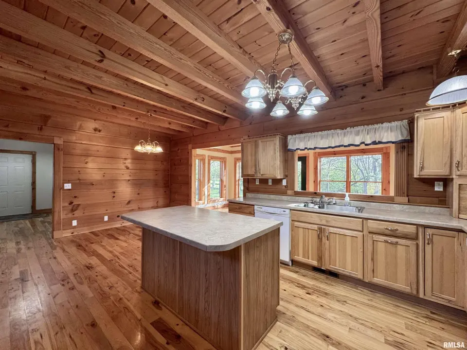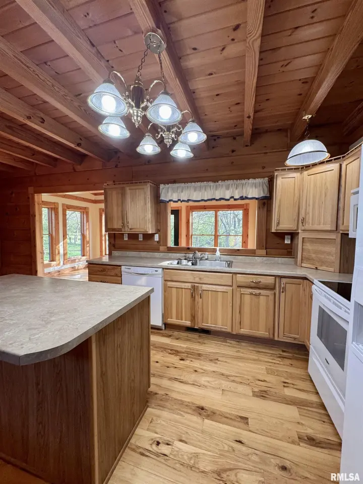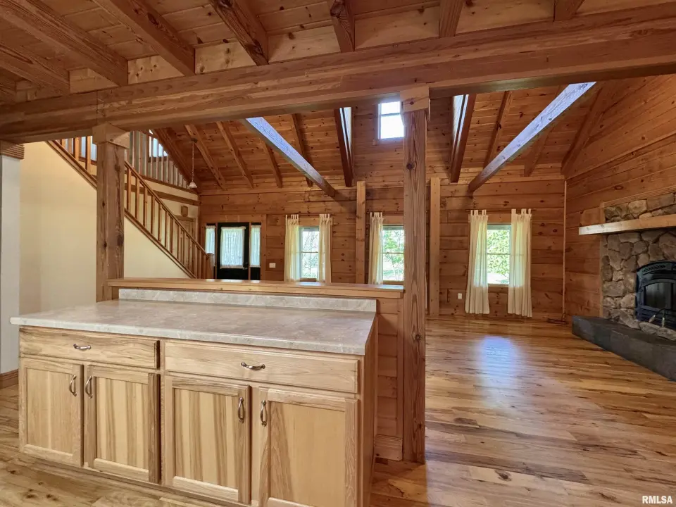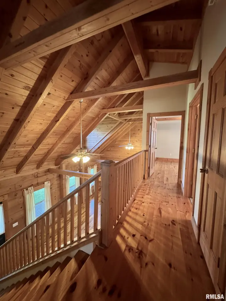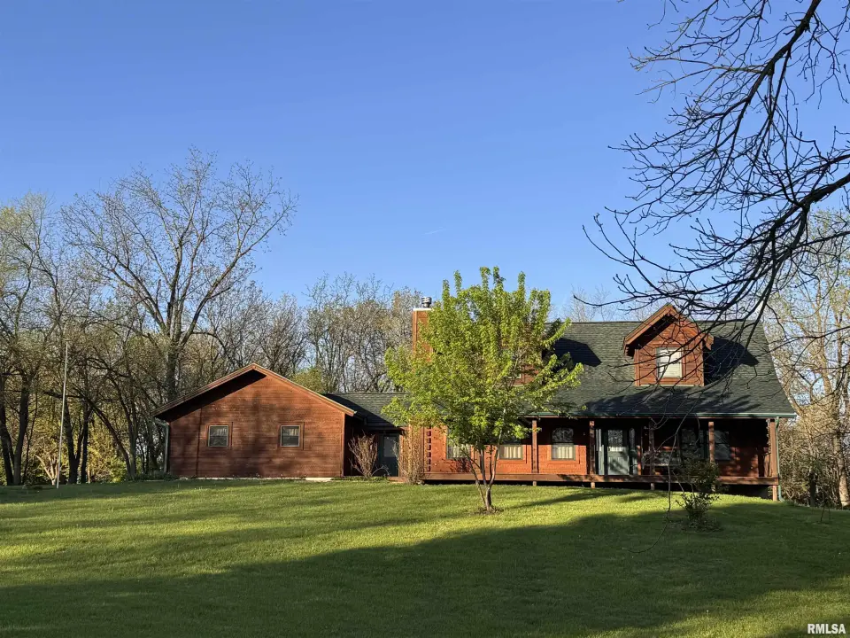 This log home, built in 2006, has an open floor plan with vaulted wood-beam ceilings and lots of windows, offering views of the park-like setting. The main level of the home has a large living room with a wood-burning fireplace, a 21’ vaulted beam ceiling, and is open to the dining and kitchen. Off the dining room is a sunroom with lots of windows with wonderful views. The primary bedroom is on the main level and features a large walk-in closet and a full bath with a walk-in shower. The main level also has a laundry room with a half bath, and a large mud room off the oversized two-car attached garage. The upper level of the home has an open stairway and hall that overlooks the living area below, and you will find two bedrooms, a full bath, and a den/home office. The lower level of the home is currently unfinished but has a lot of potential for additional living space, with a walkout and room for a bathroom. This home has geothermal heating and cooling, new shingles, and new interior paint. Also on the property is a 48x30 Cleary Building, with two 12x8 overhead doors, concrete floors, and power, great shop space. Call today for more information on this one-of-a-kind property.