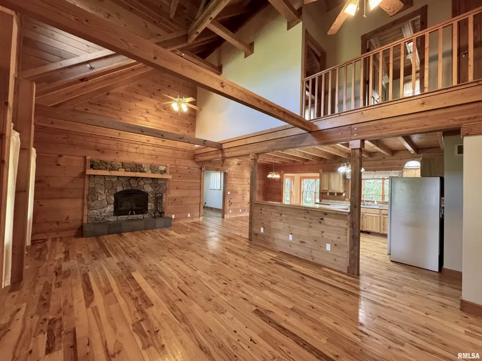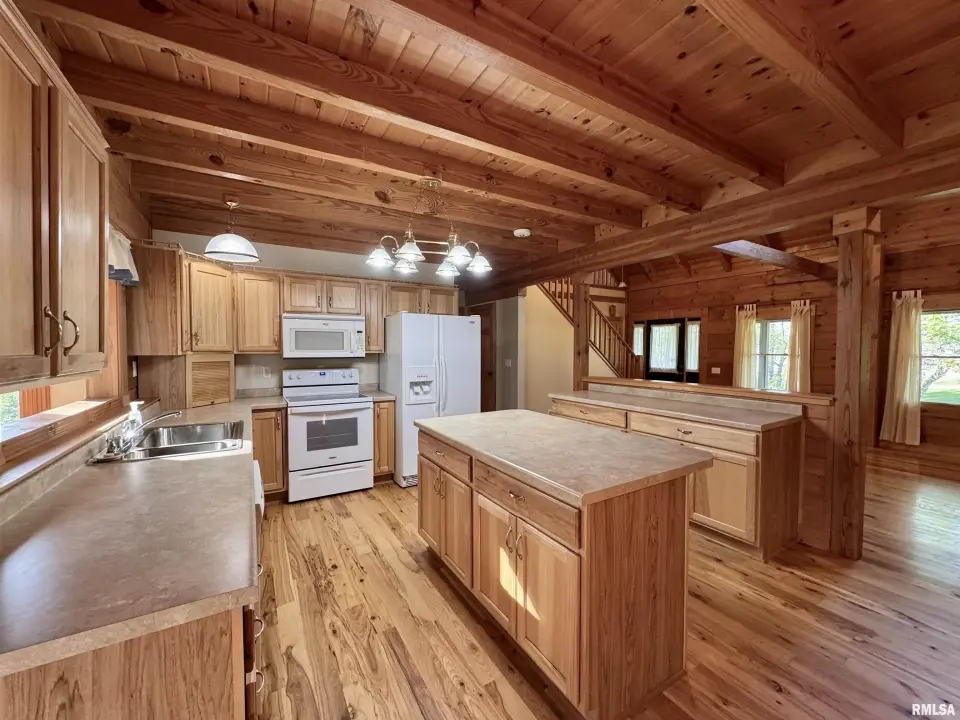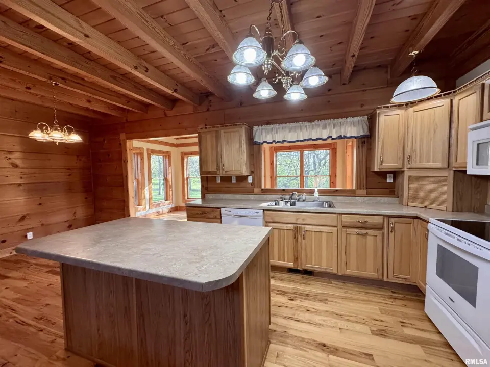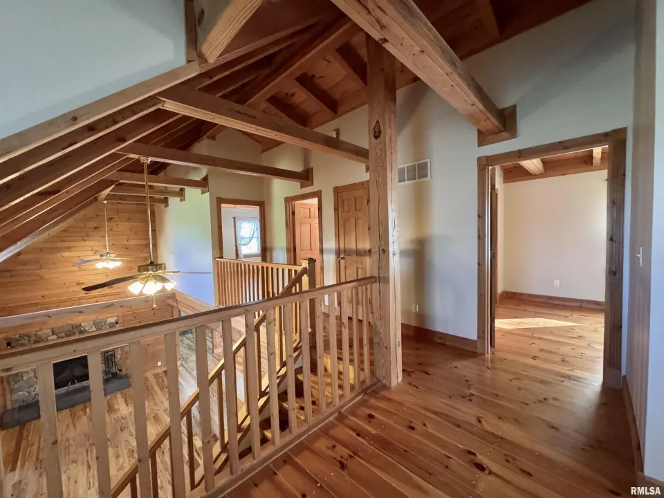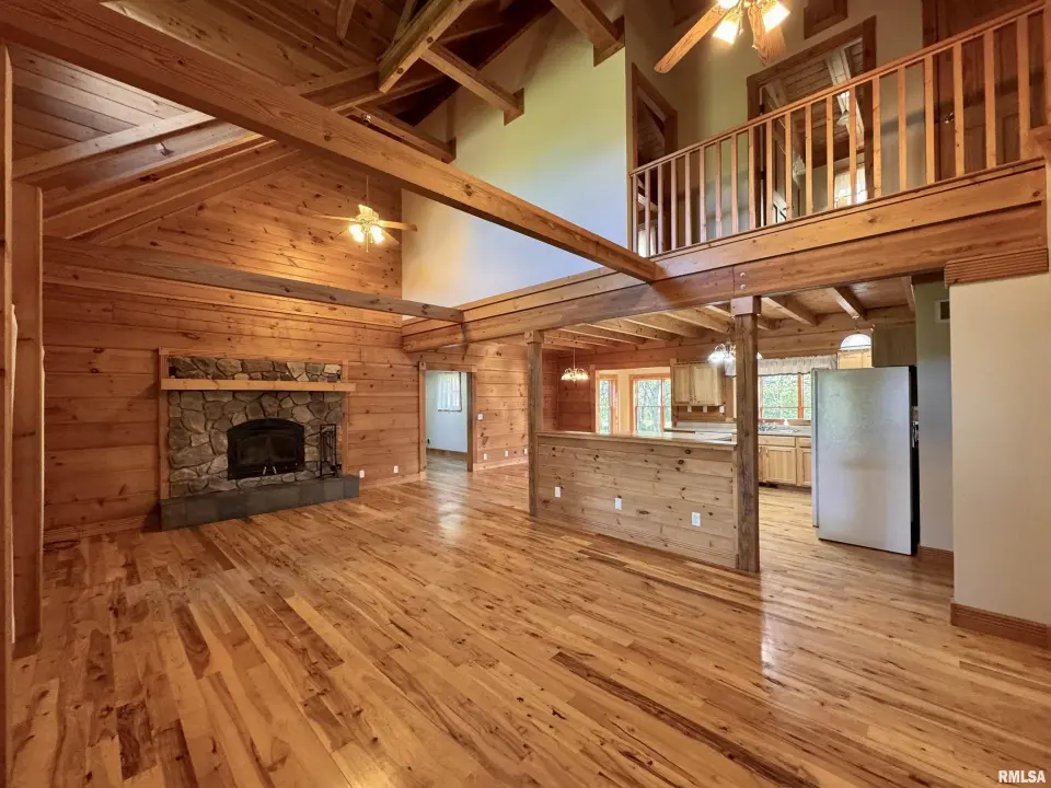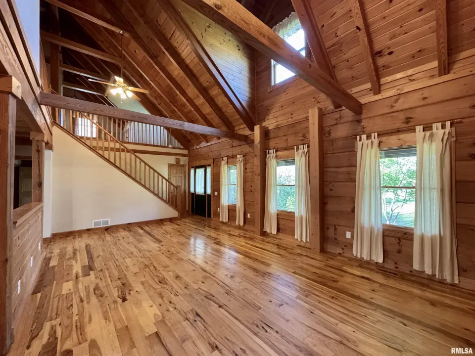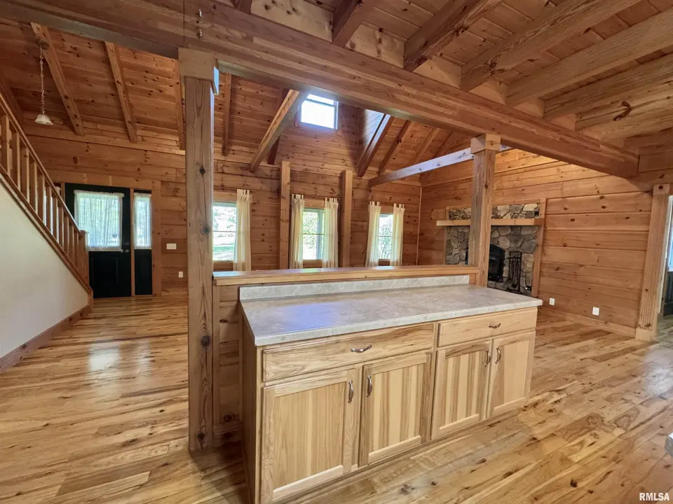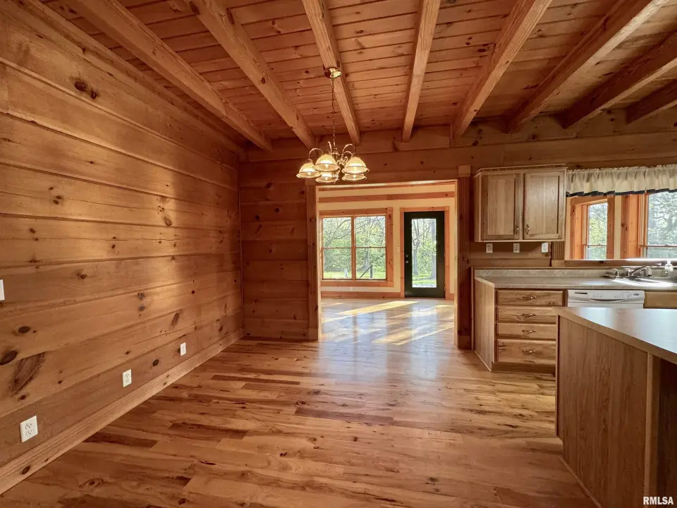 This log home, built in 2006, has an open floor plan with vaulted wood-beam ceilings and lots of windows, offering views of the park-like setting. The main level of the home has a large living room with a wood-burning fireplace, a 21’ vaulted beam ceiling, and is open to the dining and kitchen. Off the dining room is a sunroom with lots of windows with wonderful views. The primary bedroom is on the main level and features a large walk-in closet and a full bath with a walk-in shower. The main level also has a laundry room with a half bath, and a large mud room off the oversized two-car attached garage. The upper level of the home has an open stairway and hall that overlooks the living area below, and you will find two bedrooms, a full bath, and a den/home office. The lower level of the home is currently unfinished but has a lot of potential for additional living space, with a walkout and room for a bathroom. This home has geothermal heating and cooling, new shingles, and new interior paint. Also on the property is a 48x30 Cleary Building, with two 12x8 overhead doors, concrete floors, and power, great shop space. Call today for more information on this one-of-a-kind property.