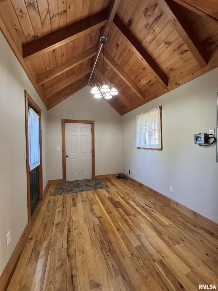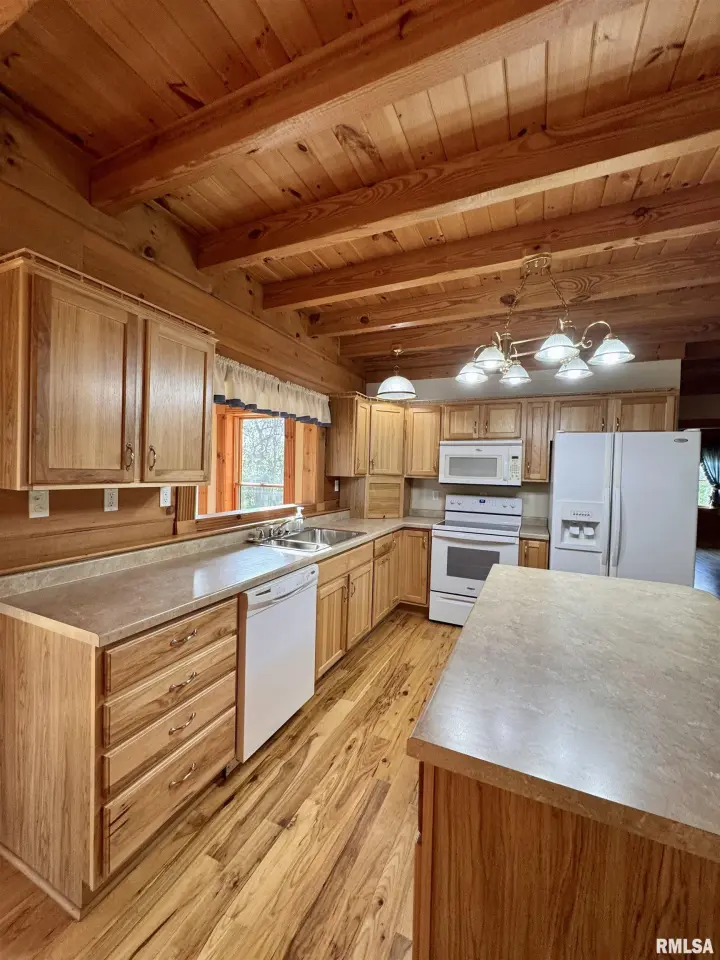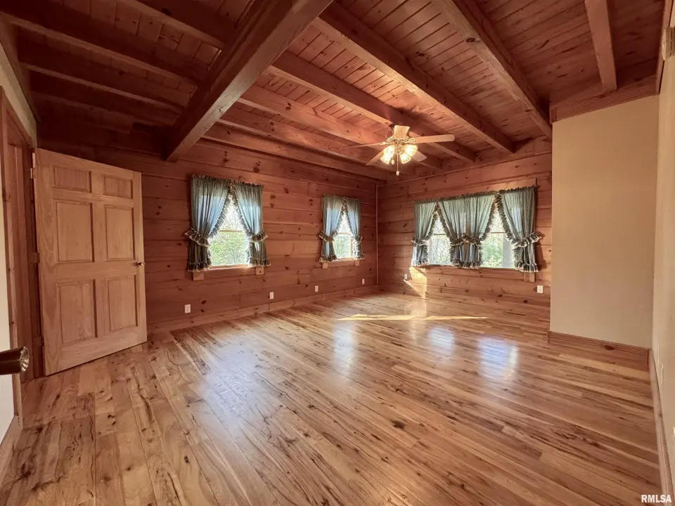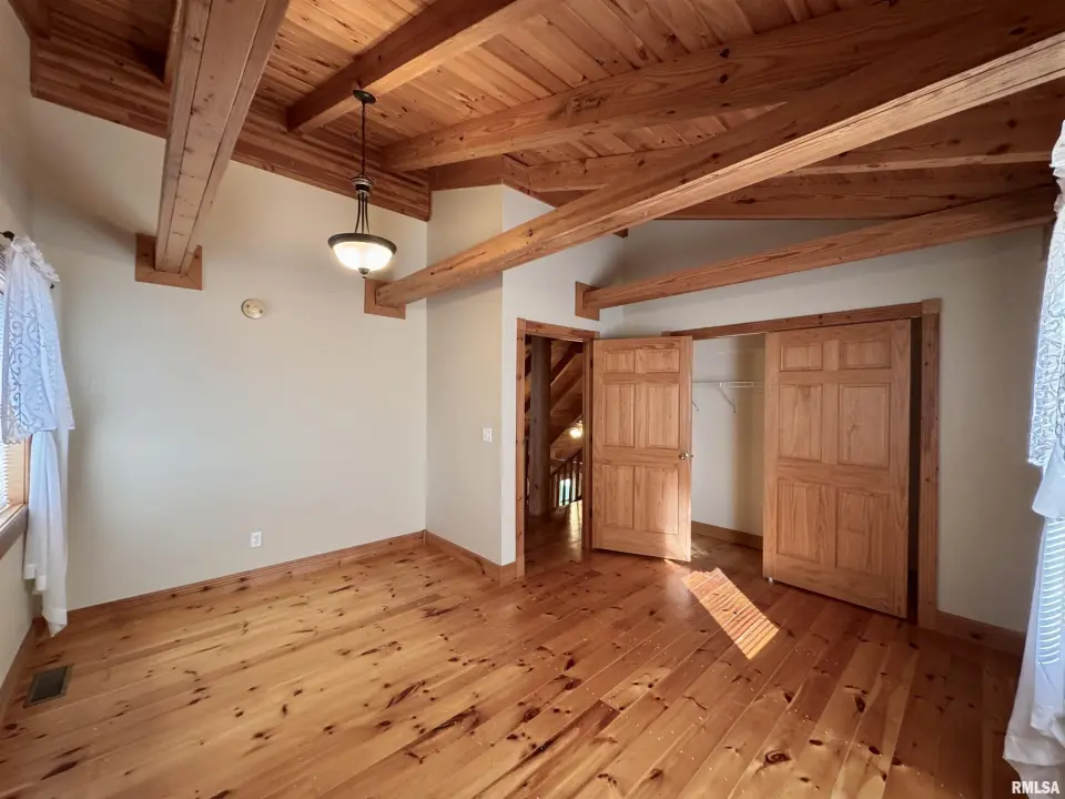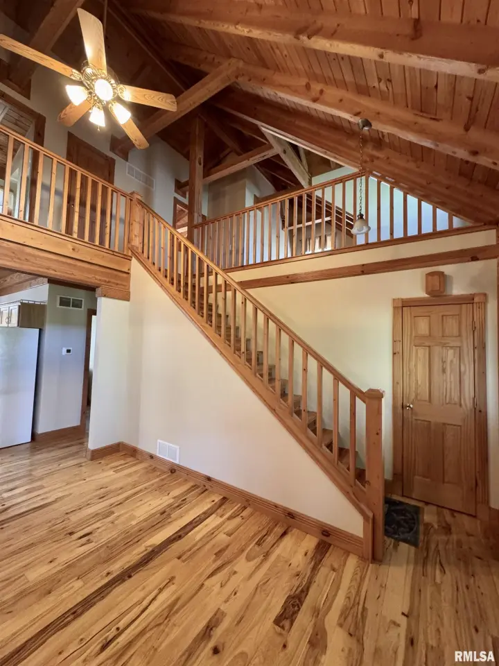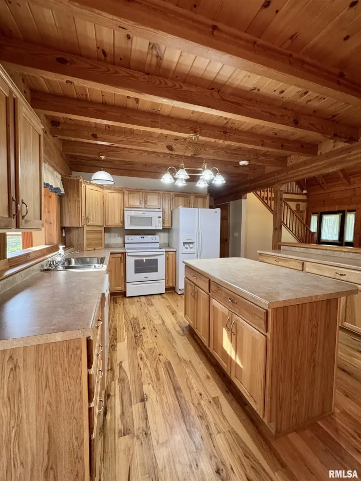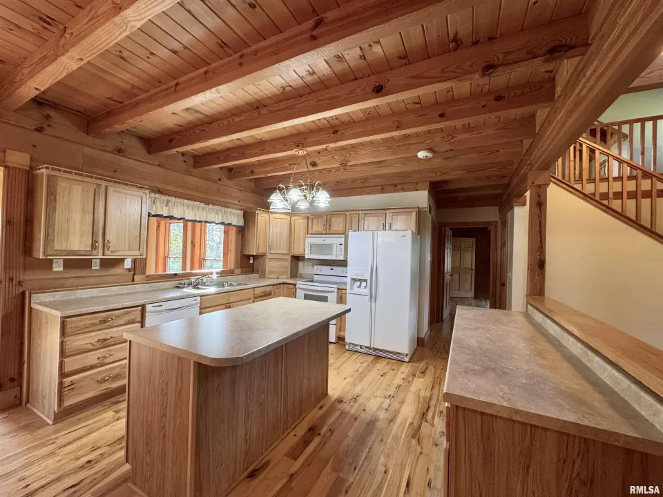 This log home, built in 2006, has an open floor plan with vaulted wood-beam ceilings and lots of windows, offering views of the park-like setting. The main level of the home has a large living room with a wood-burning fireplace, a 21’ vaulted beam ceiling, and is open to the dining and kitchen. Off the dining room is a sunroom with lots of windows with wonderful views. The primary bedroom is on the main level and features a large walk-in closet and a full bath with a walk-in shower. The main level also has a laundry room with a half bath, and a large mud room off the oversized two-car attached garage. The upper level of the home has an open stairway and hall that overlooks the living area below, and you will find two bedrooms, a full bath, and a den/home office. The lower level of the home is currently unfinished but has a lot of potential for additional living space, with a walkout and room for a bathroom. This home has geothermal heating and cooling, new shingles, and new interior paint. Also on the property is a 48x30 Cleary Building, with two 12x8 overhead doors, concrete floors, and power, great shop space. Call today for more information on this one-of-a-kind property.